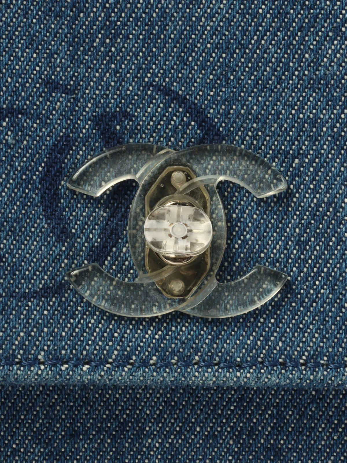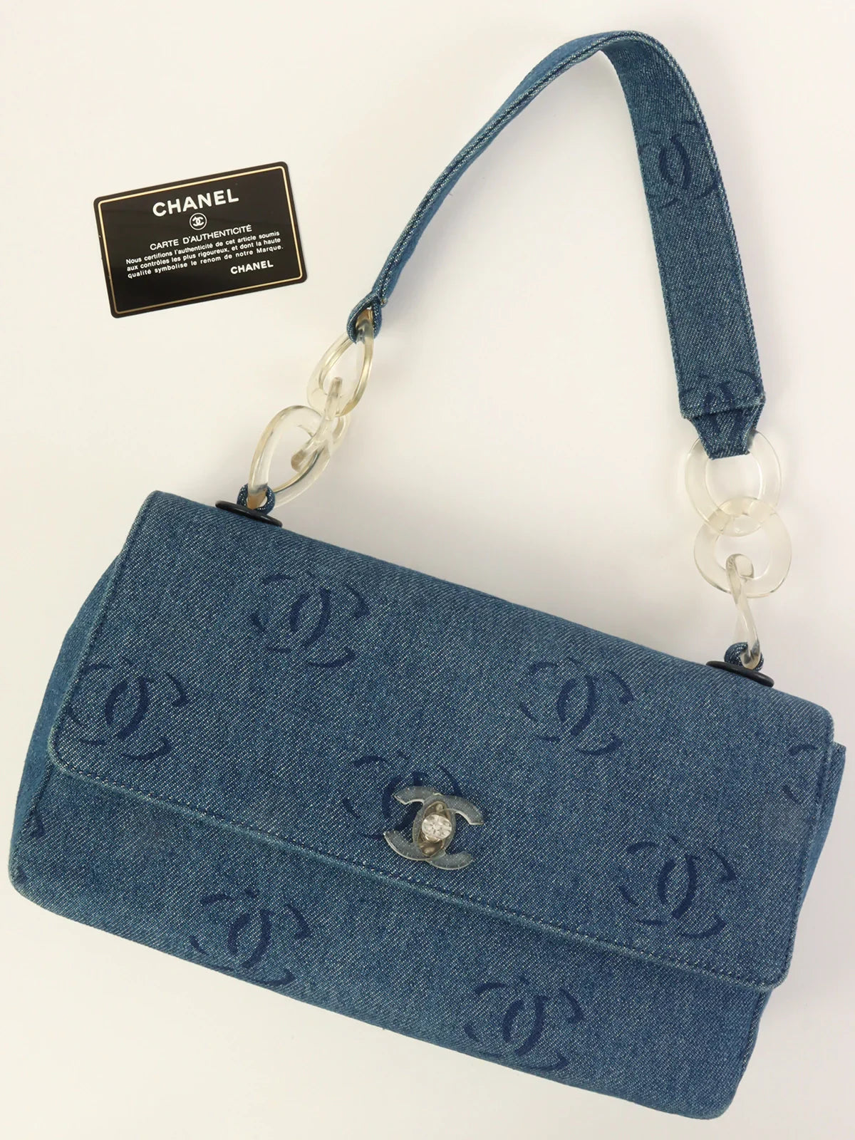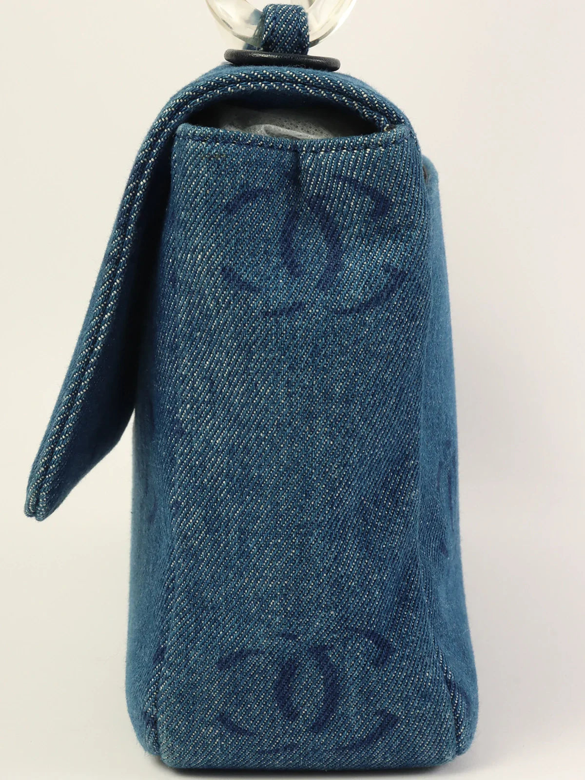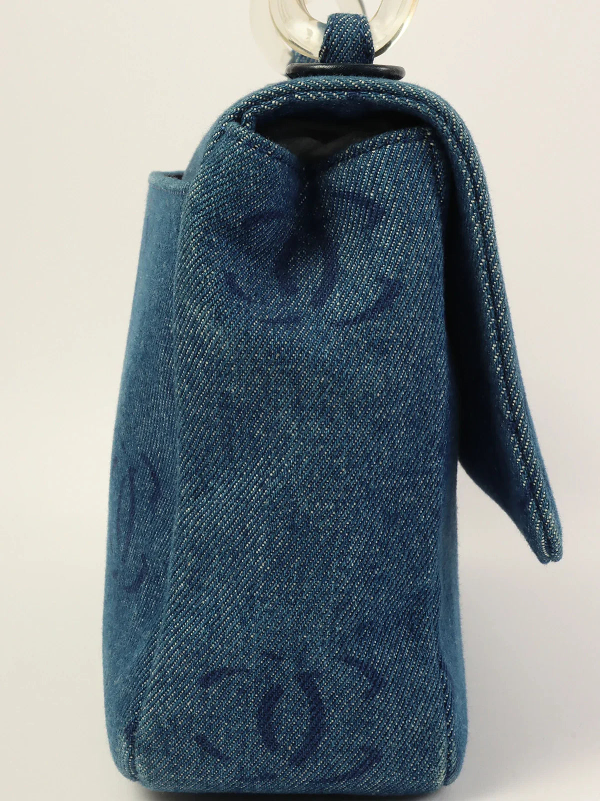 CHANEL Around 2001 Made Denim Clear Turn-Lock Chain Bag Indigo
