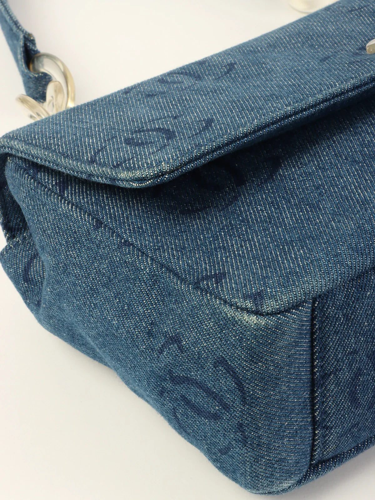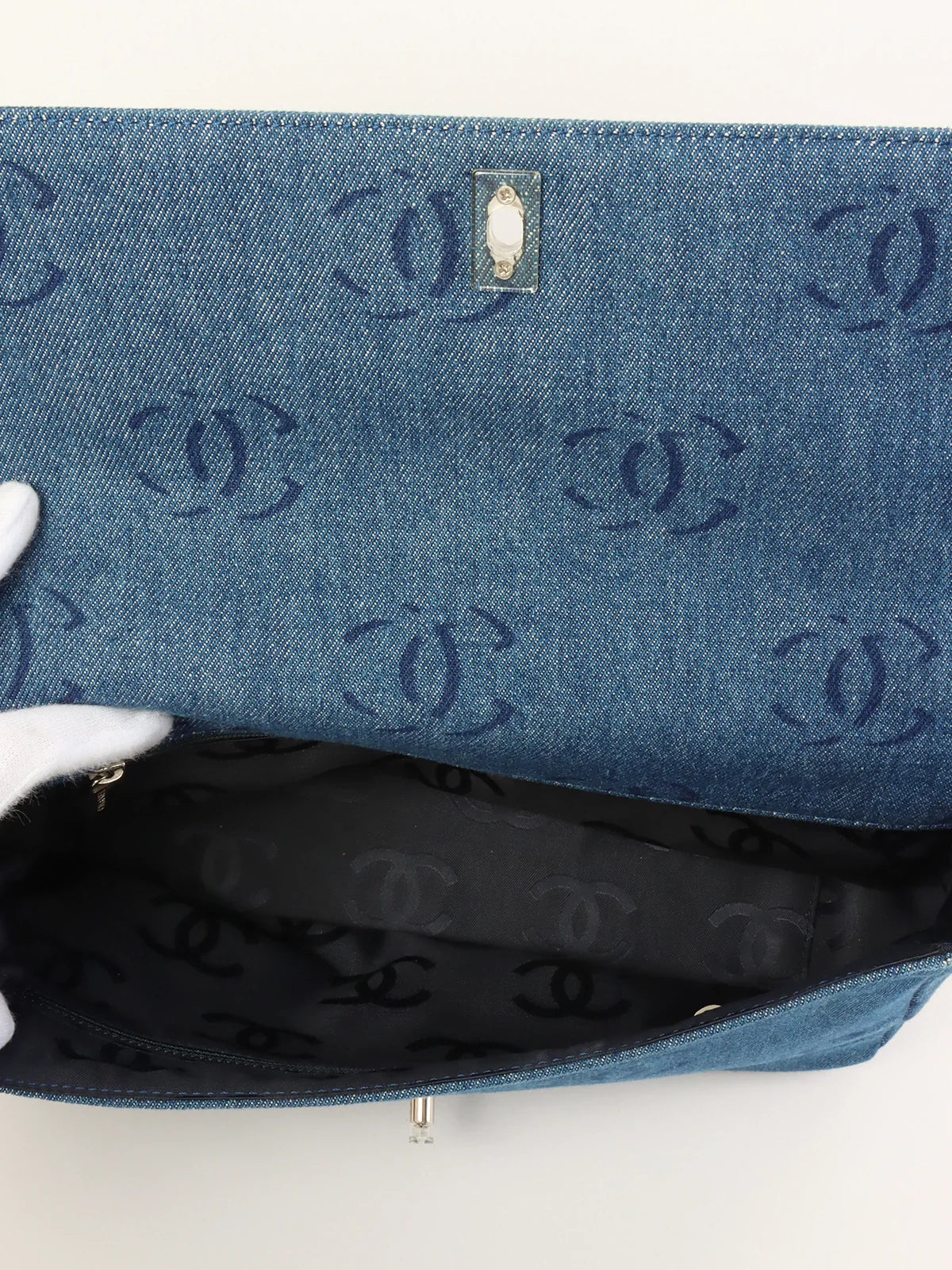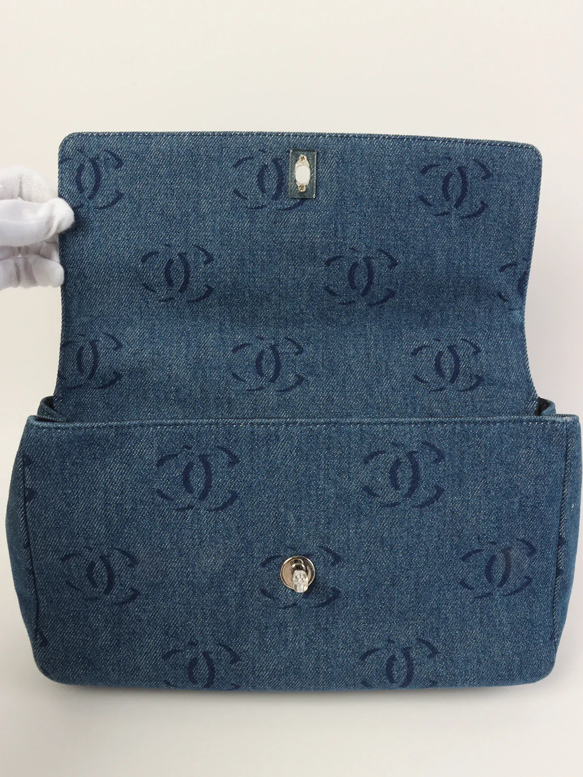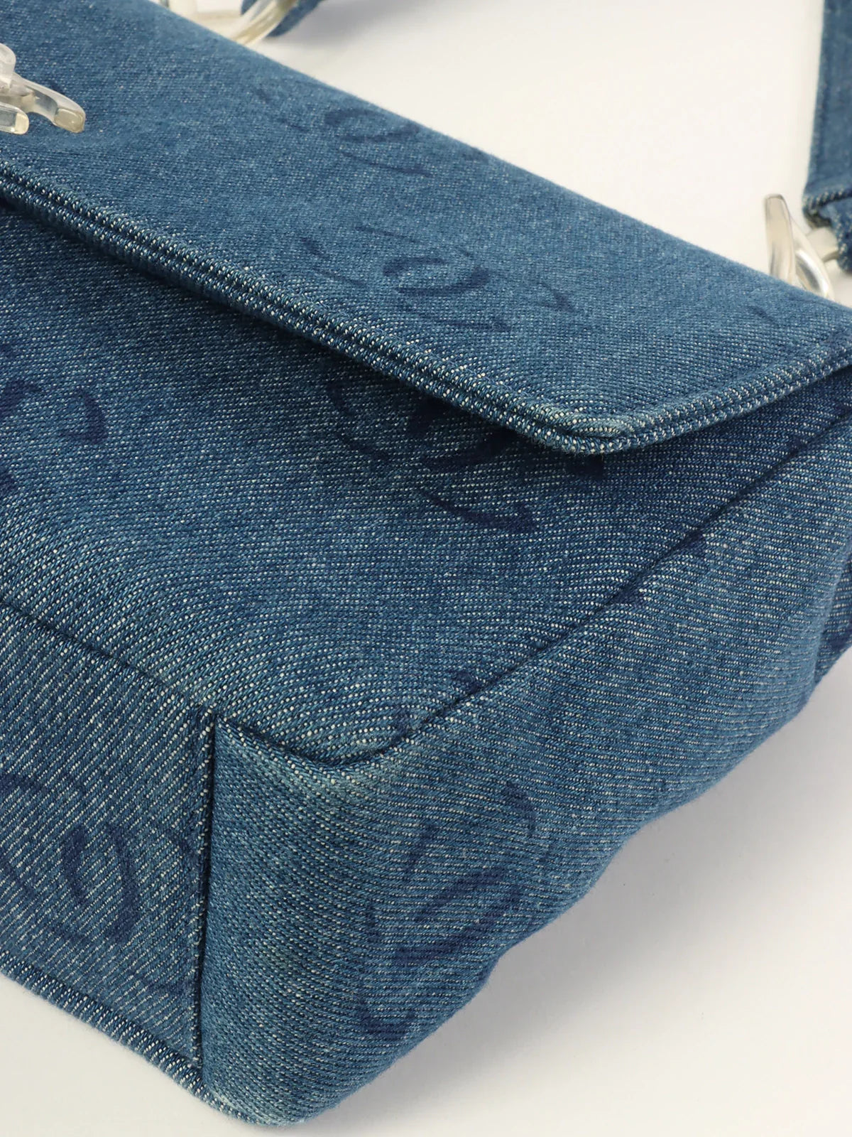 CHANEL Around 2001 Made Denim Clear Turn-Lock Chain Bag Indigo