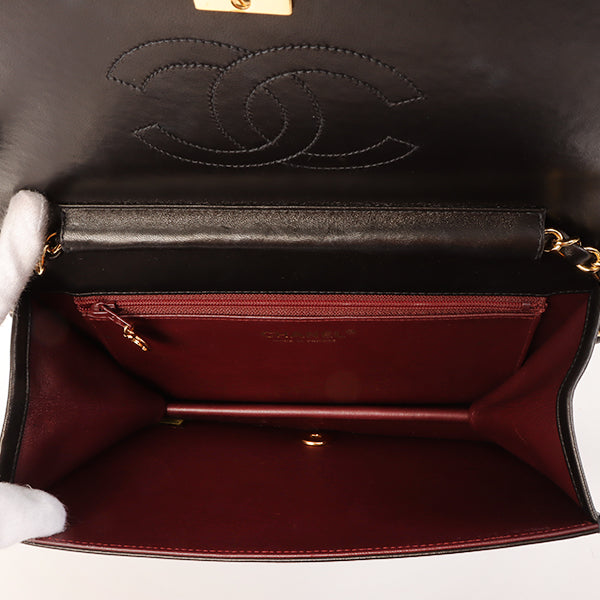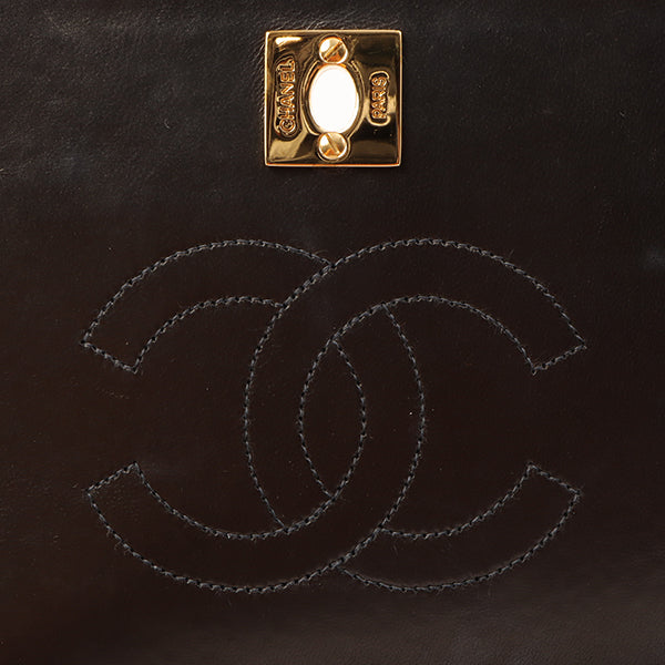 Chanel Around 2001 Made Full Flap Turn-Lock Chain Bag Black