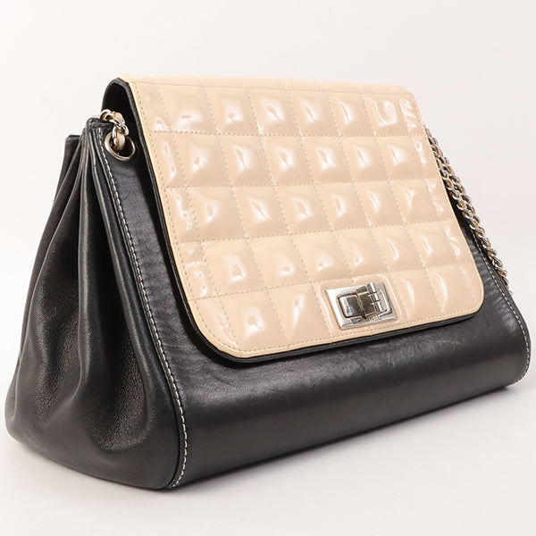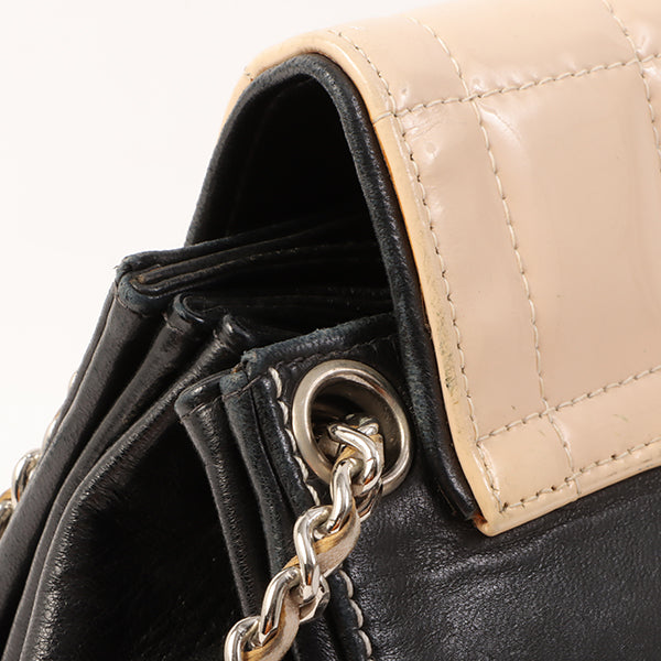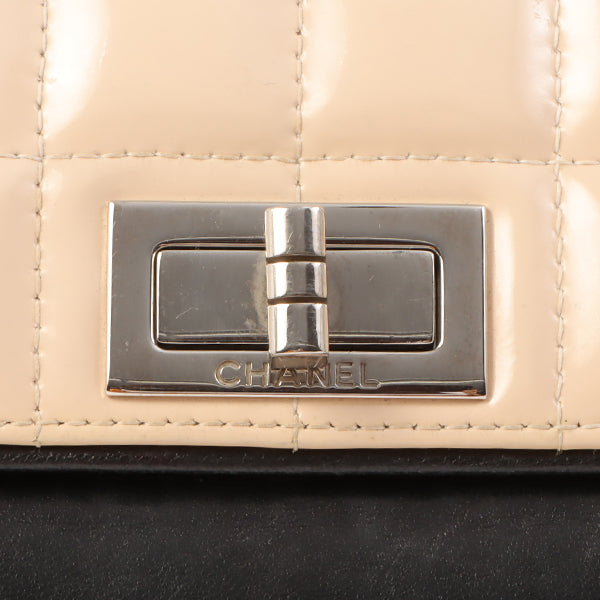 Chanel Around 2001 Made Patent Leather Comby Chocobar 2.55 Chain Bag Beige/Black