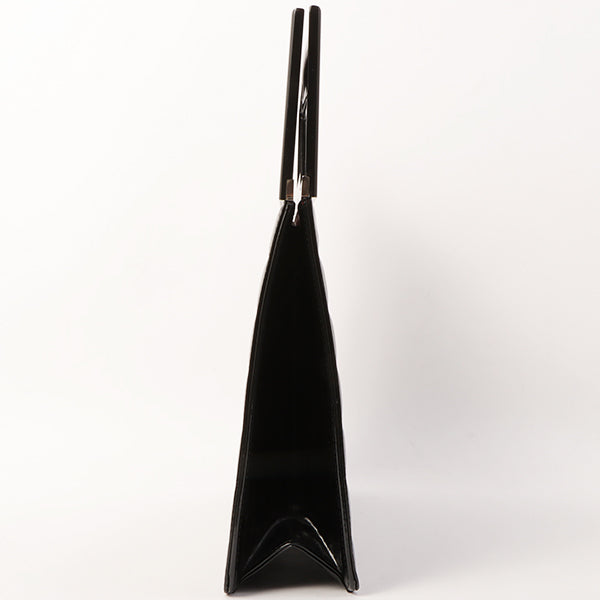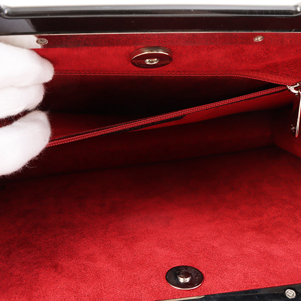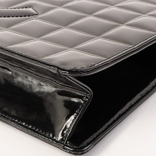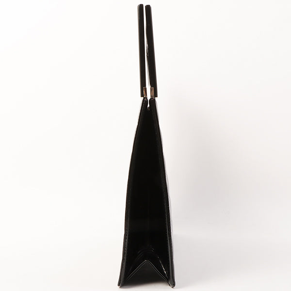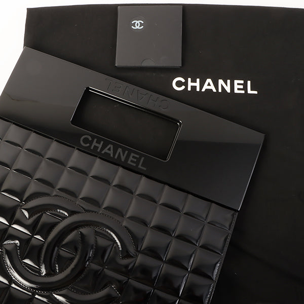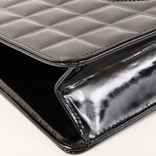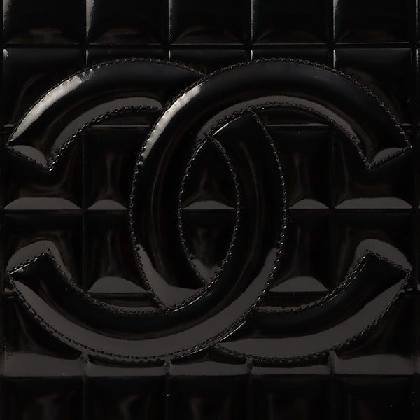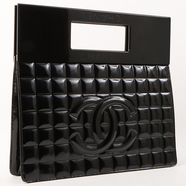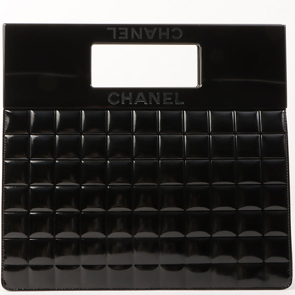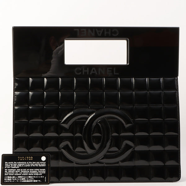 Chanel Around 2001 Made Plastic Patent Combination Chocolate Bar Top Handle Bag Black