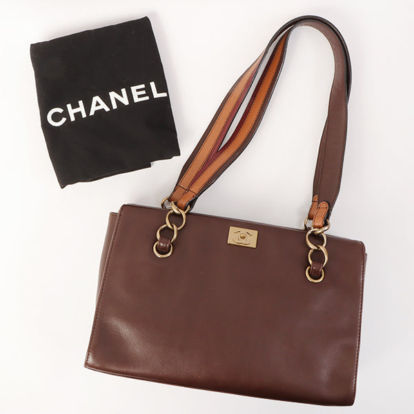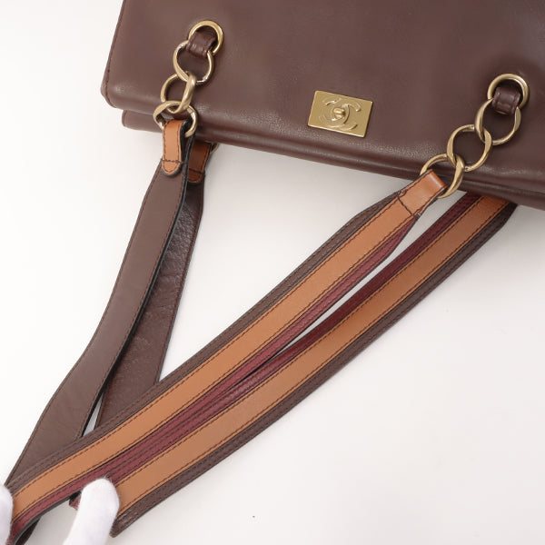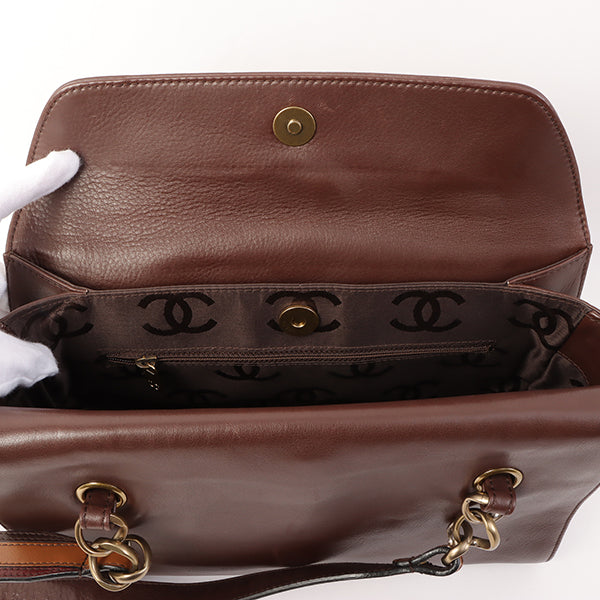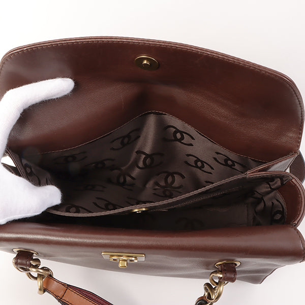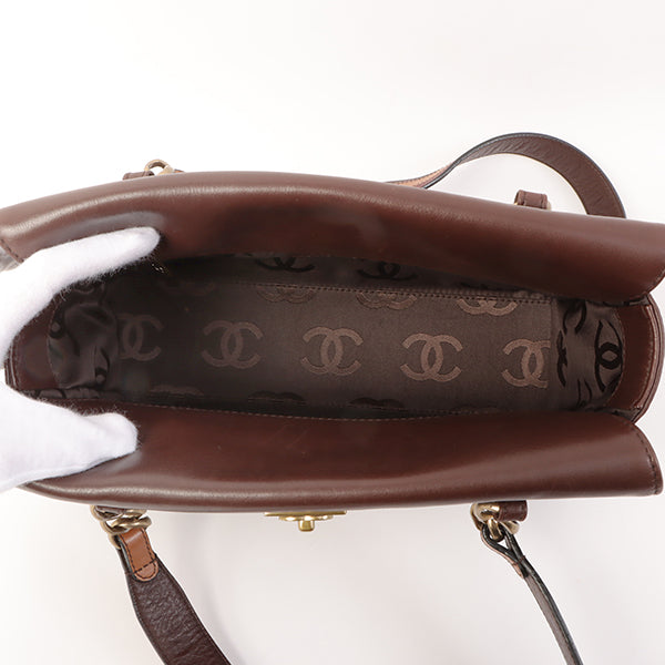 Chanel Around 2001 Made Soft Calf Skin Cc Mark Plate One Shoulder Bag Brown
