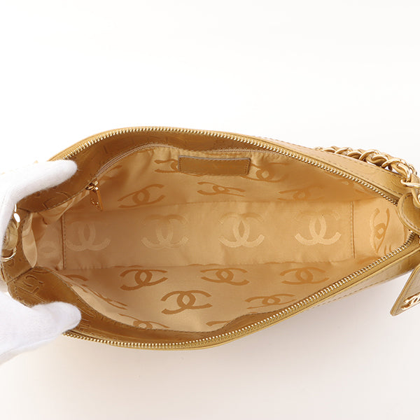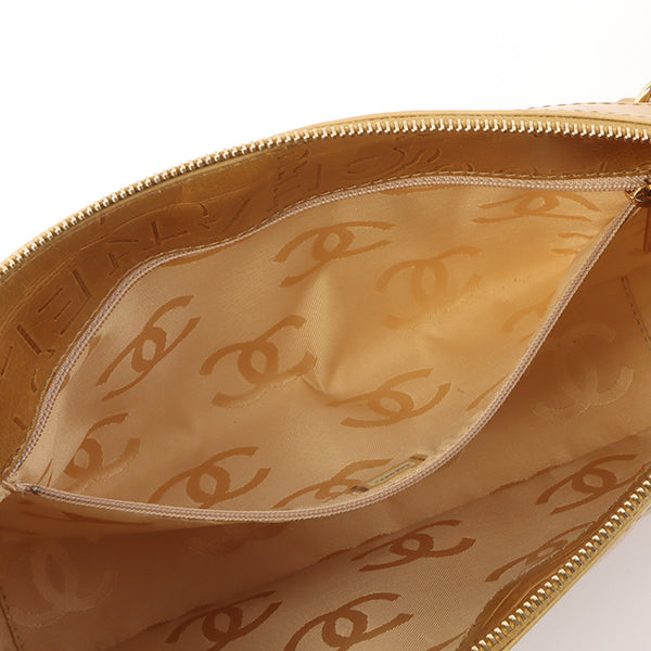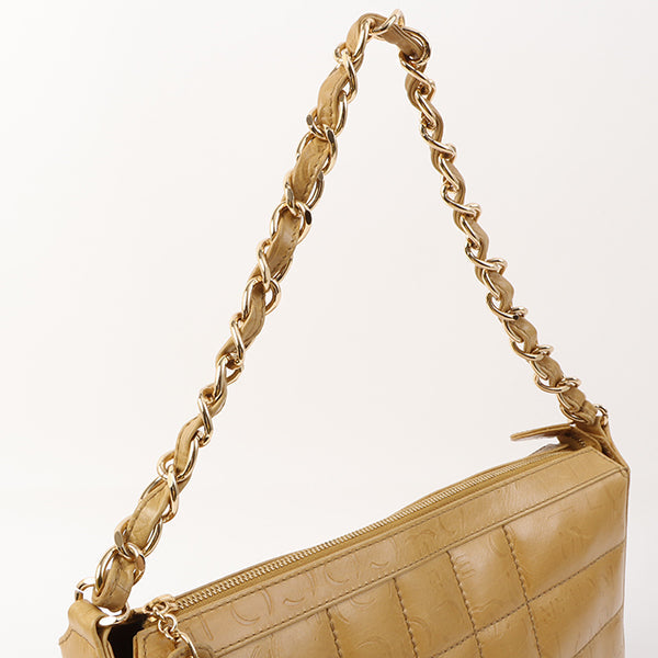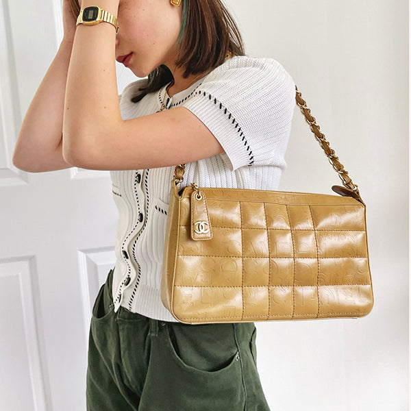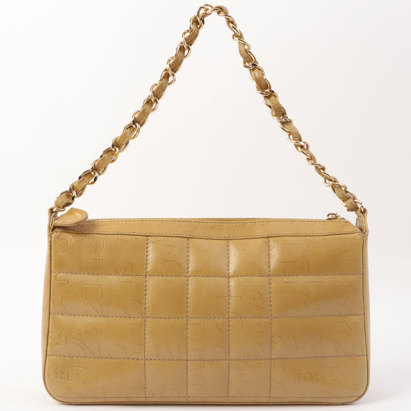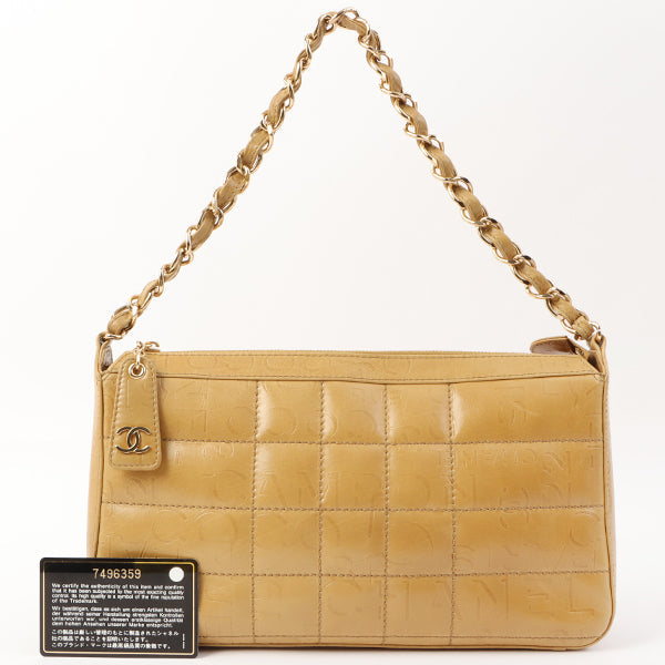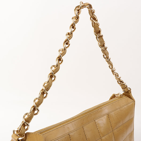 Chanel Around 2002 Made Chocolate Bar Logo Embossed Chain Shoulder Bag Mustard