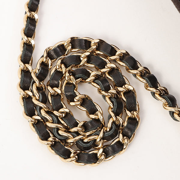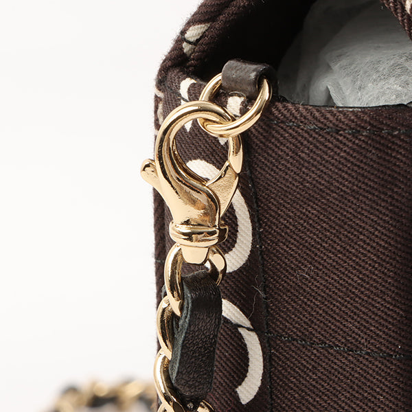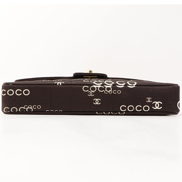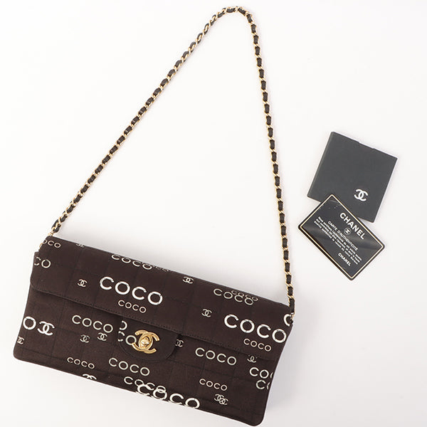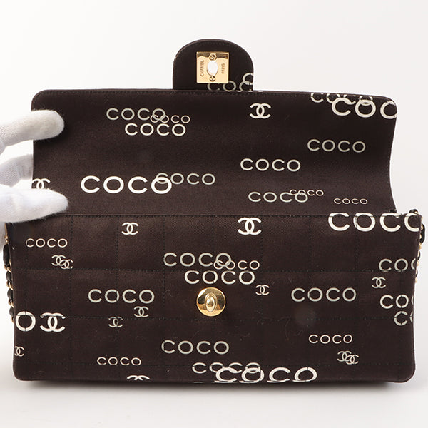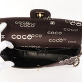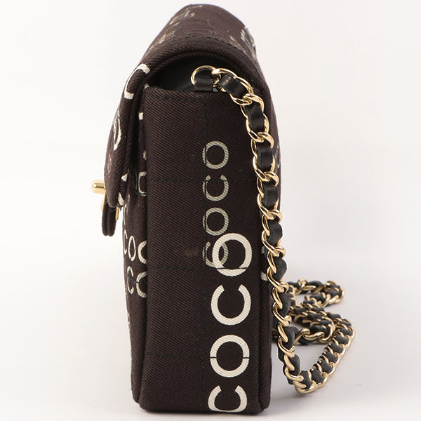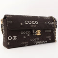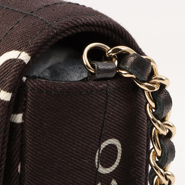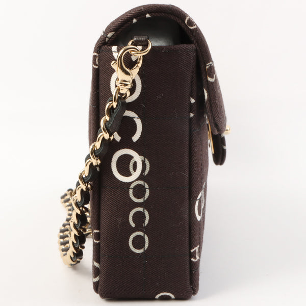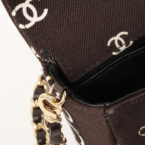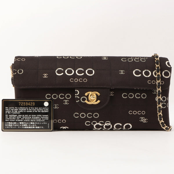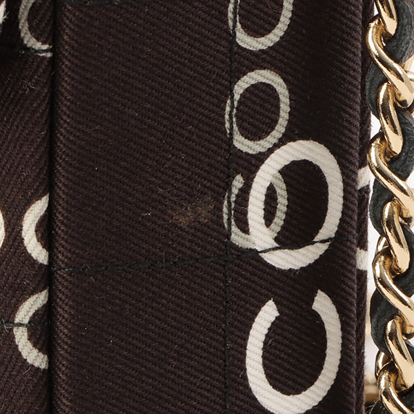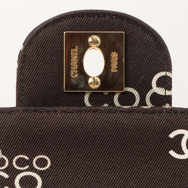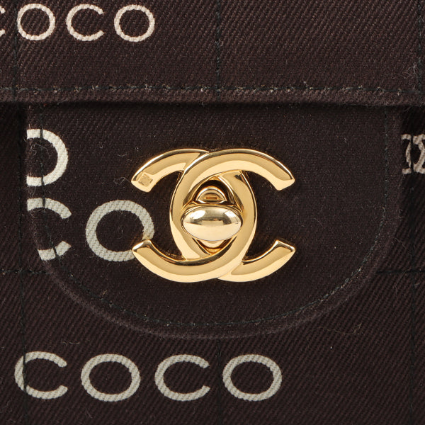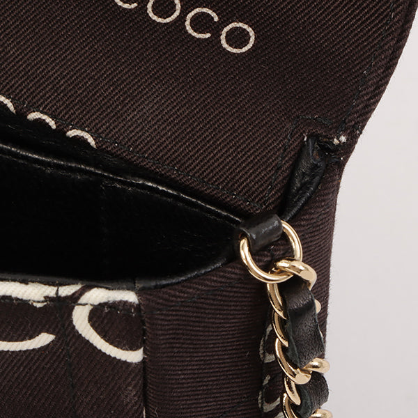 Chanel Around 2002 Made Cotton Logo Print Chocolate Bar Turn-Lock Chain Bag Black