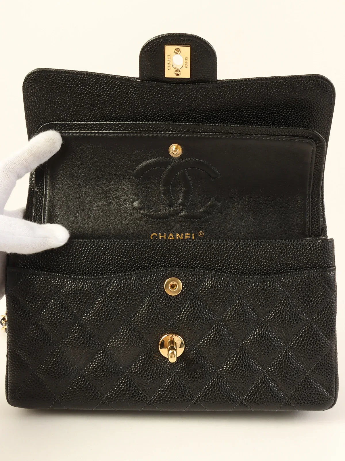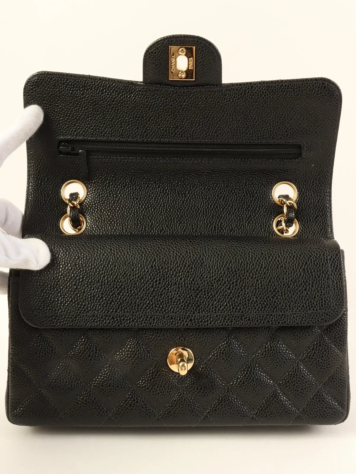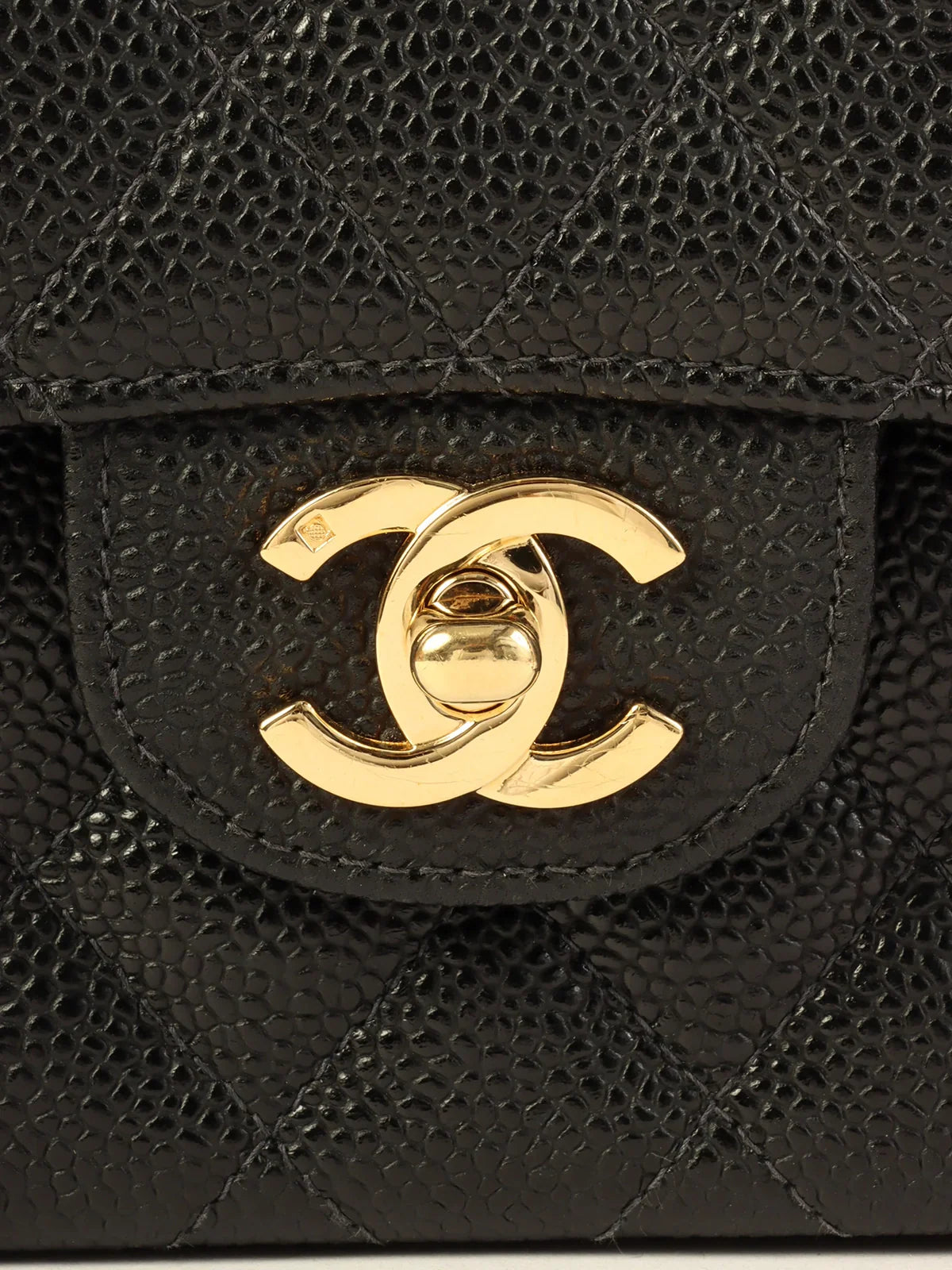 CHANEL Around 2003 Made Caviar Skin Classic Flap Chain Bag 23Cm Black