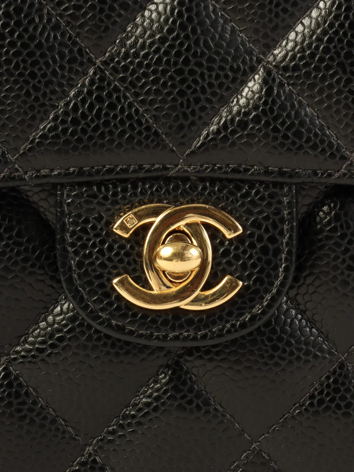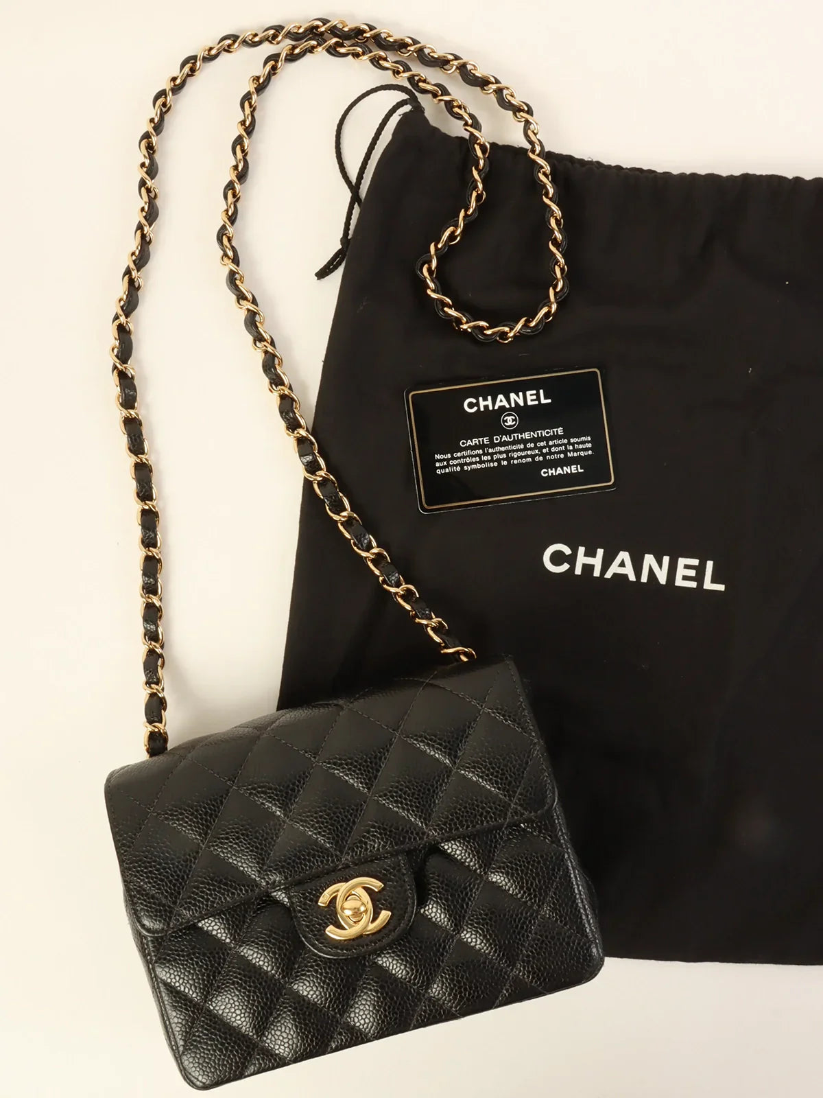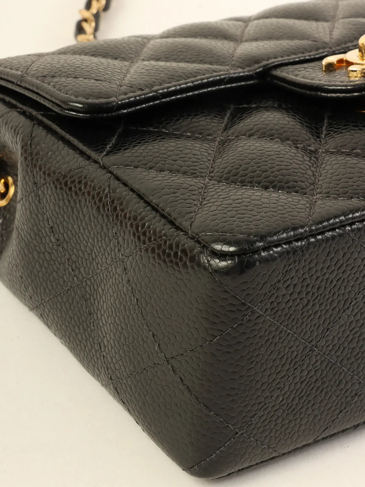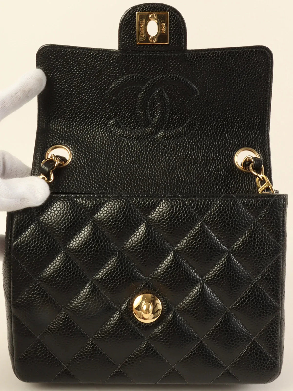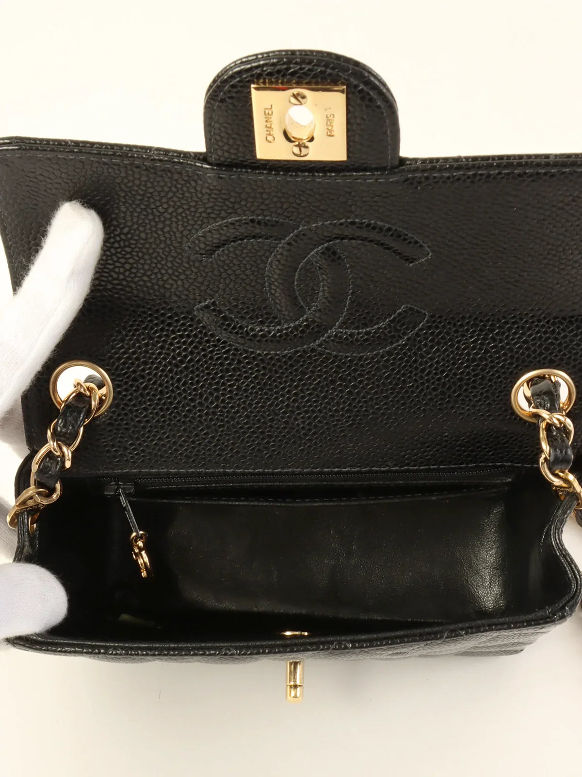 CHANEL Around 2003 Made Caviar Skin Classic Flap Chain Bag Mini Black