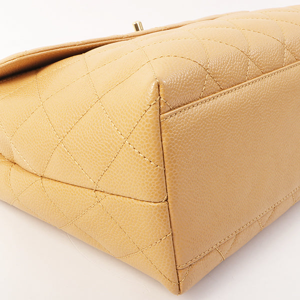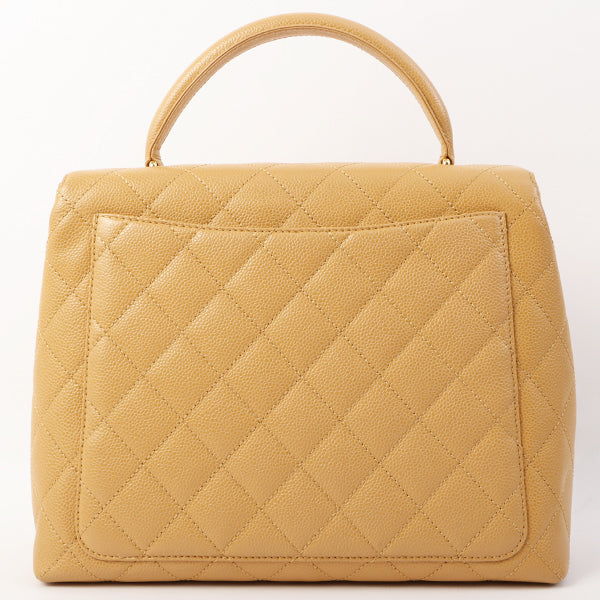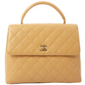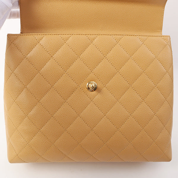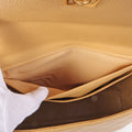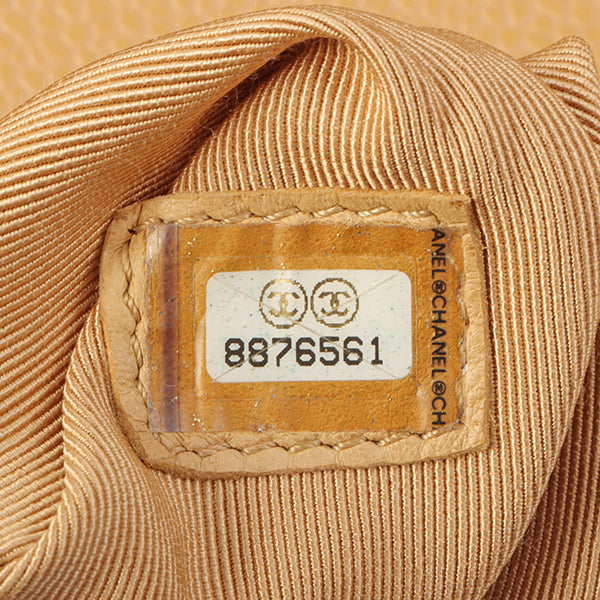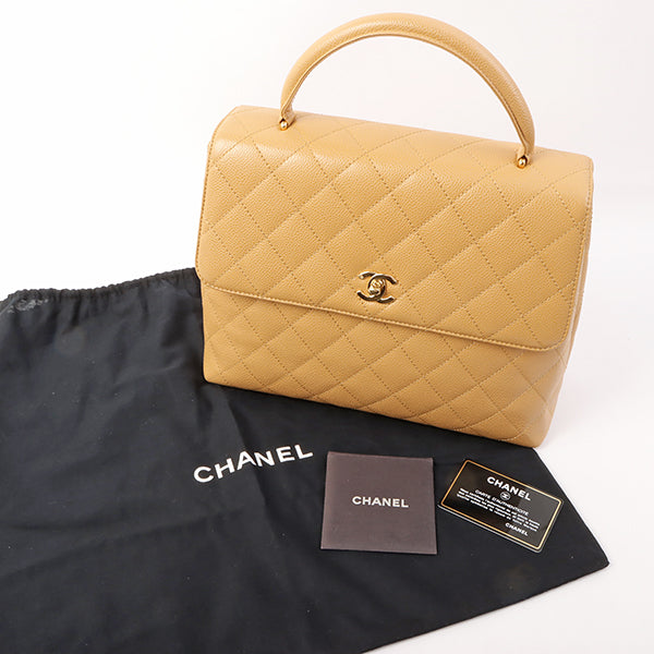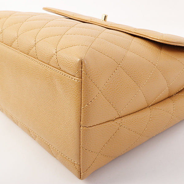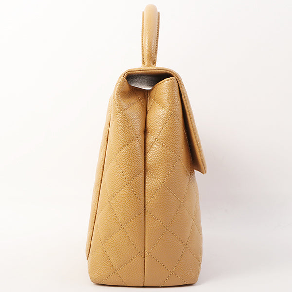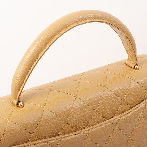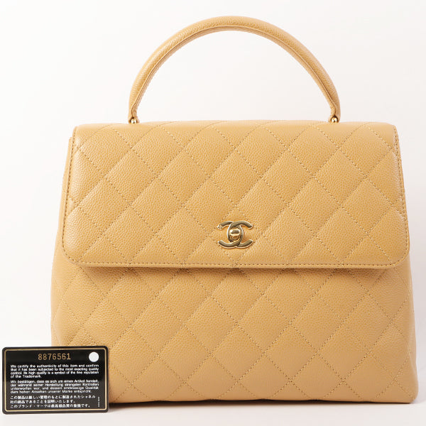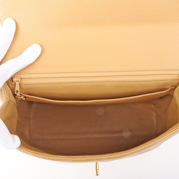 Chanel Around 2003 Made Caviar Skin Straight Flap Turn-Lock Top Handle Bag Beige