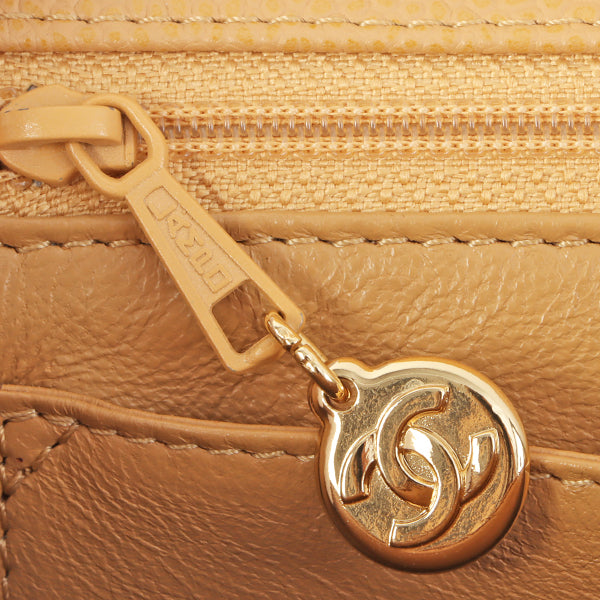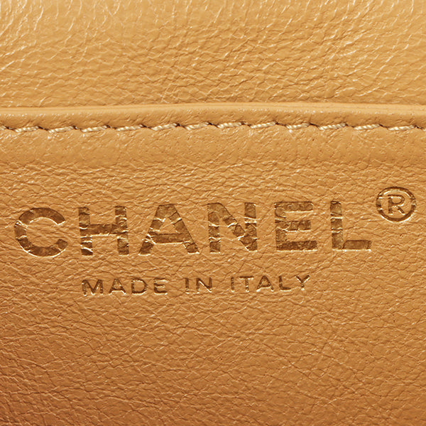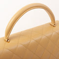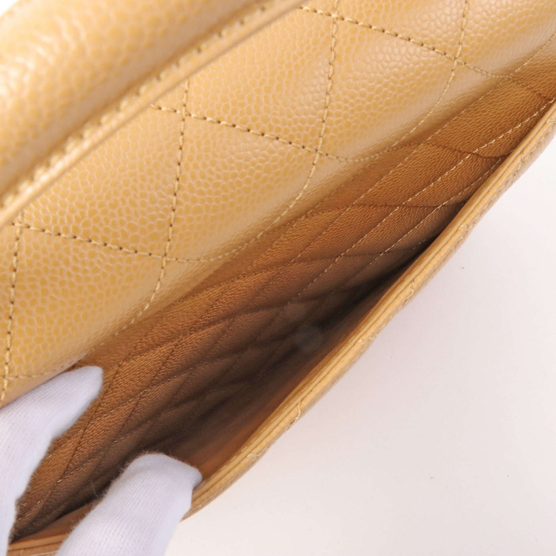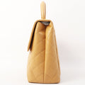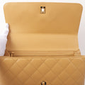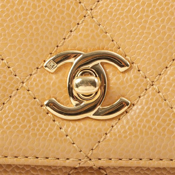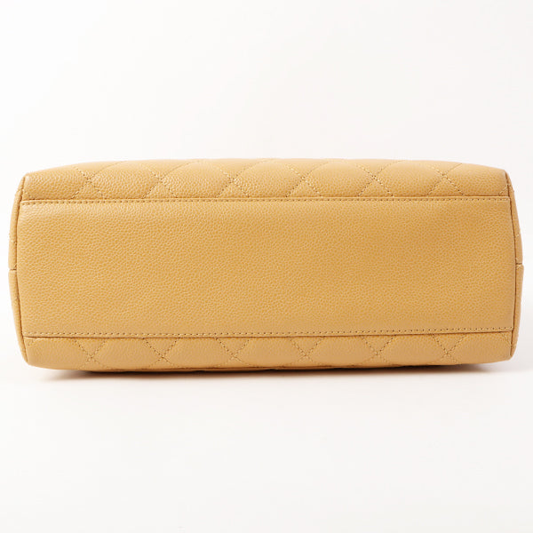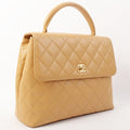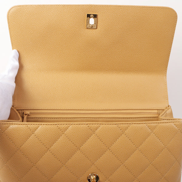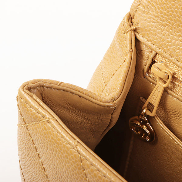 Chanel Around 2003 Made Caviar Skin Straight Flap Turn-Lock Top Handle Bag Beige