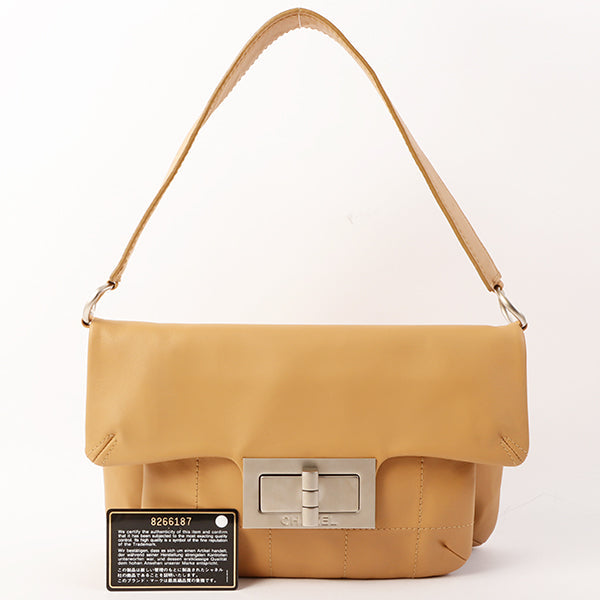 Chanel Around 2003 Made Soft Calf Skin 2.55 Plate Shoulder Bag Beige