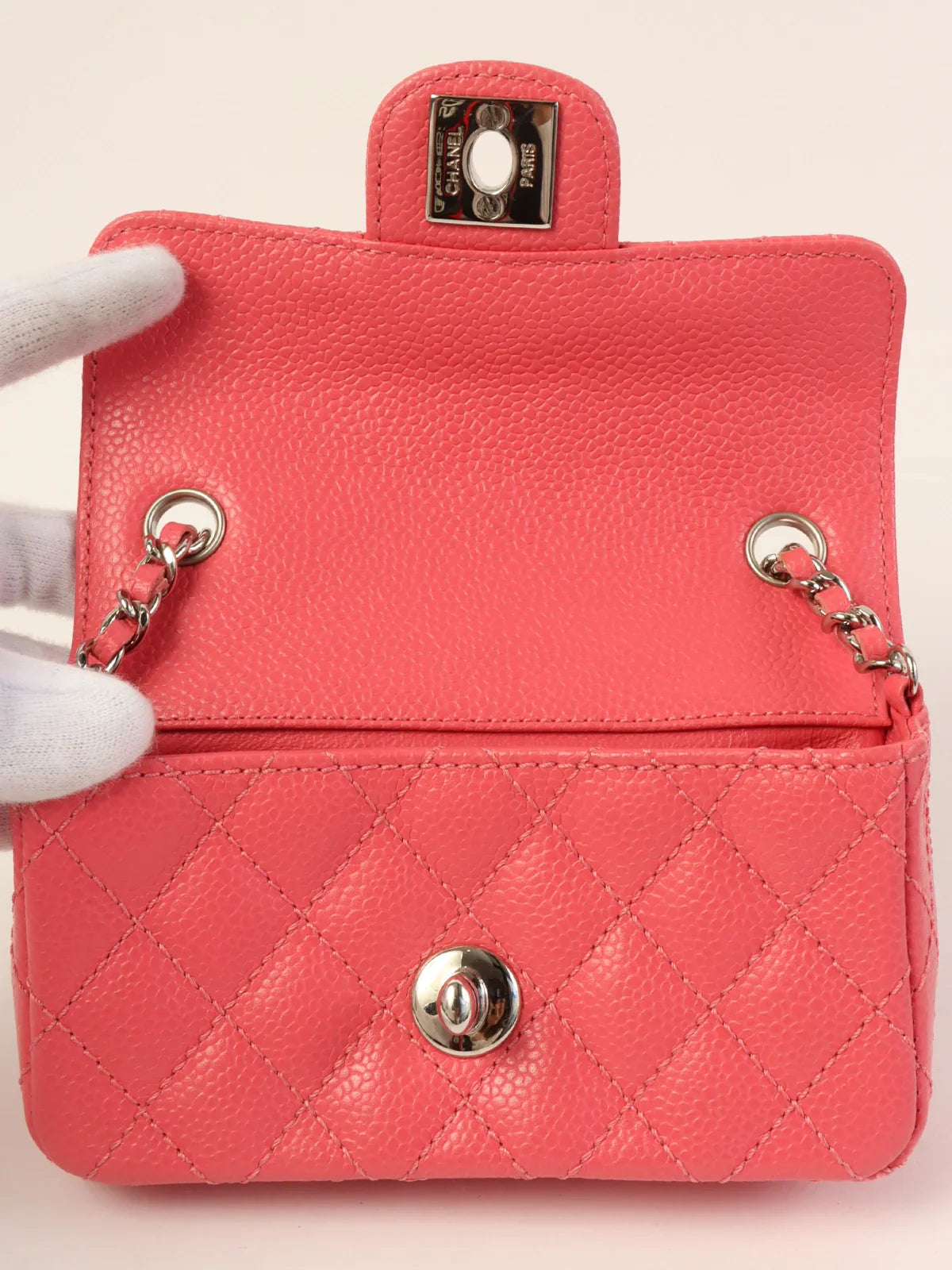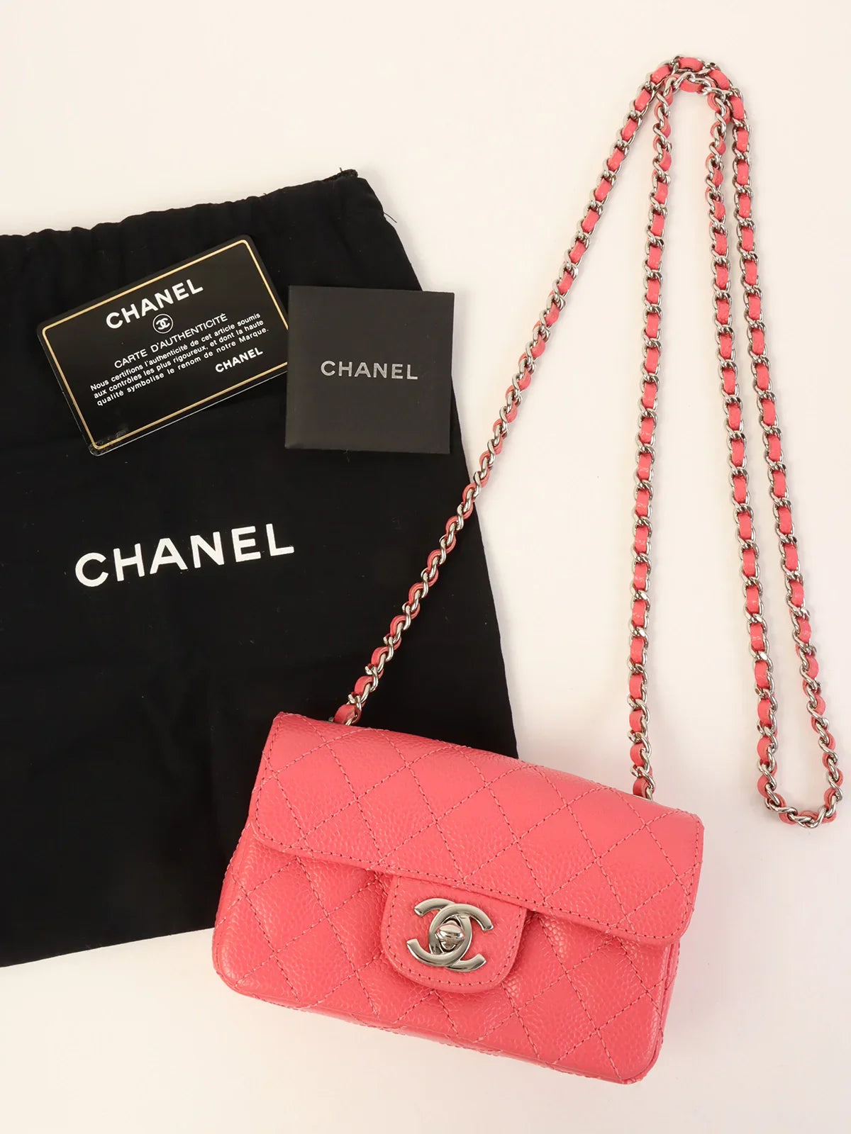 CHANEL Around 2004 Made Caviar Skin Turn-Lock Mini Chain Bag Pink