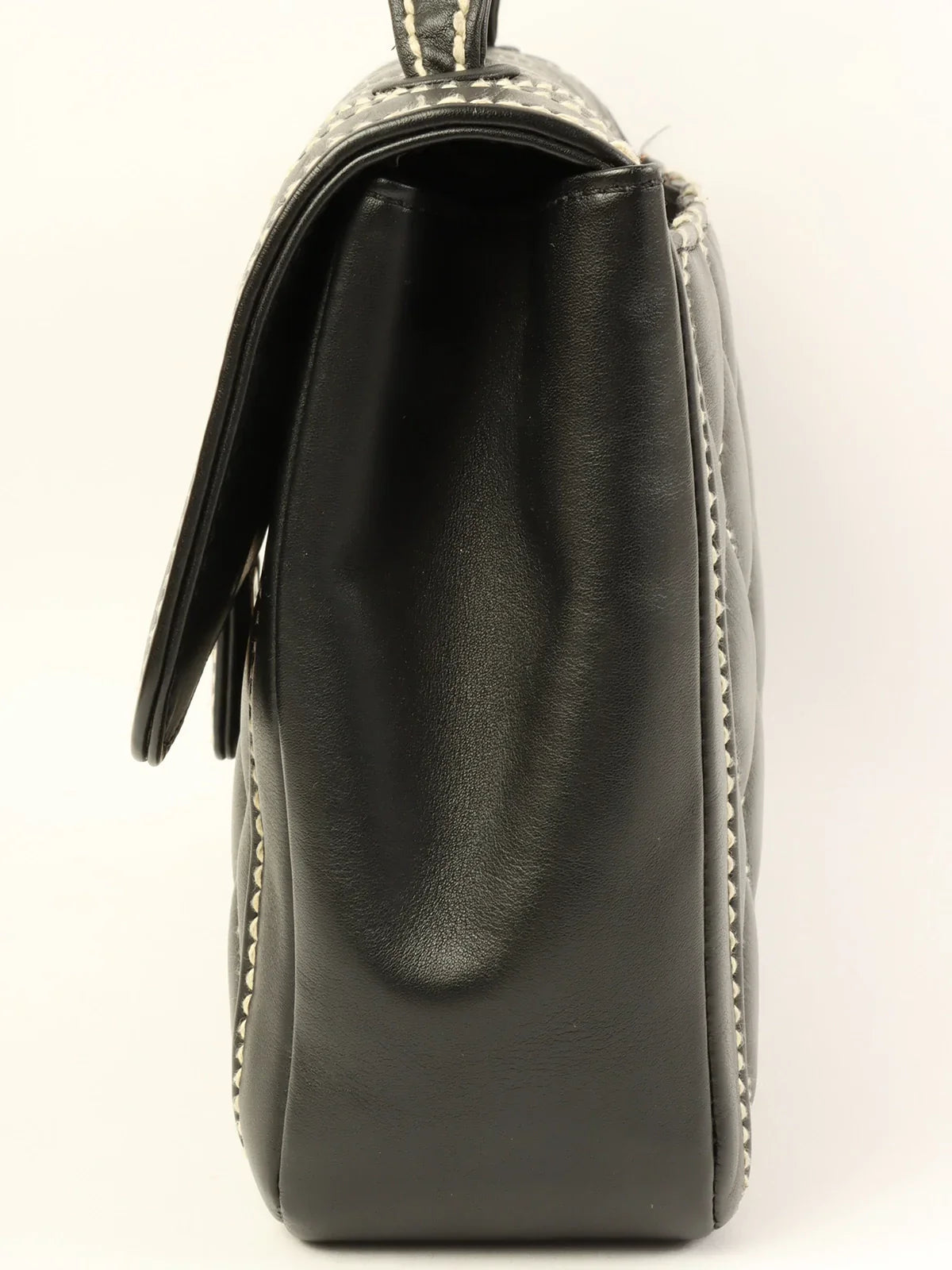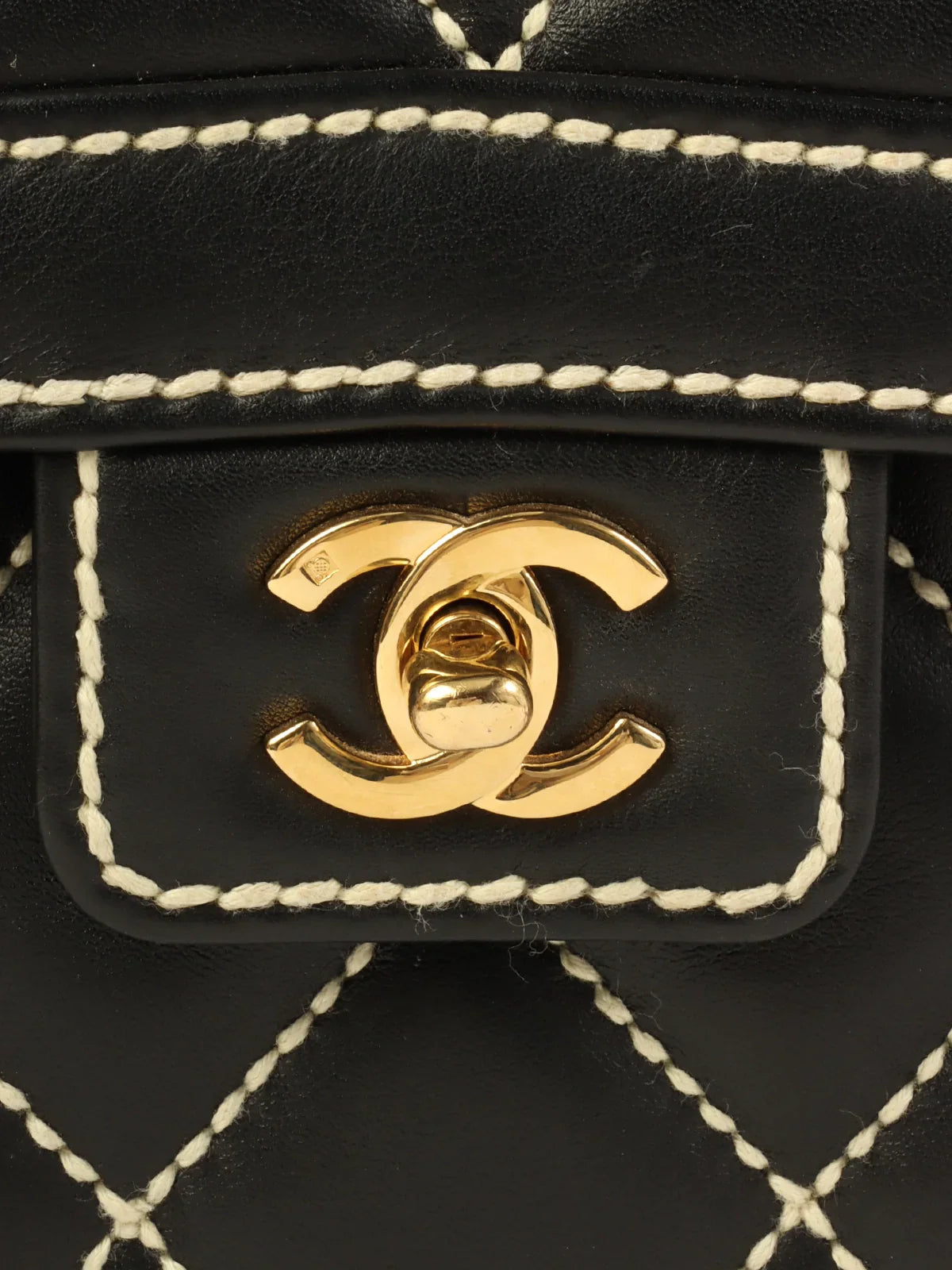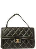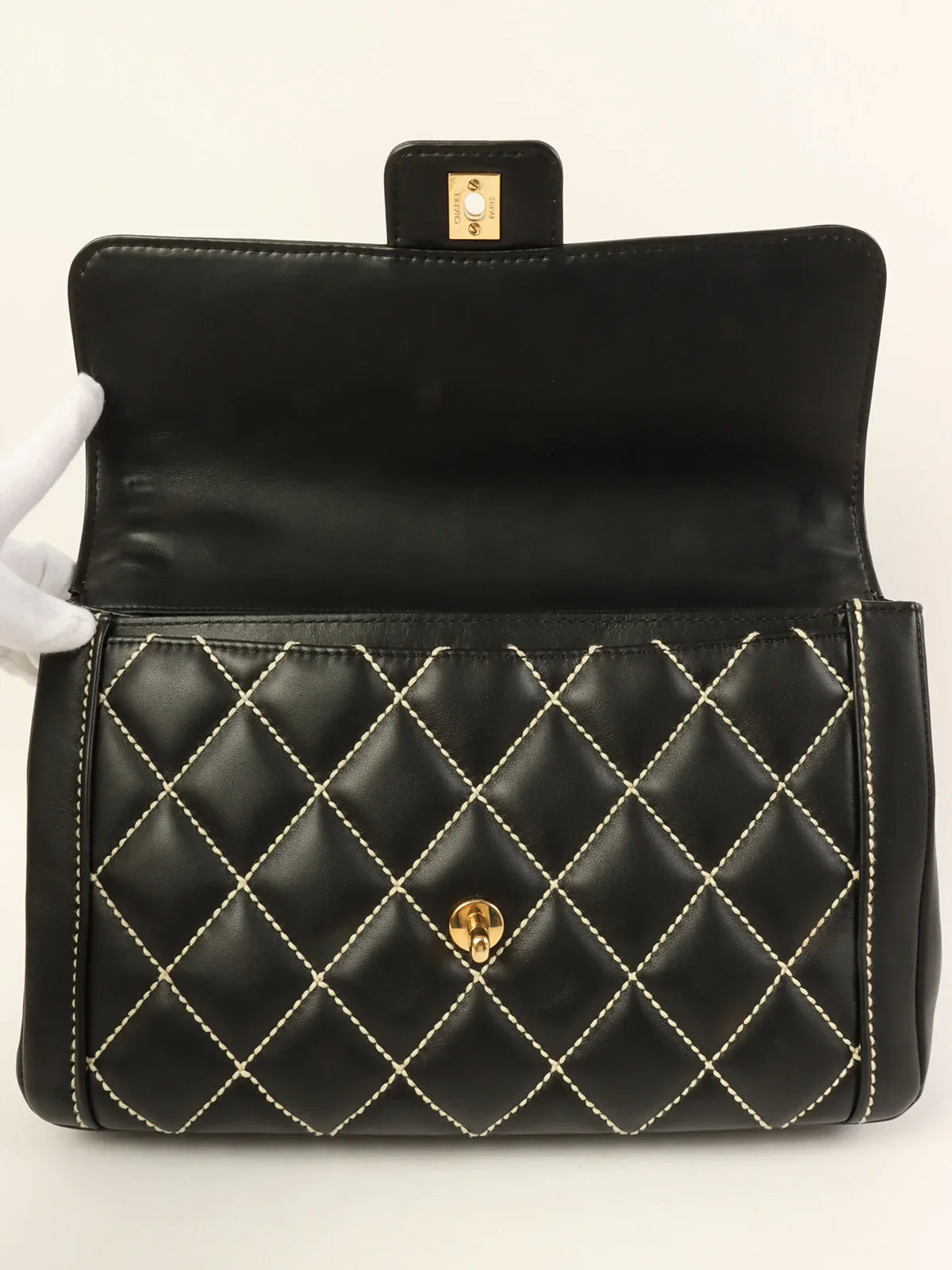 CHANEL Around 2004 Made Wild Stitch Turn-Lock Top Handle Bag Black