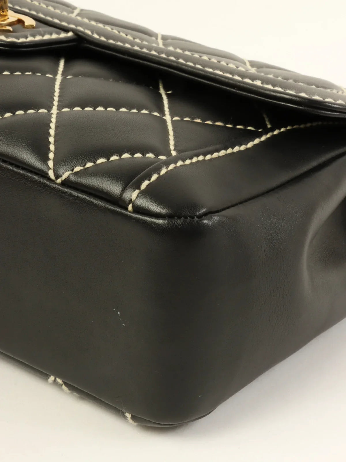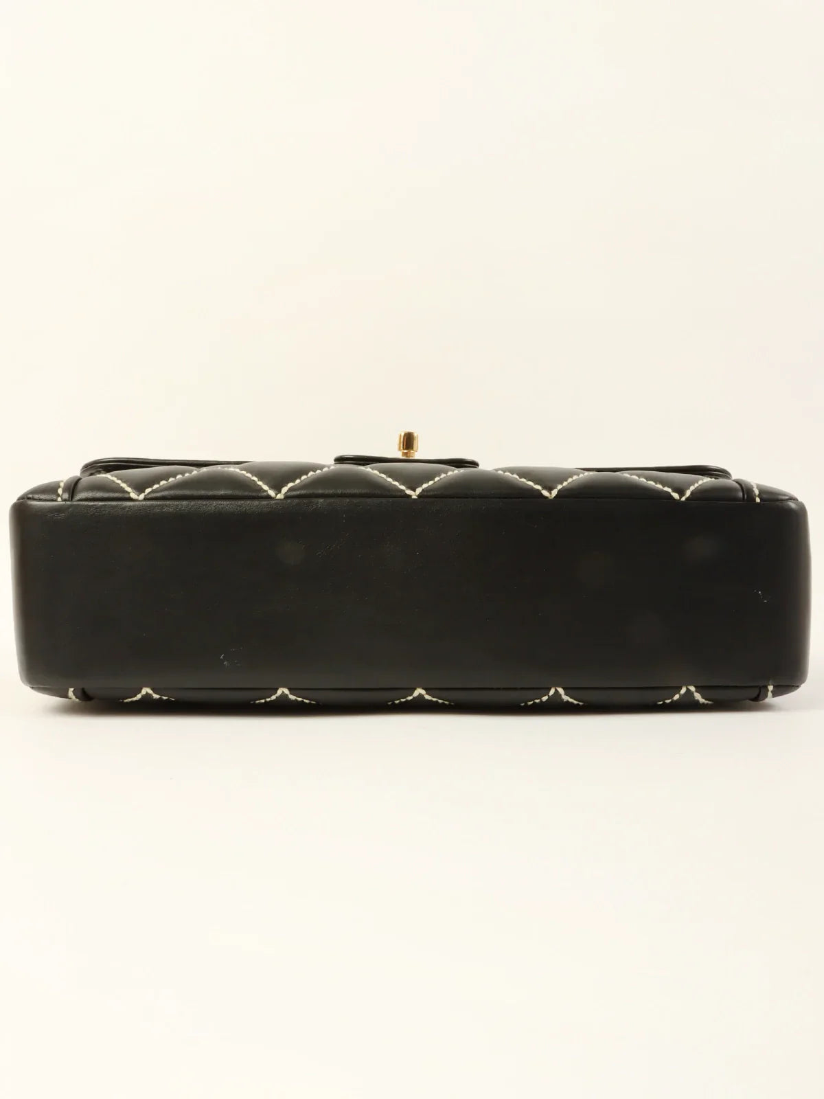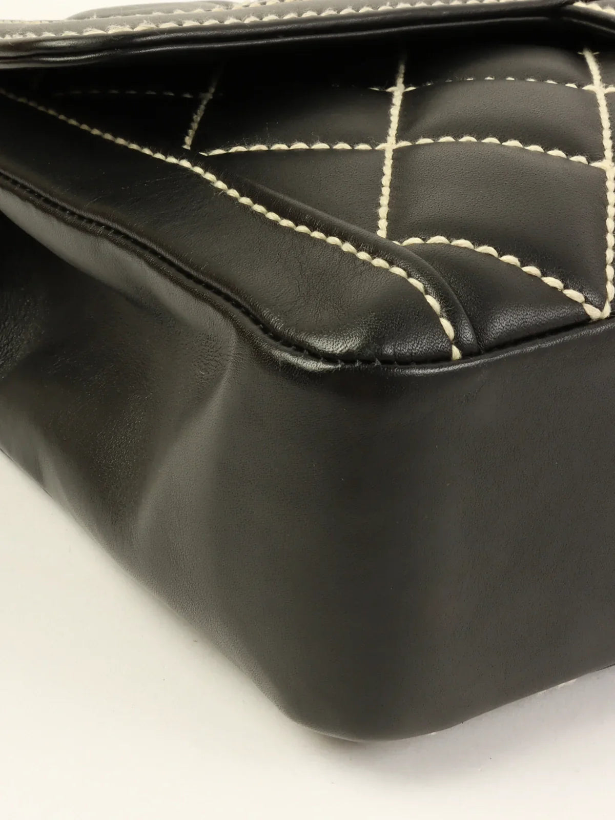 CHANEL Around 2004 Made Wild Stitch Turn-Lock Top Handle Bag Black