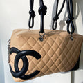 Chanel Around 2005 Made Cambon Shoulder Bag Beige/Black