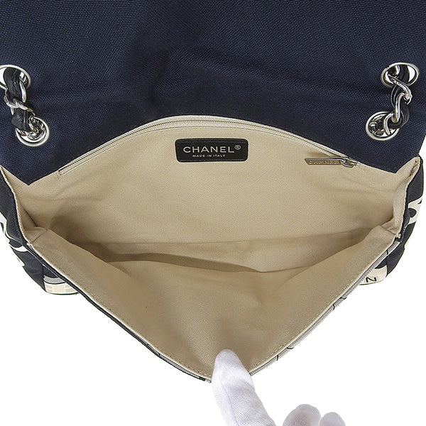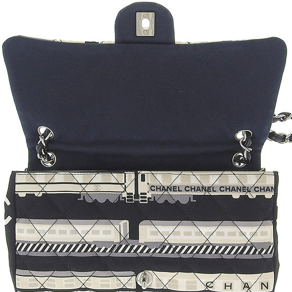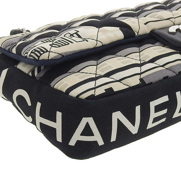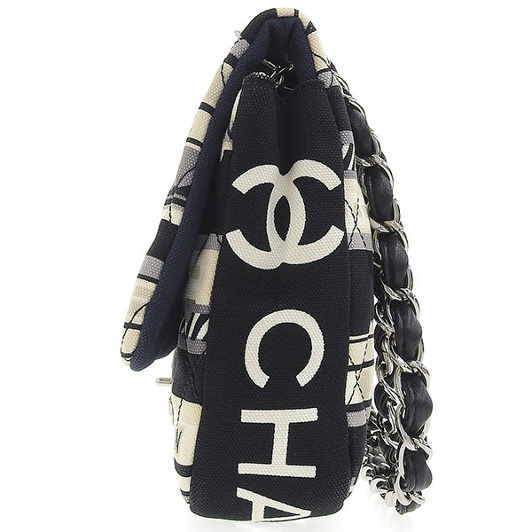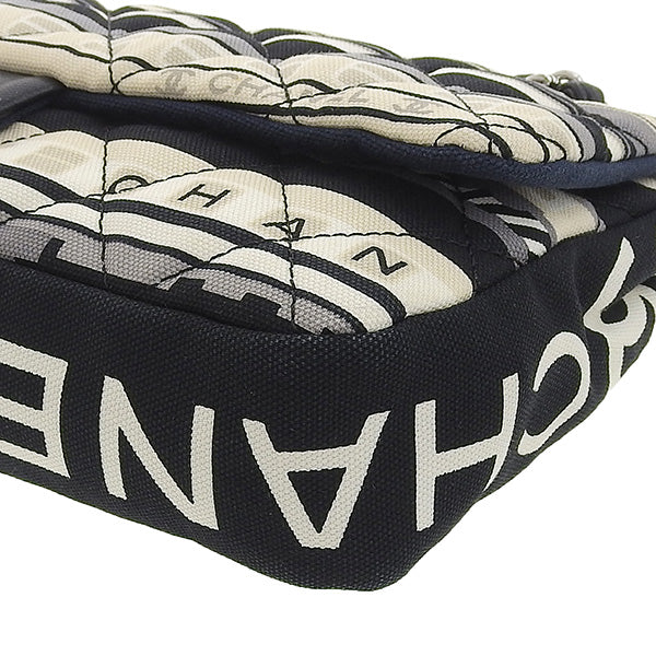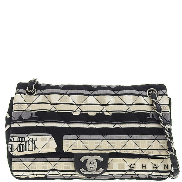 CHANEL Around 2005 Made Canvas Central Station Classic Flap Chain Bag Black/White/Multi