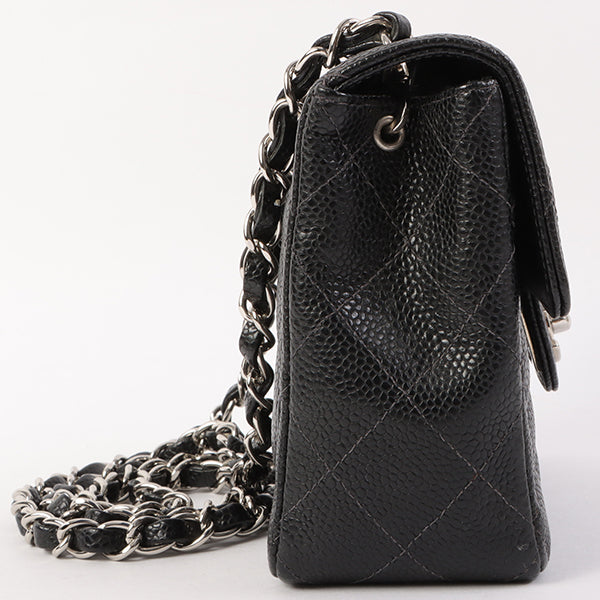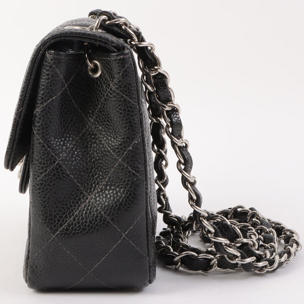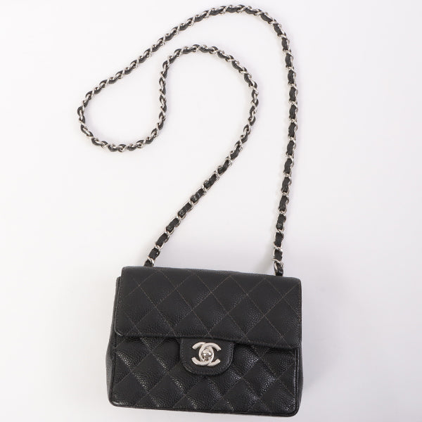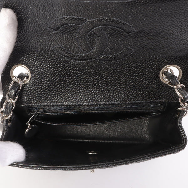 Chanel Around 2005 Made Caviar Skin Classic Flap Chain Bag Mini Black