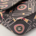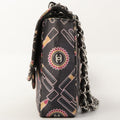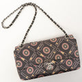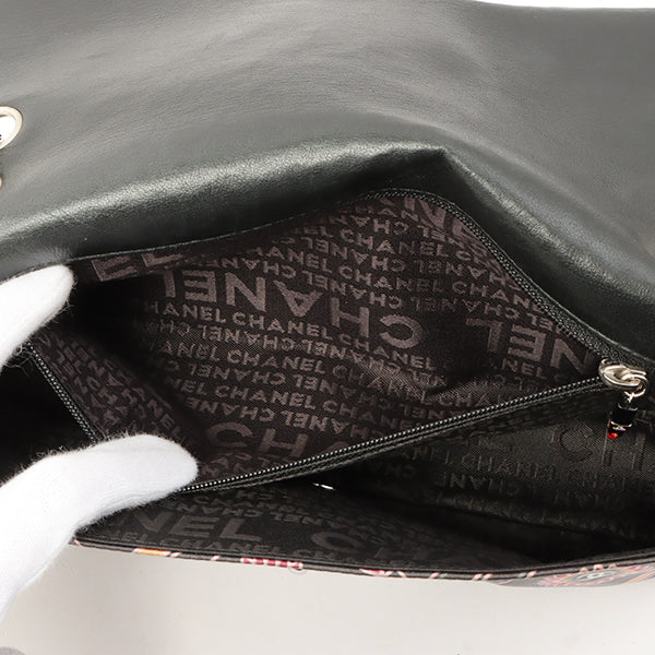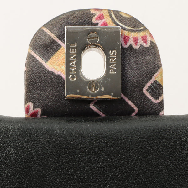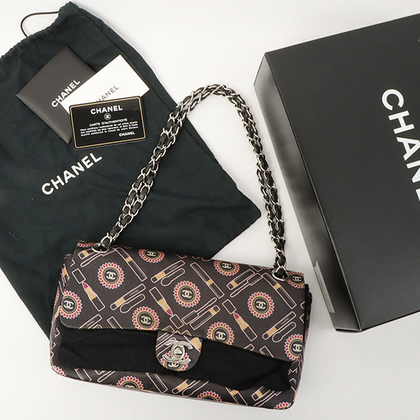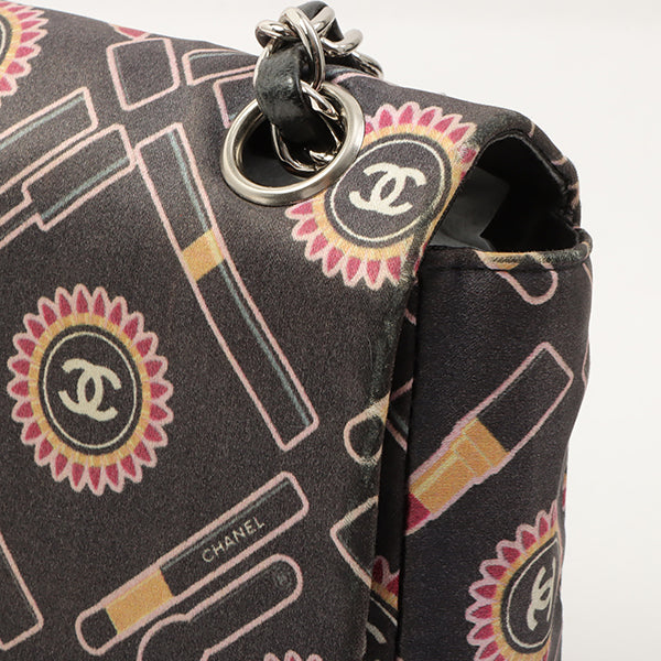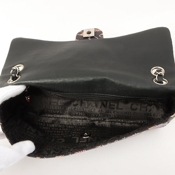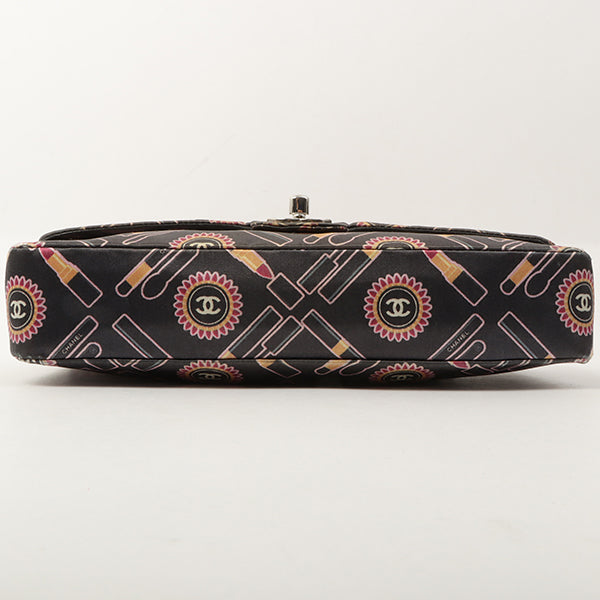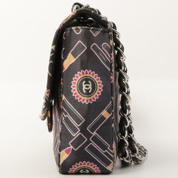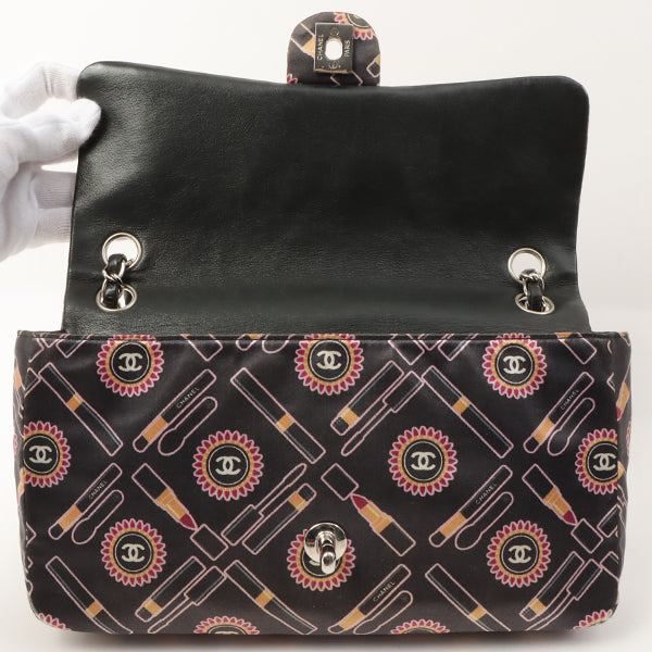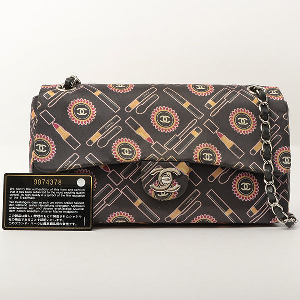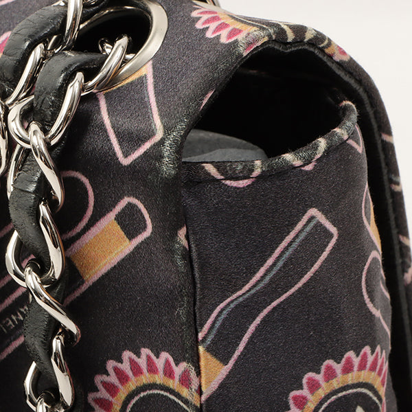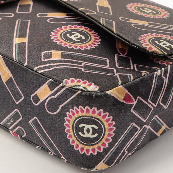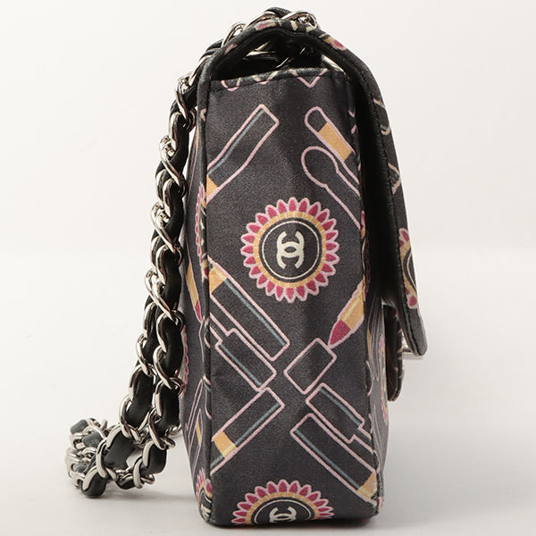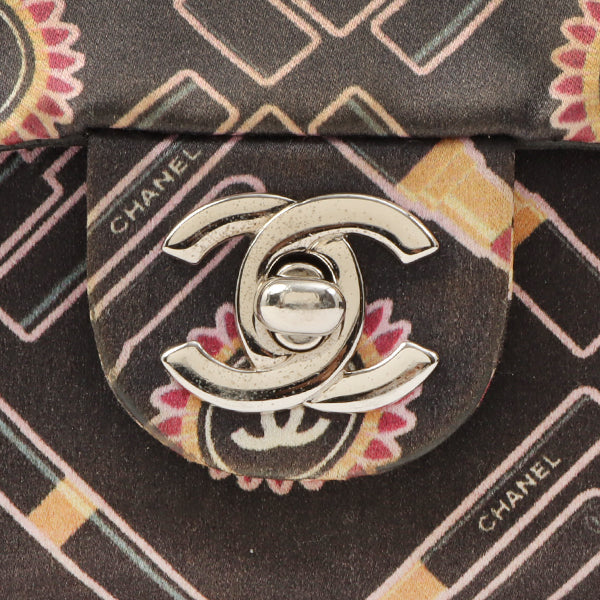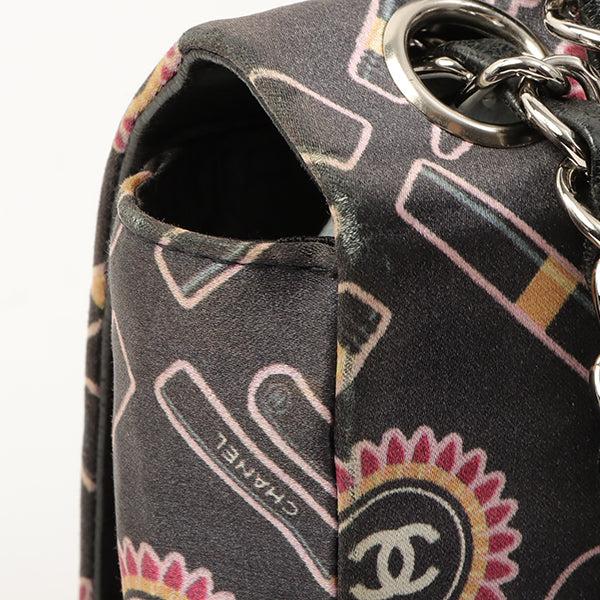 Chanel Around 2005 Made Satin Print Classic Flap Chain Bag 25Cm Black / Multi