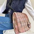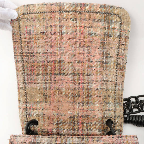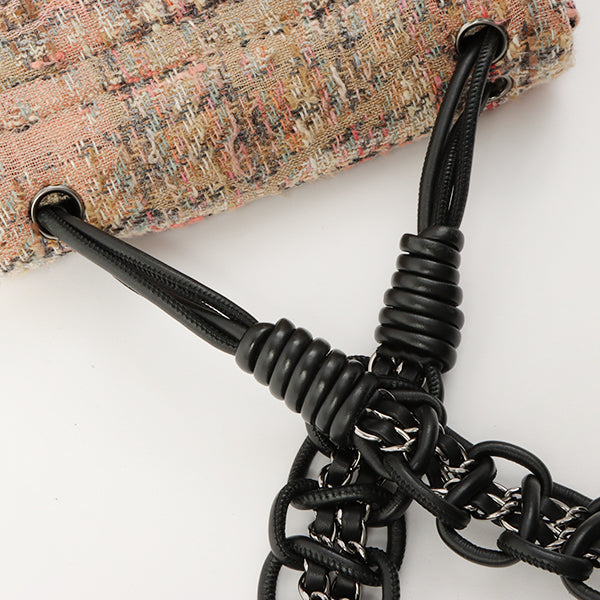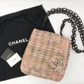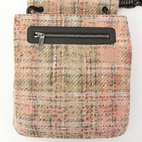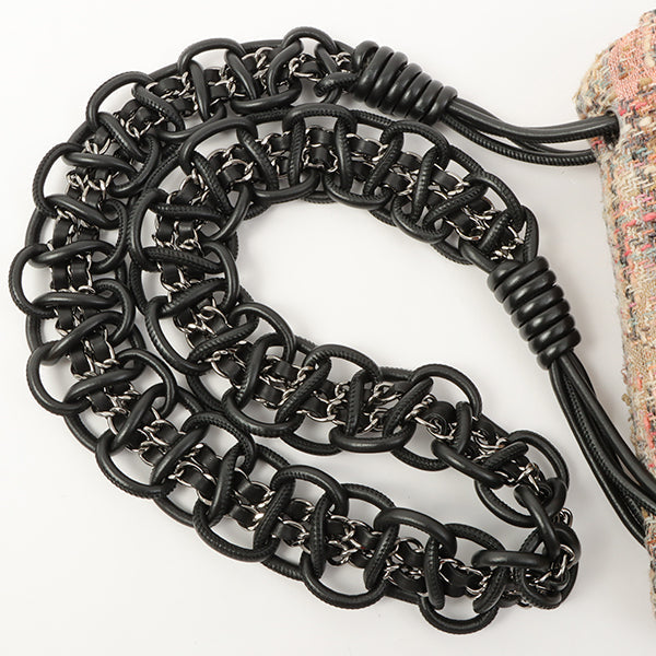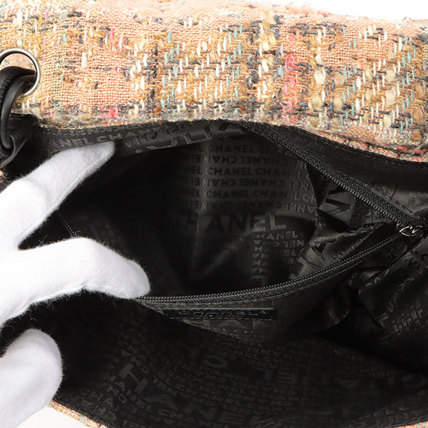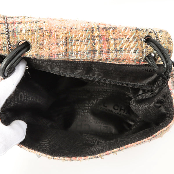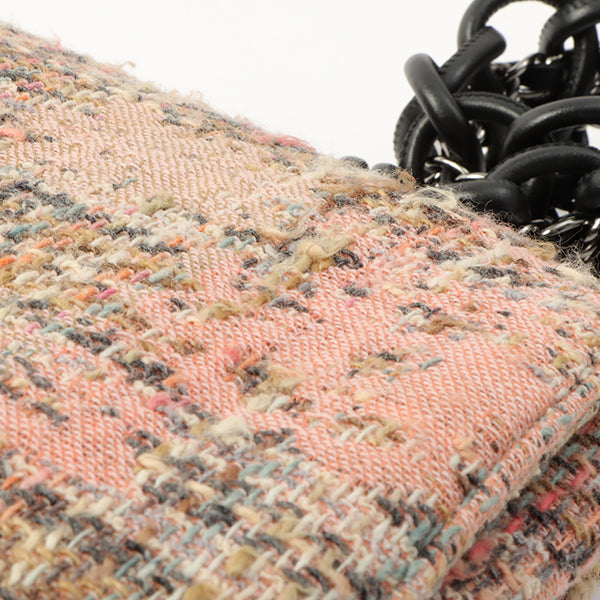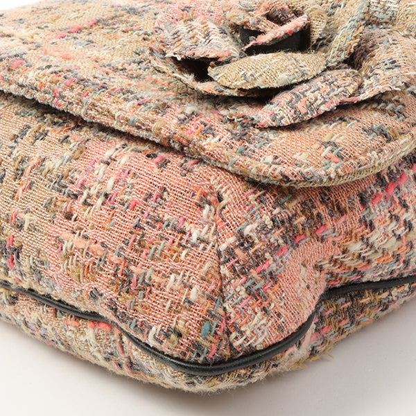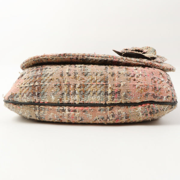 Chanel Around 2005 Made Tweed Camellia Design Chain Shoulder Bag Pink/Multi