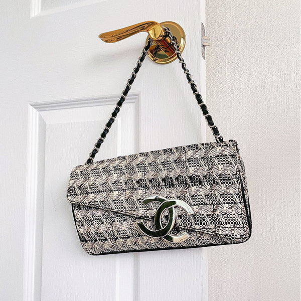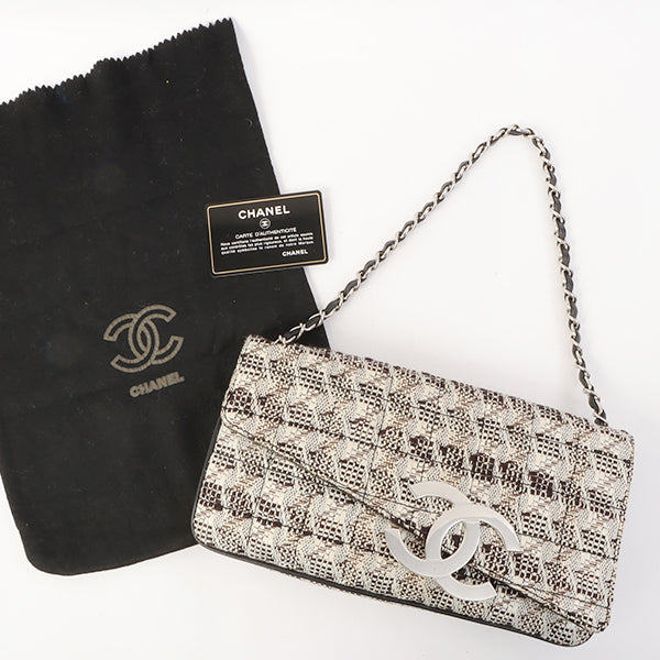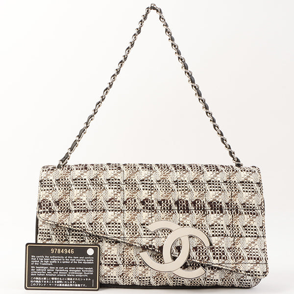 Chanel Around 2005 Made Tweed Cc Mark Plate Chain Shoulder Bag Black/Multi
