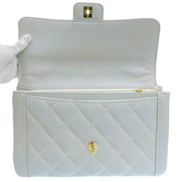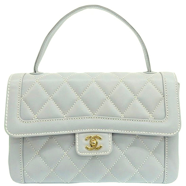 CHANEL Around 2005 Made Wild Stitch Turn-Lock Top Handle Bag Ice Blue