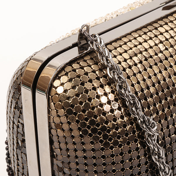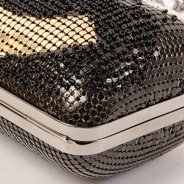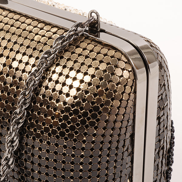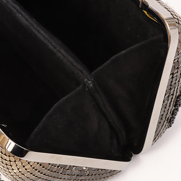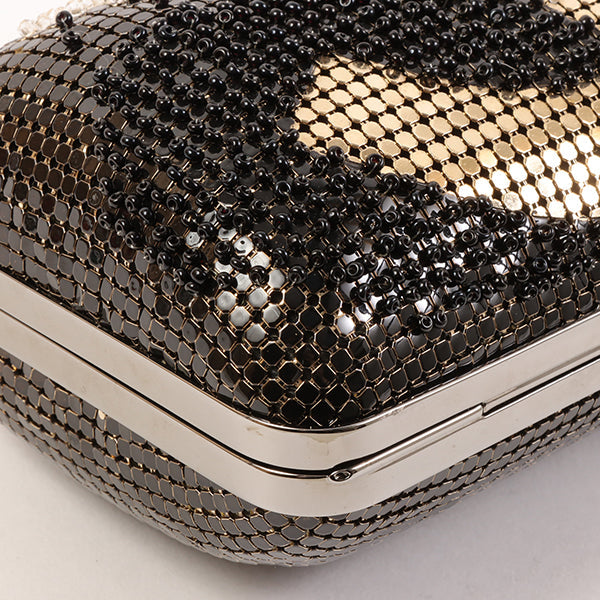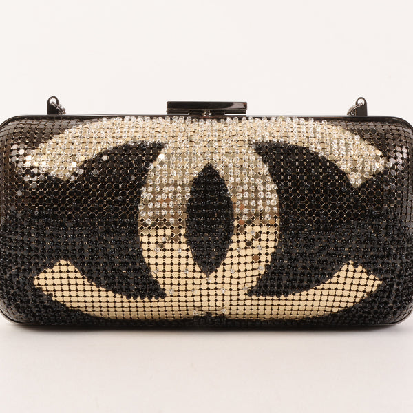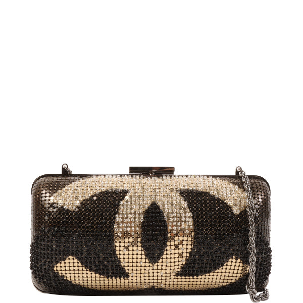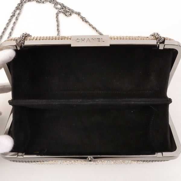 CHANEL Around 2006 Made Beads Cc Metal Clasp Chain 2Way Bag Black