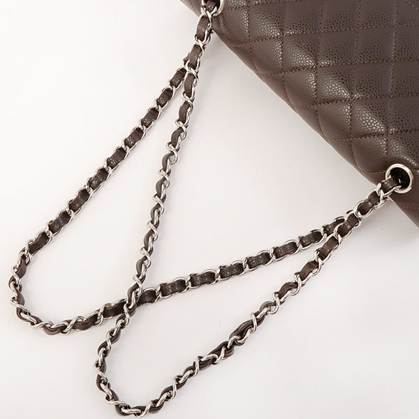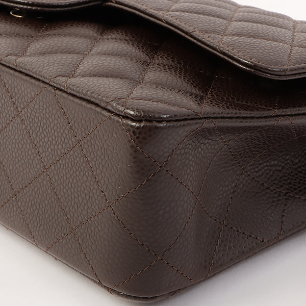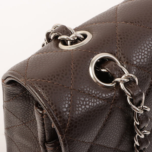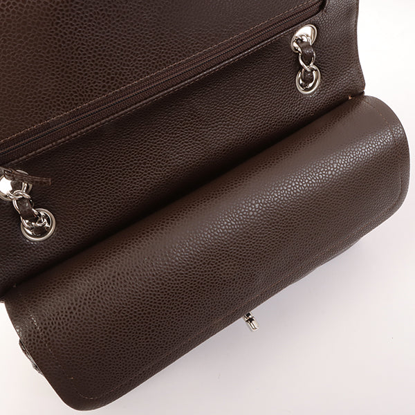 Chanel Around 2006 Made Caviar Skin Classic Flap Chain Bag 25Cm Dark Brown