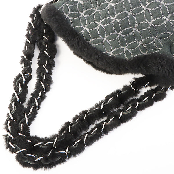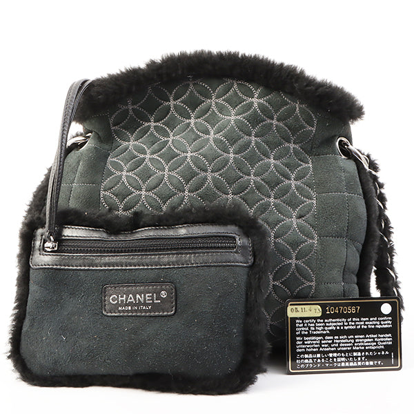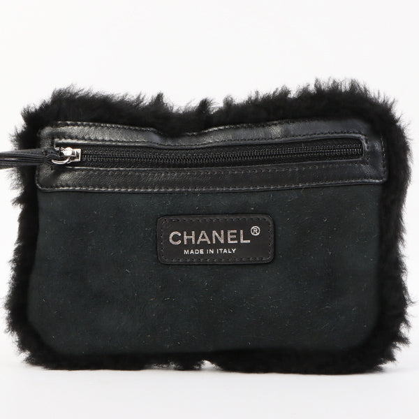 Chanel Around 2006 Made Mouton Cc Mark Stitch Shoulder Bag With Pouch Black