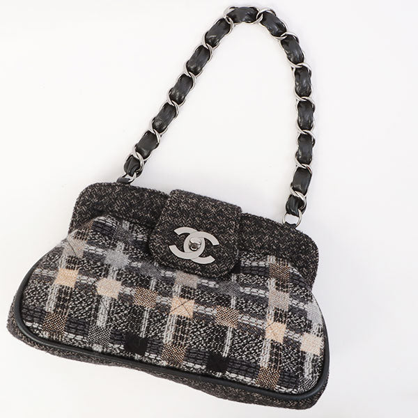 Chanel Around 2006 Made Tweed Cc Mark Plate Chain Shoulder Bag Black/Multi
