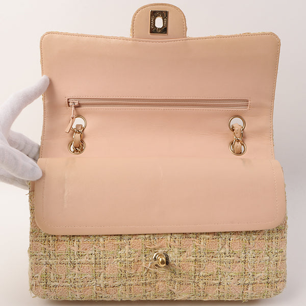 Chanel Around 2006 Made Tweed Classic Flap Chain Bag 25Cm Salmon Pink/Multi