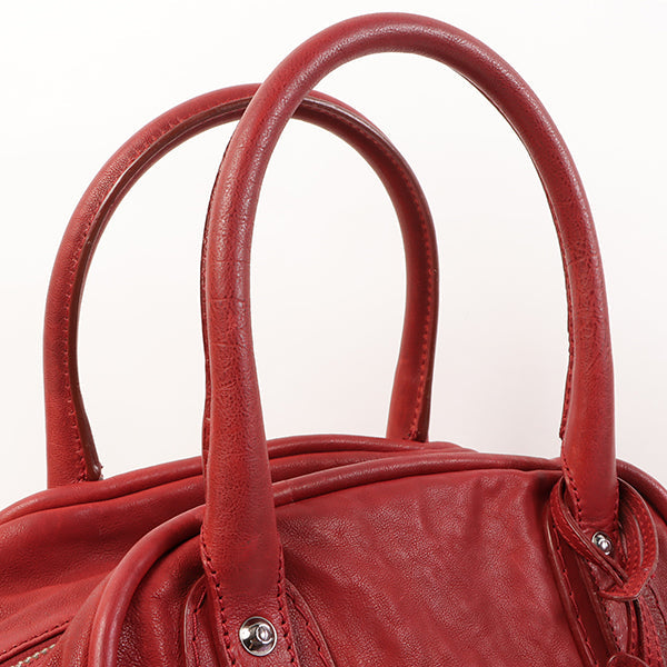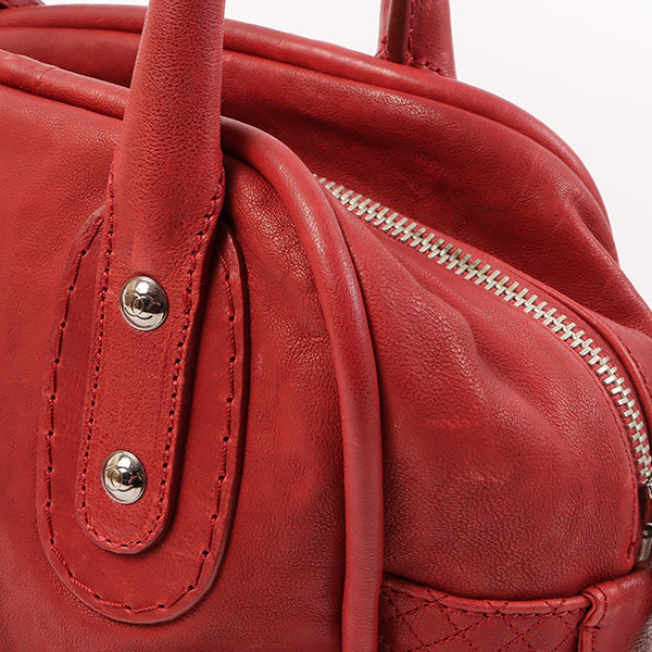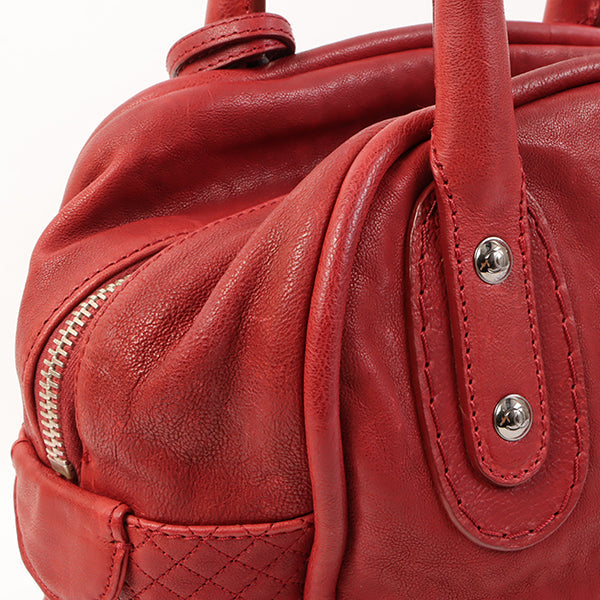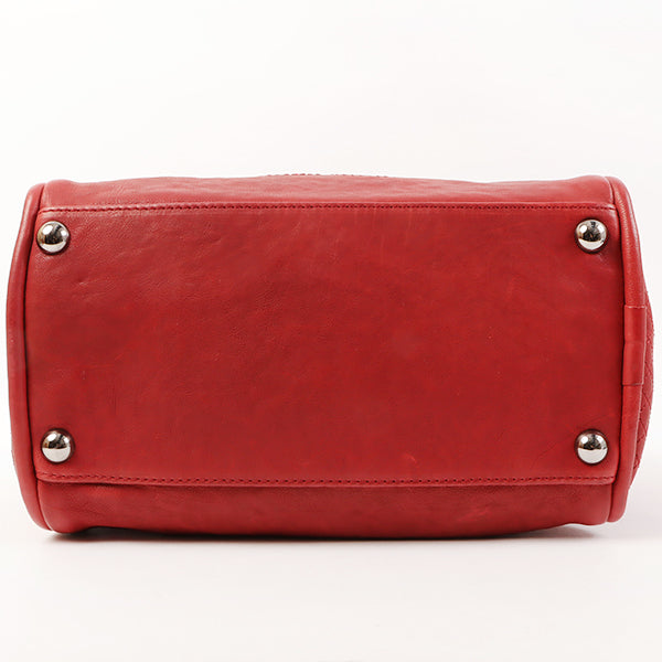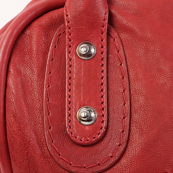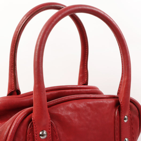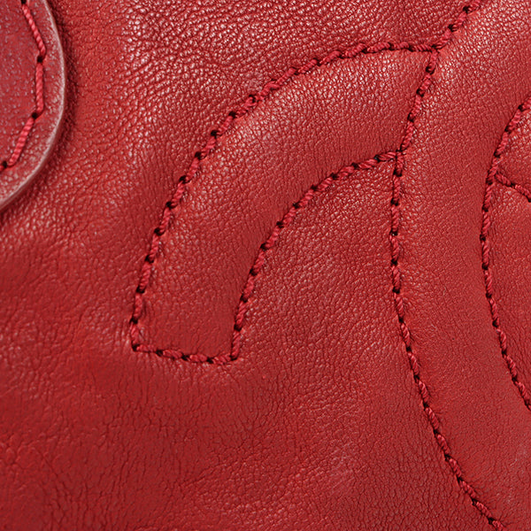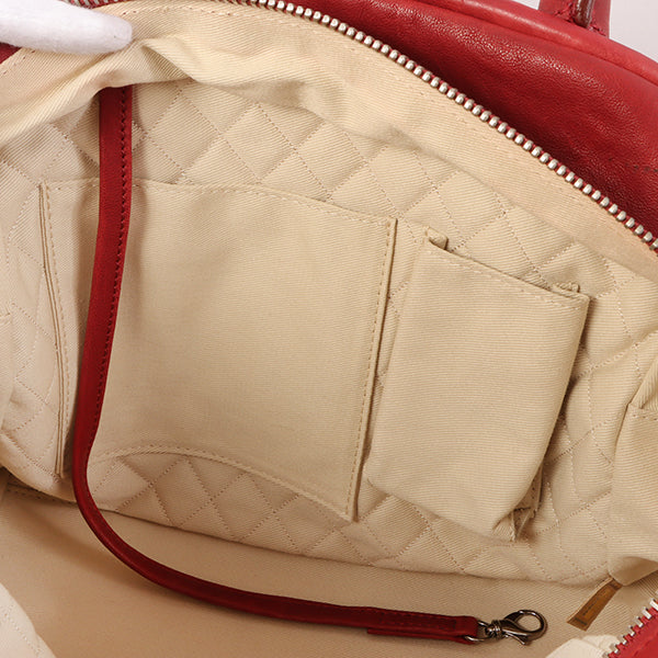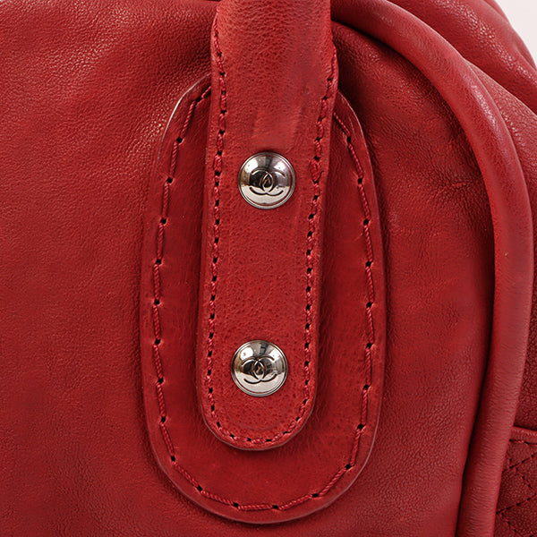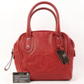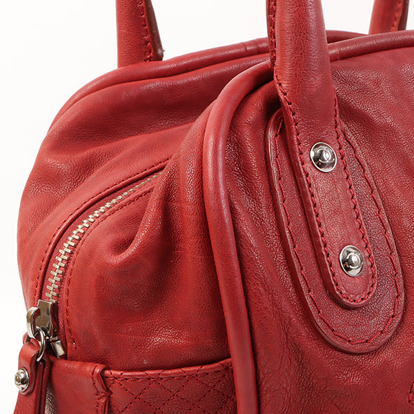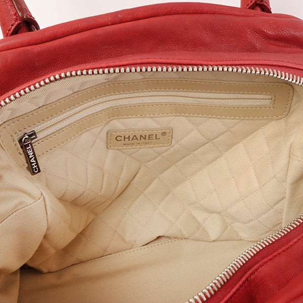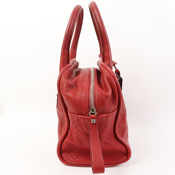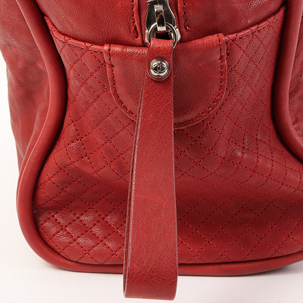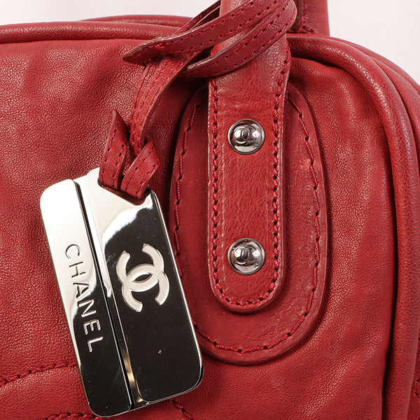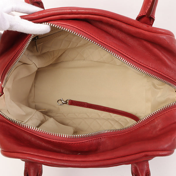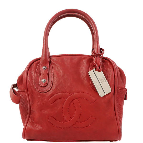 CHANEL Around 2007 Made Cc Mark Stitch Logo Plate Charm Handle Bag Red