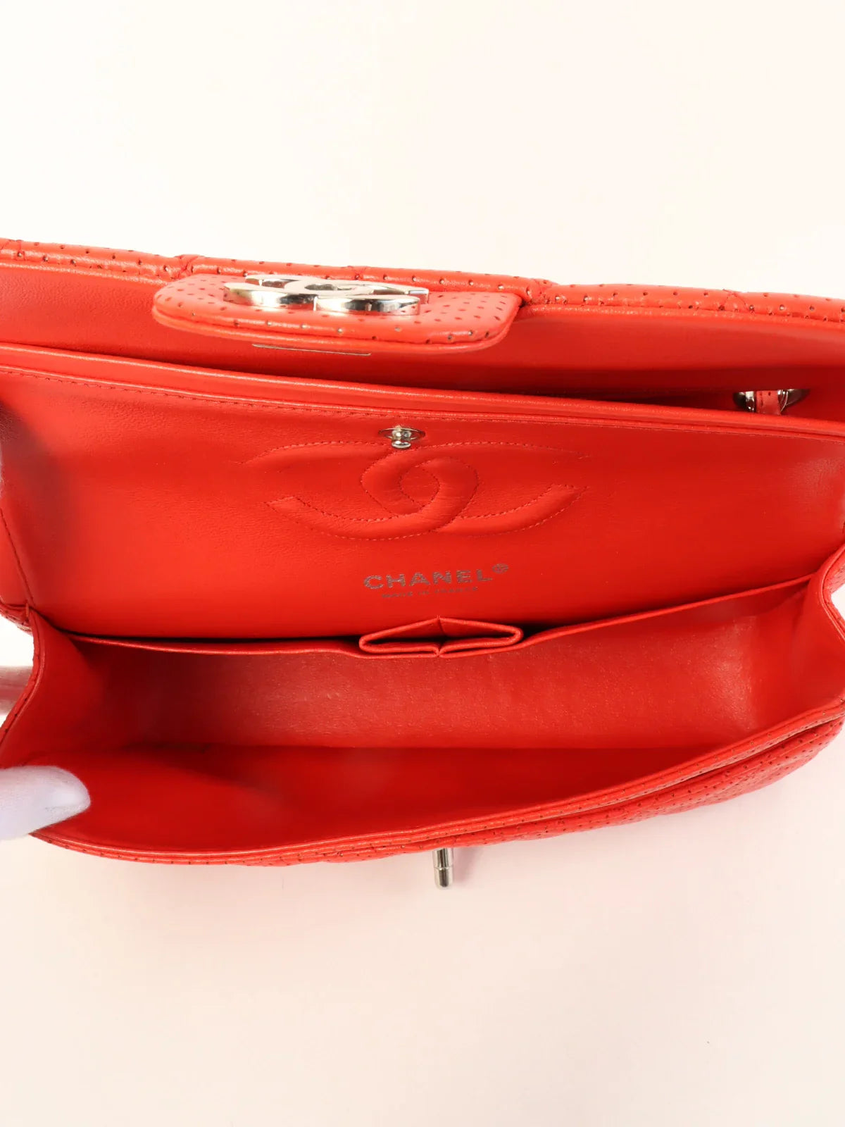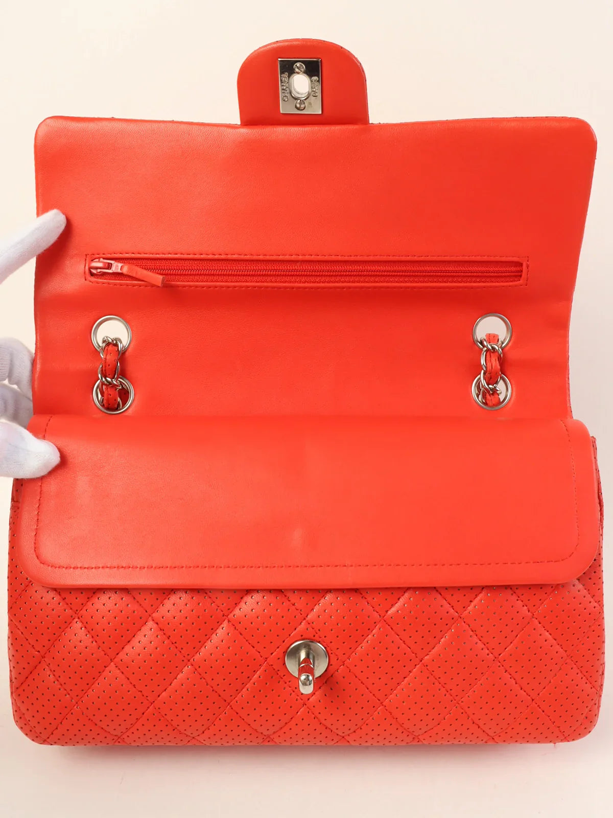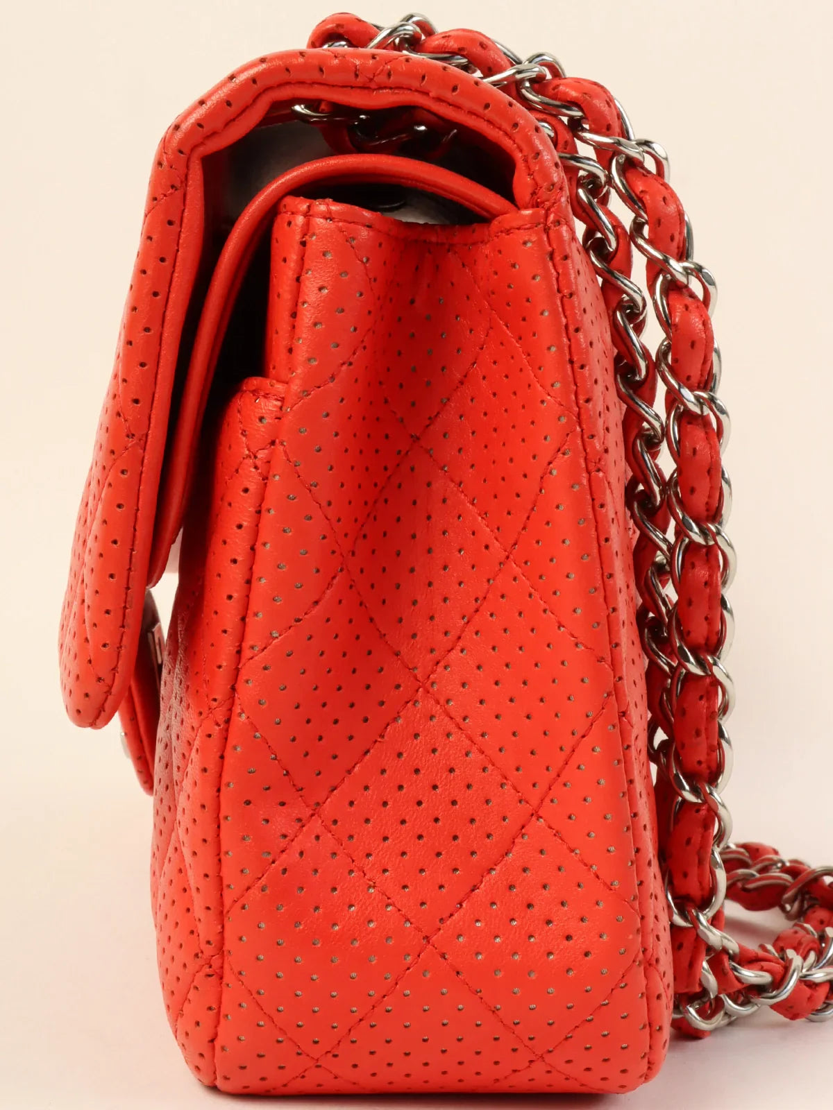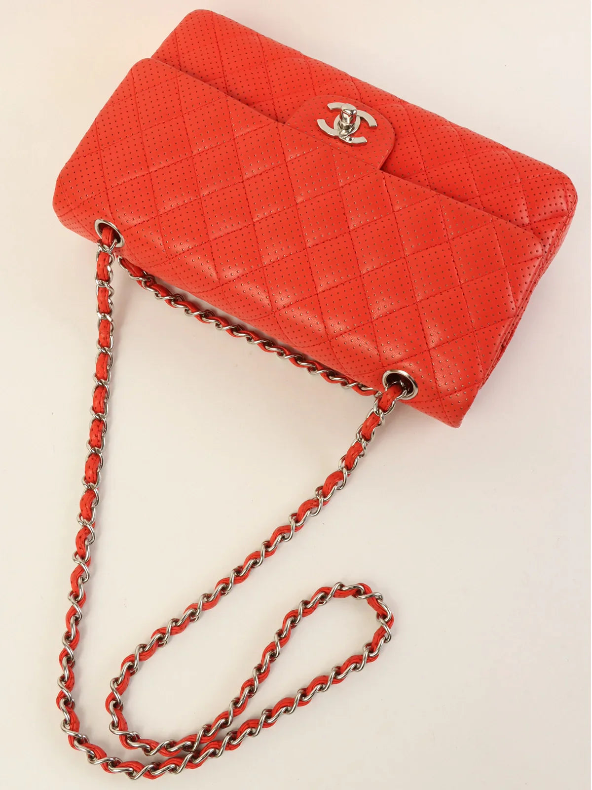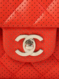 CHANEL Around 2007 Made Punching Leather Turn-Lock Chain Shoulder Bag Red