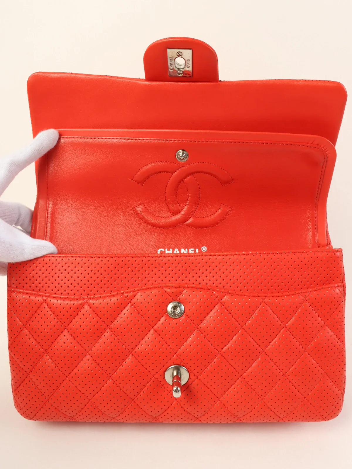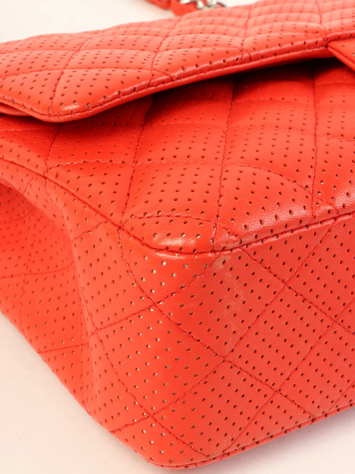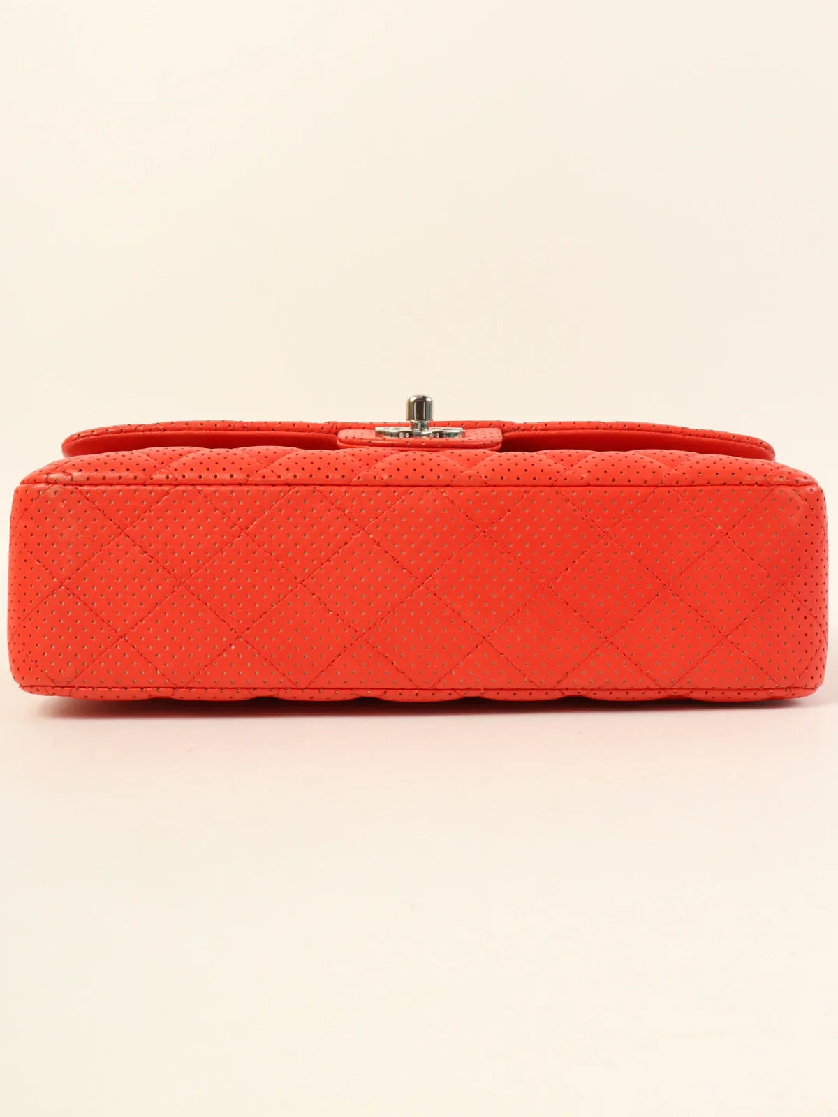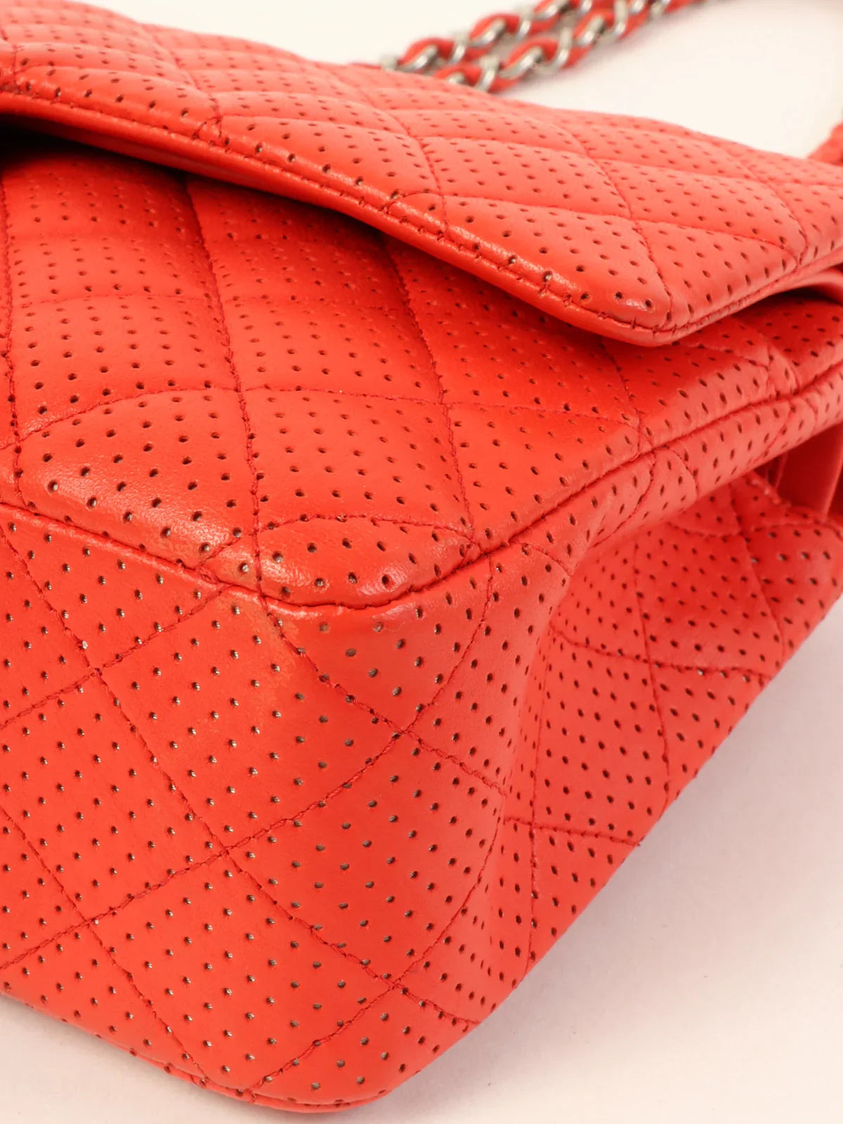 CHANEL Around 2007 Made Punching Leather Turn-Lock Chain Shoulder Bag Red