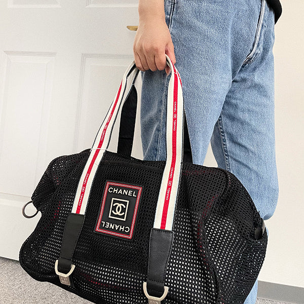 Chanel Around 2007 Made Sport Line Mesh Cc Mark Boston Bag Black