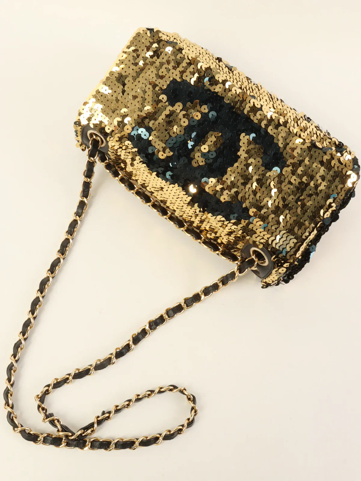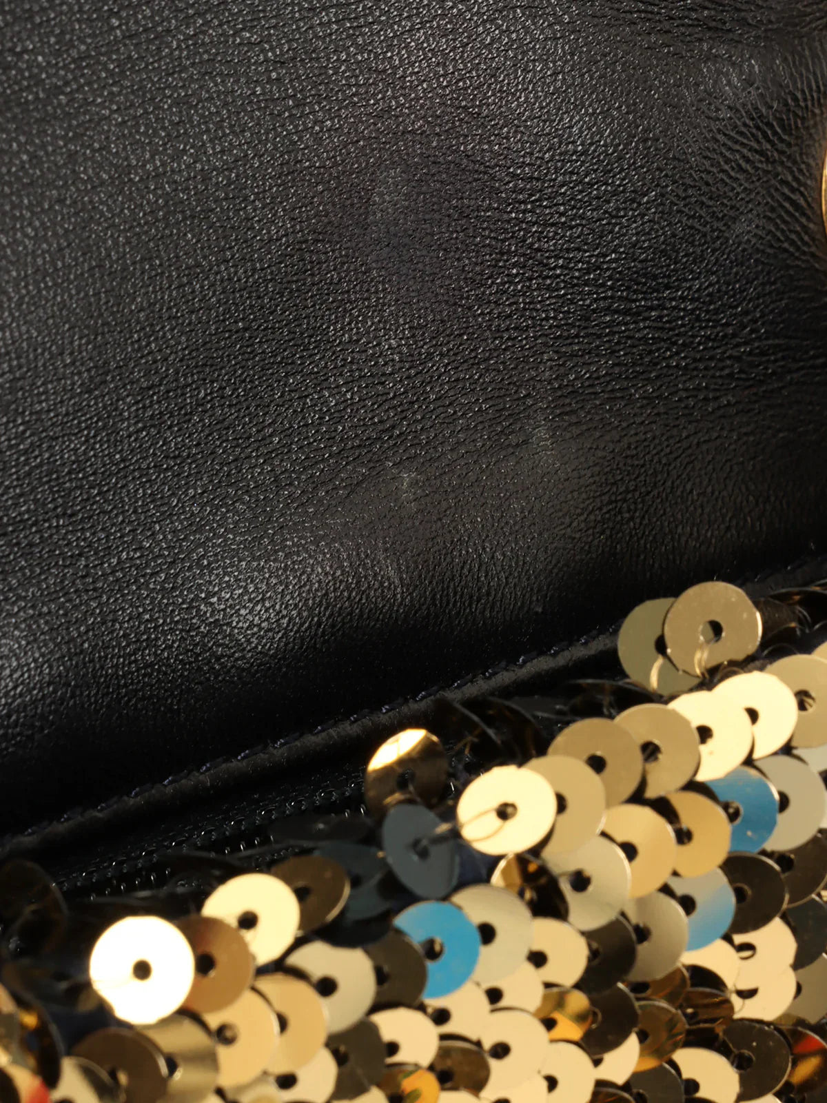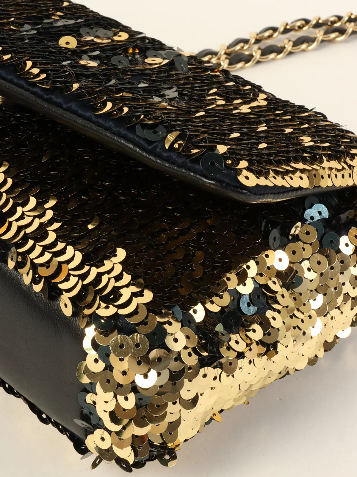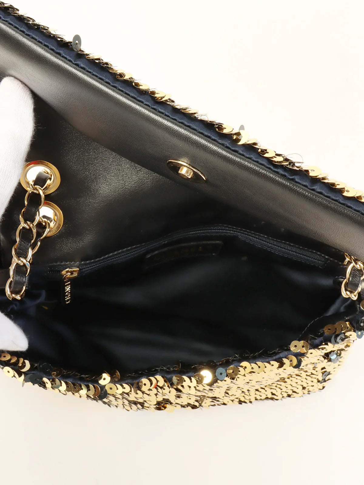 CHANEL Around 2008 Made Sequin Cc Mark Chain Bag Gold/Black