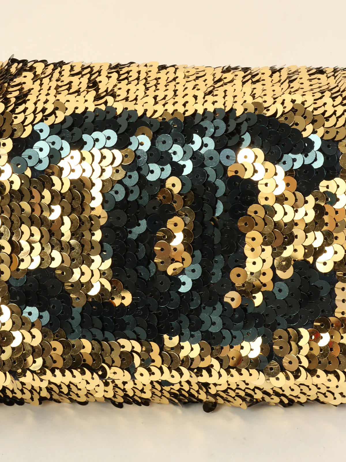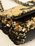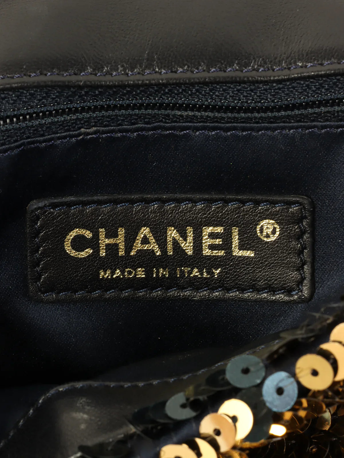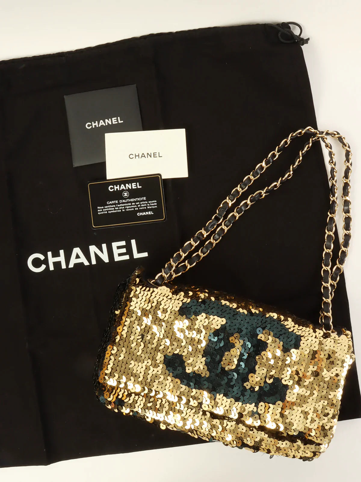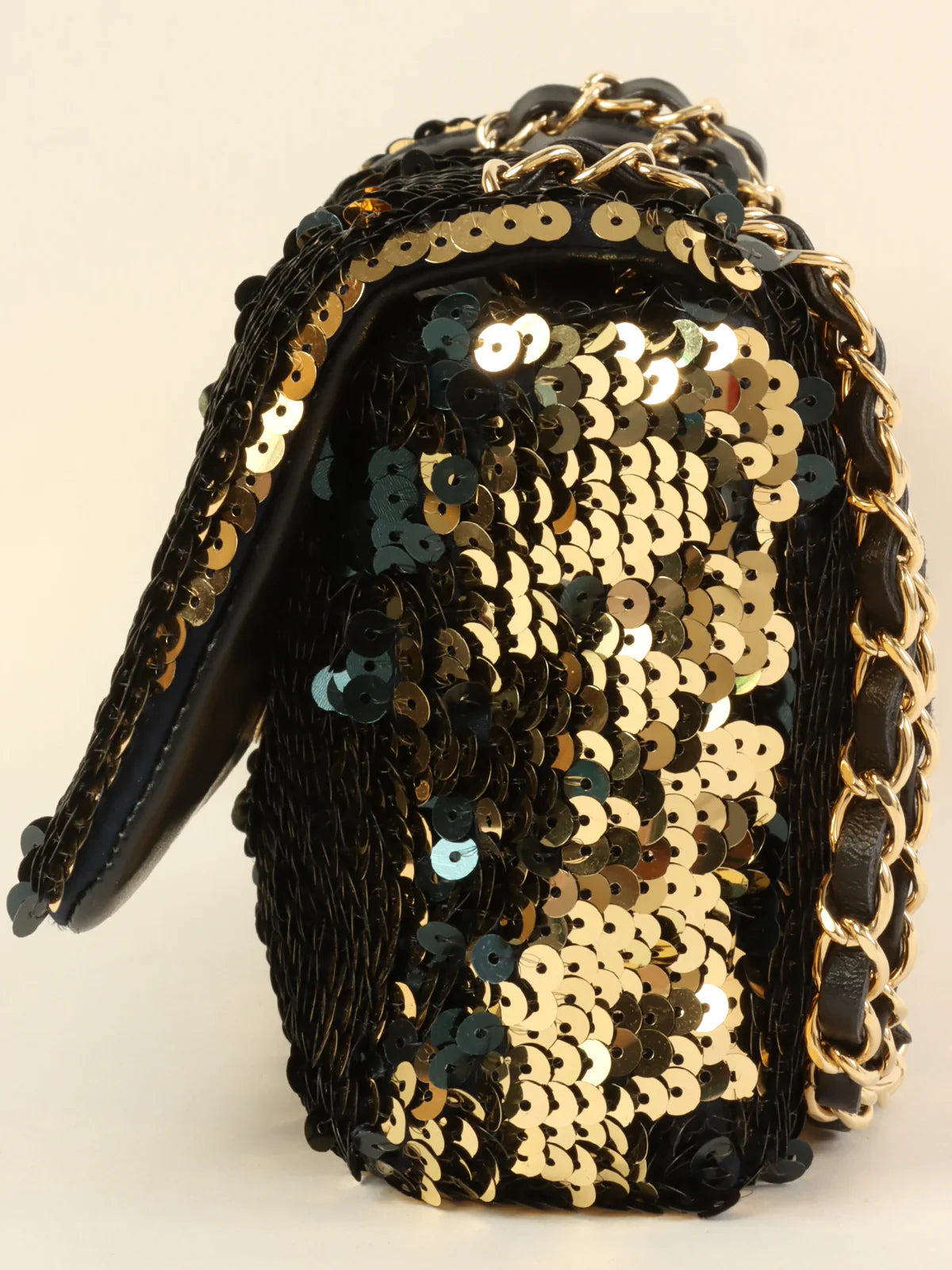 CHANEL Around 2008 Made Sequin Cc Mark Chain Bag Gold/Black
