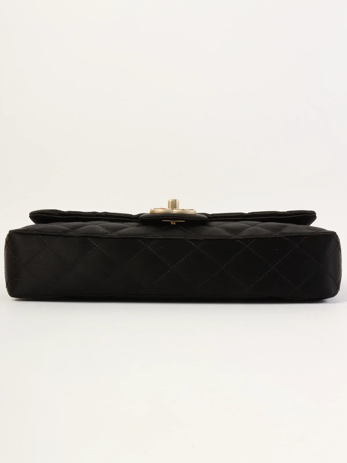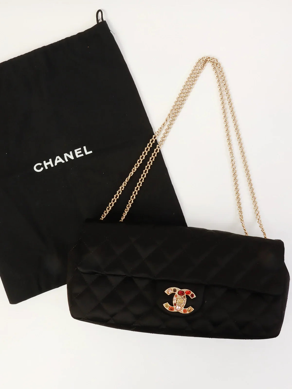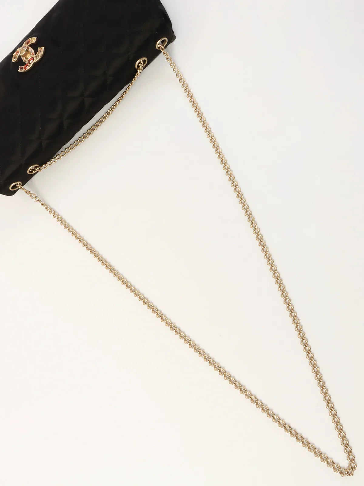 CHANEL Around 2008 Made Silk Satin Gripoix Turn-Lock Chain Bag Black/Gold/Multi