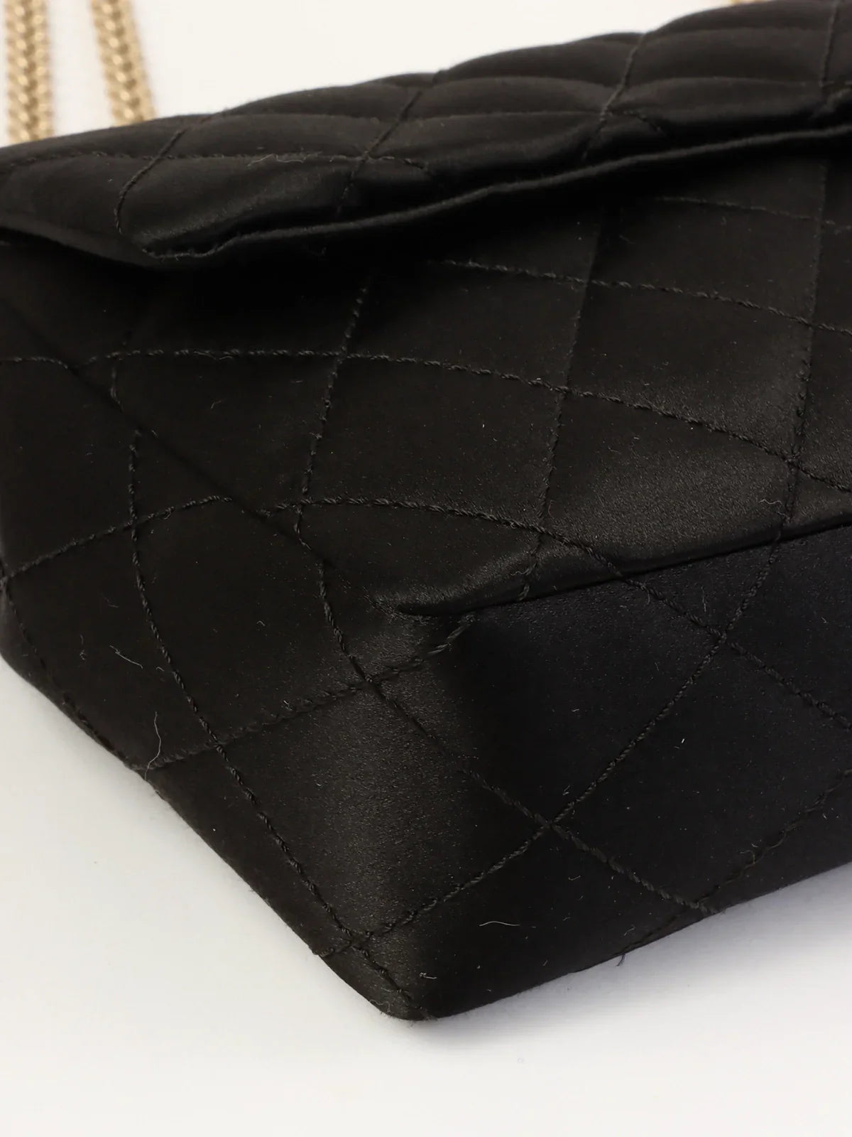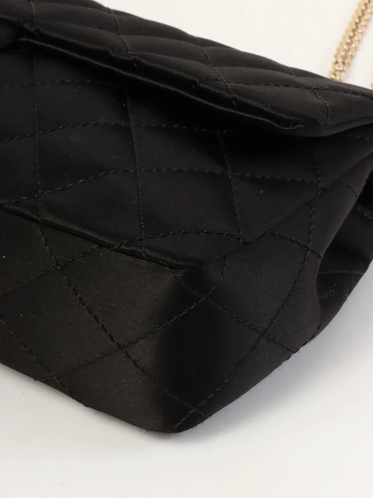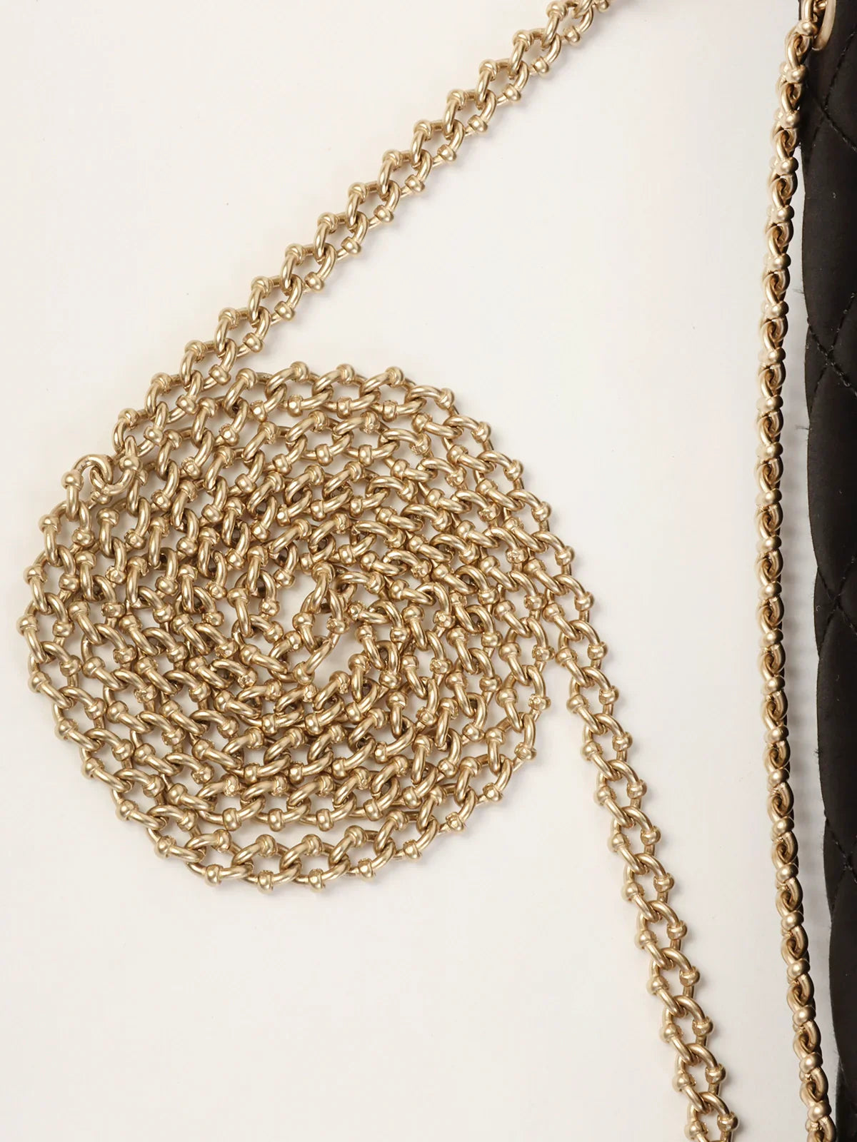 CHANEL Around 2008 Made Silk Satin Gripoix Turn-Lock Chain Bag Black/Gold/Multi