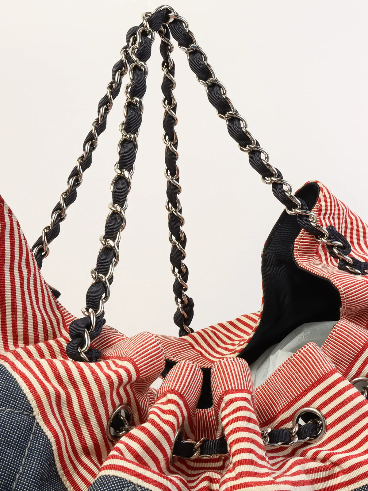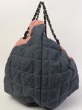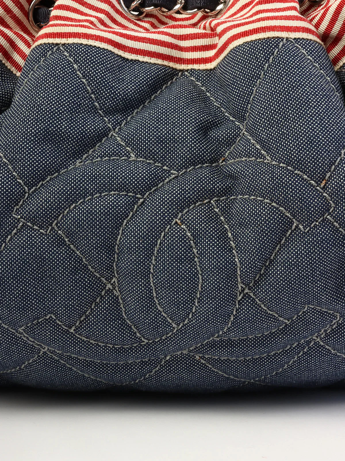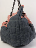 CHANEL Around 2009 Made Denim Cc Mark Stitch Tote Bag Indigo/Red