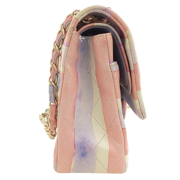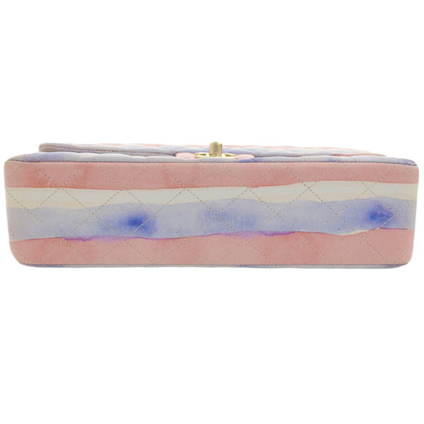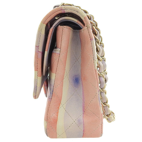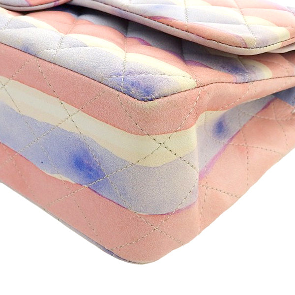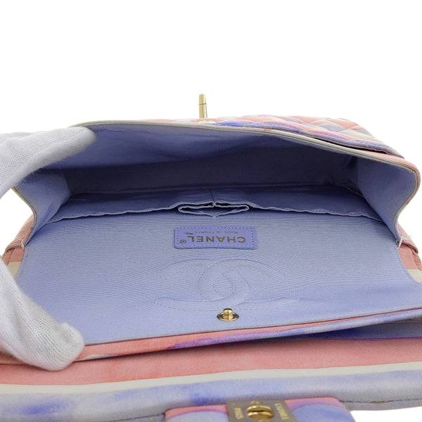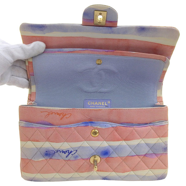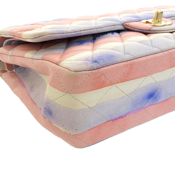 CHANEL Around 2009 Made Watercolor Logo Print Classic Flap Chain Bag 25Cm Pink/Blue/White