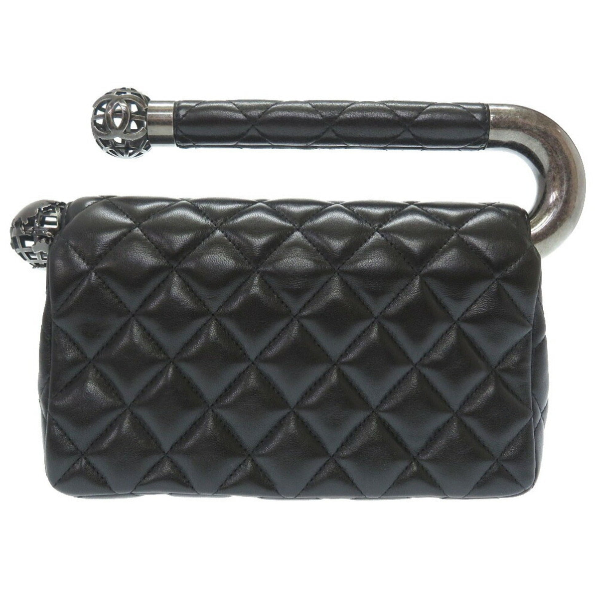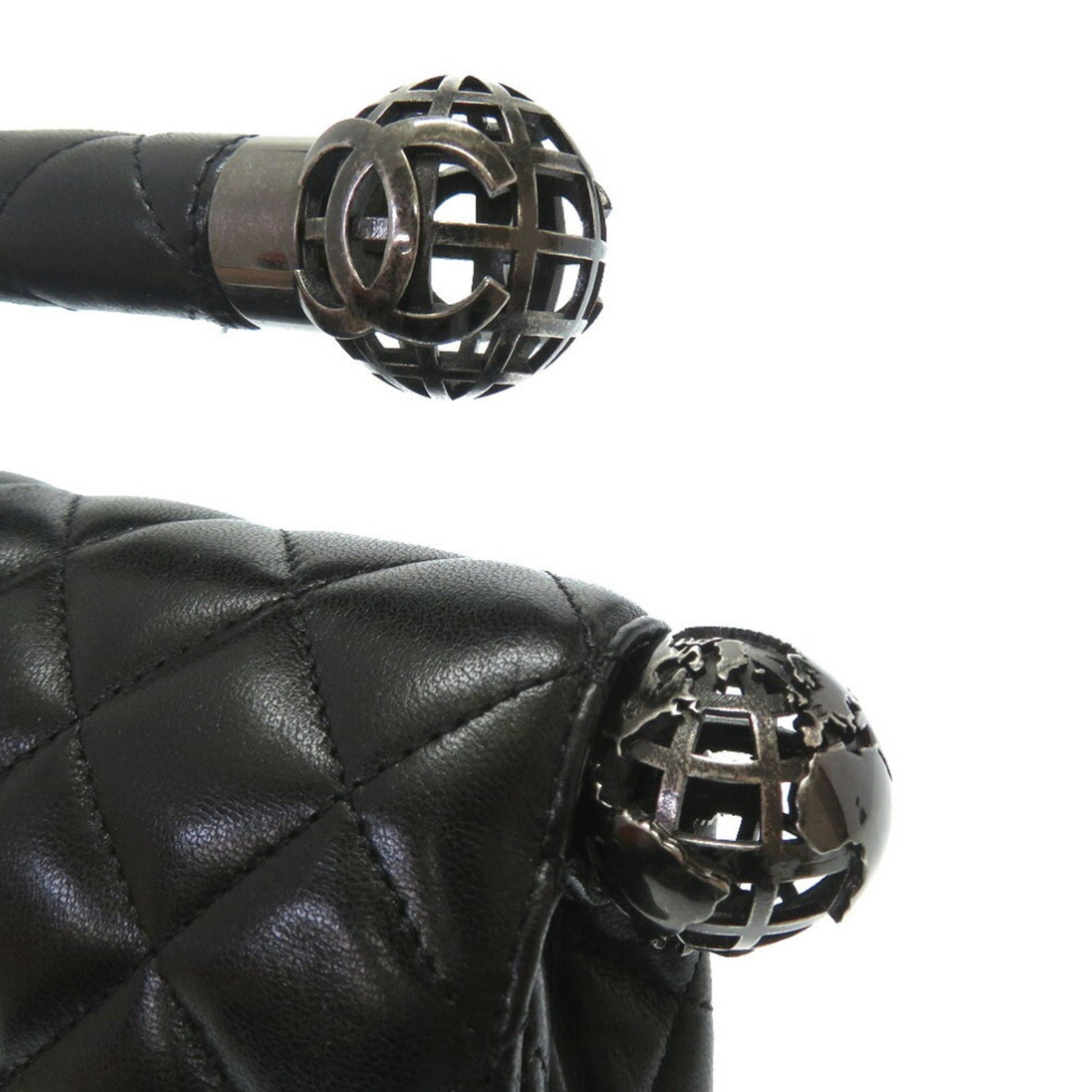 Chanel Around The World Evening Matrasse Lambskin Black Earth 18s Gun Metallic Metal Fittings Handbag Coco Mark Turn Lock