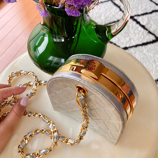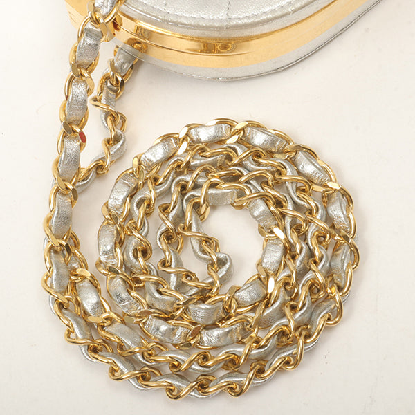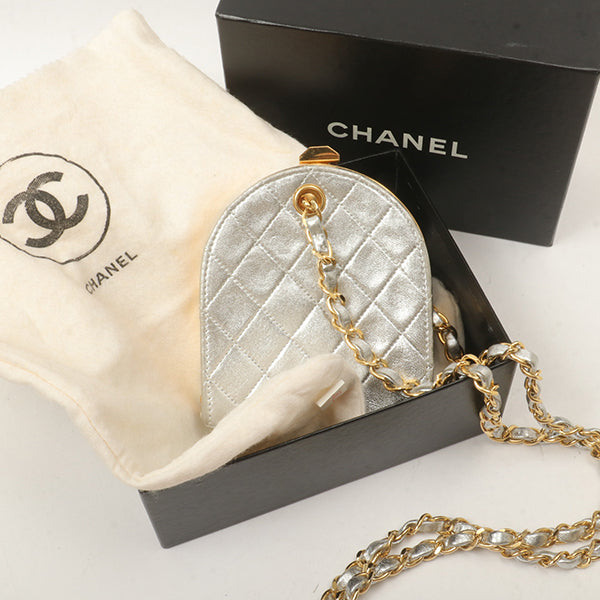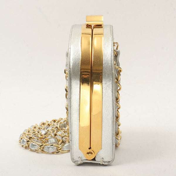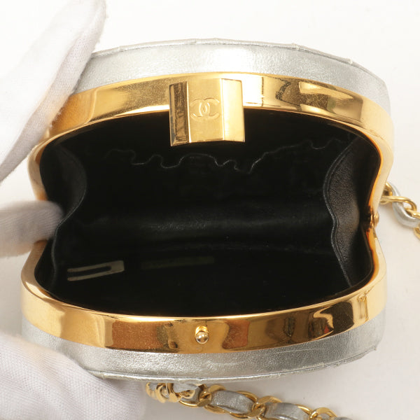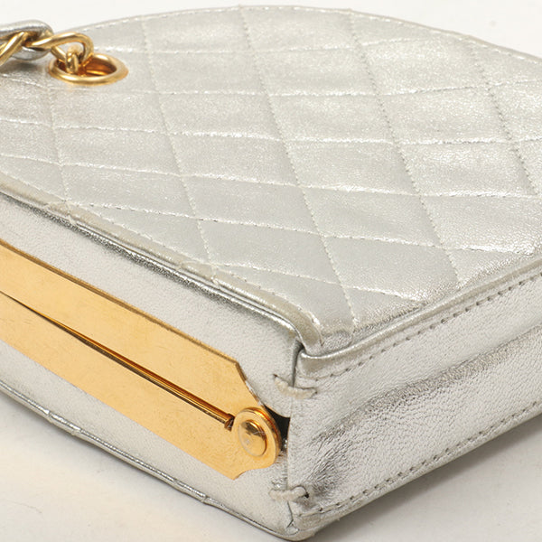 Chanel Around1990 Made Cc Mark Metal Clasp Chain Bag Silver
