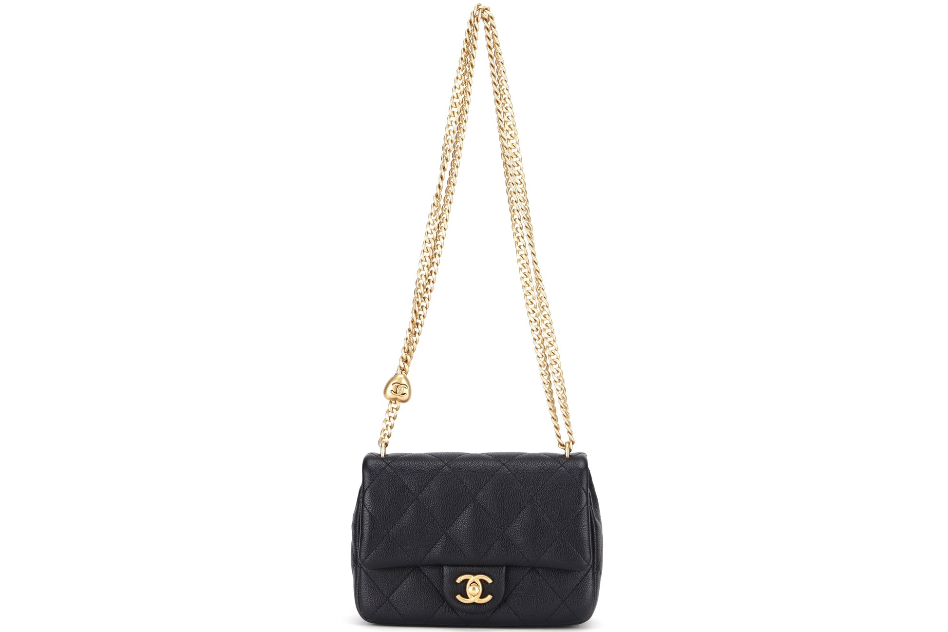 CHANEL AS3829 HEART CHAIN MINI FLAP [MICROCHIP (LGETxxxx)] BLACK CAVIAR GOLD HARDWARE, WITH DUST COVER & BOX