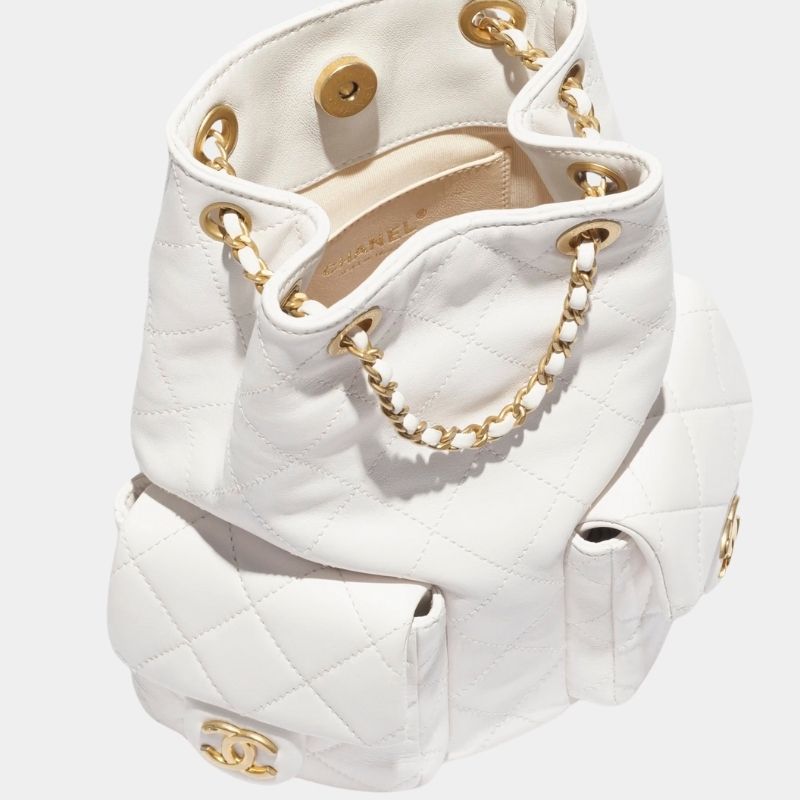 The Backpack from the Cruise 2024/25 collection is a chic and versatile accessory crafted for women who value timeless elegance and modern functionality. Designed with shiny lambskin and gold-tone metal accents, this backpack is the epitome of sophistication. Available in classic White and Black, it complements both casual and formal styles, making it a must-have addition to your wardrobe.
