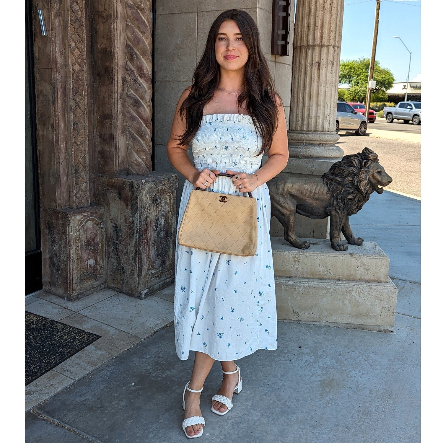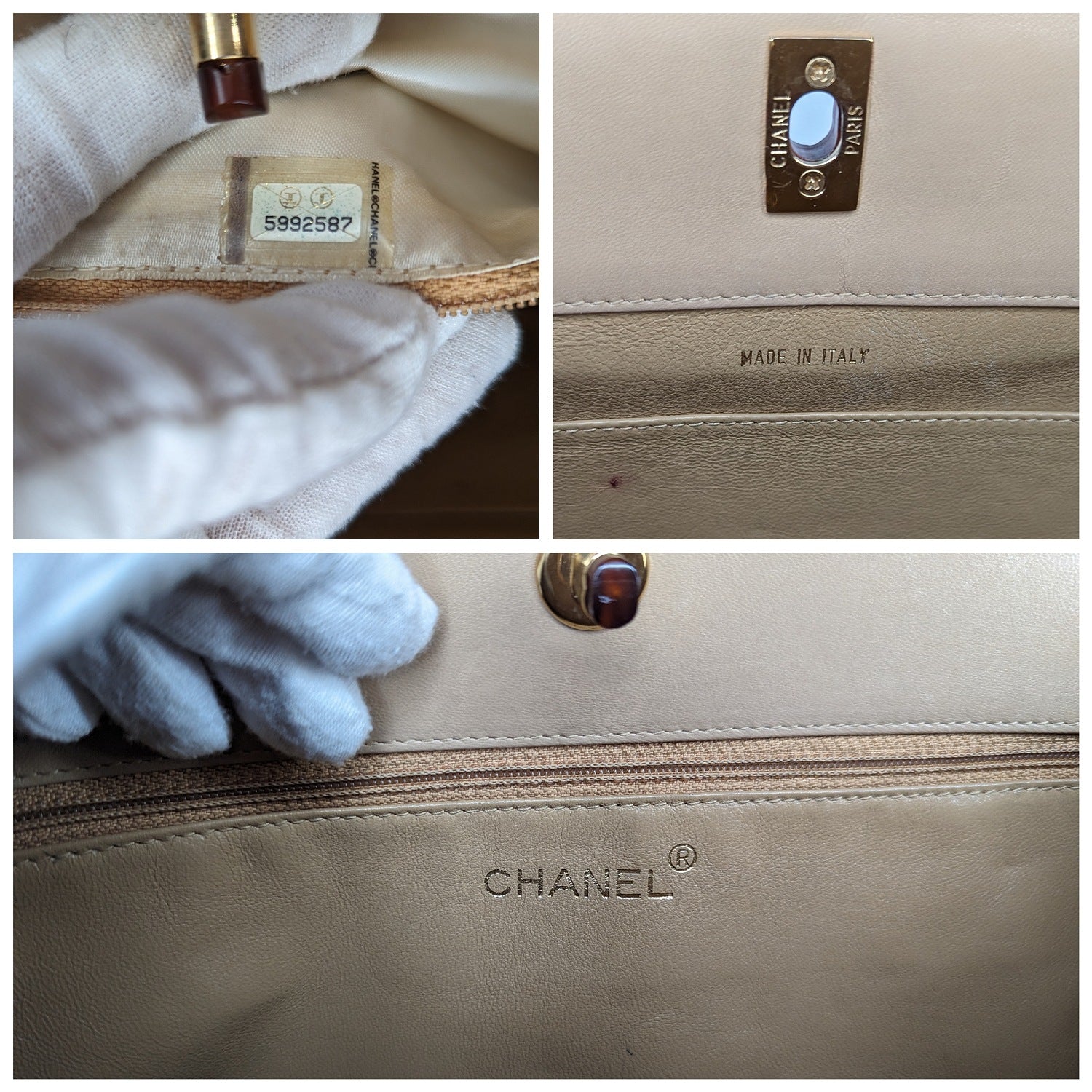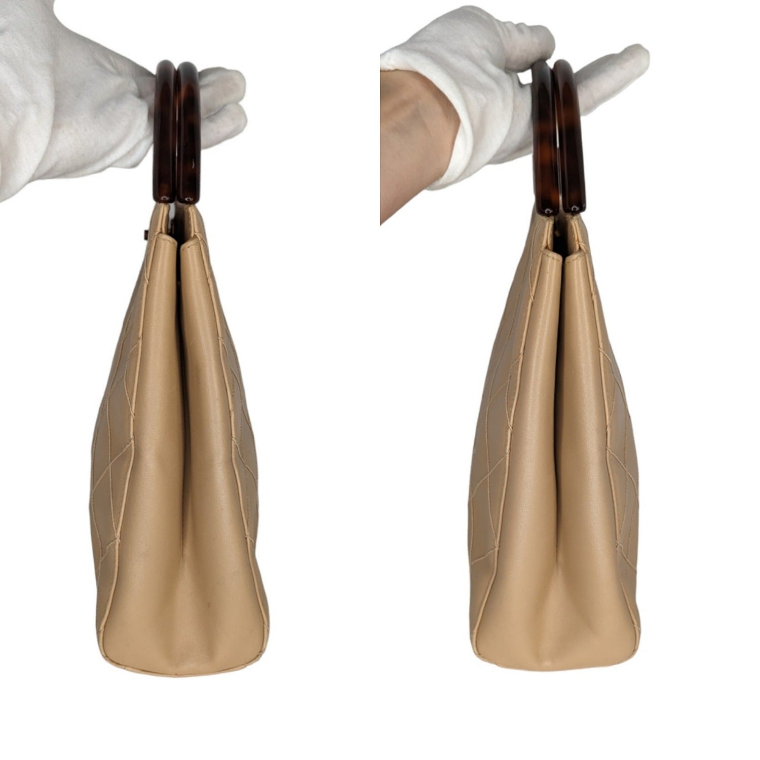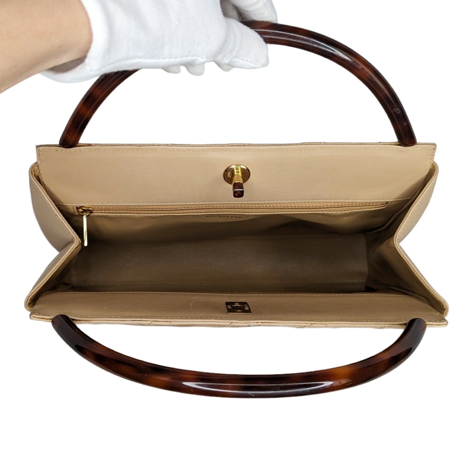 Chanel Bag Vintage Beige Quilted Tortoise Motif Handle Bag
