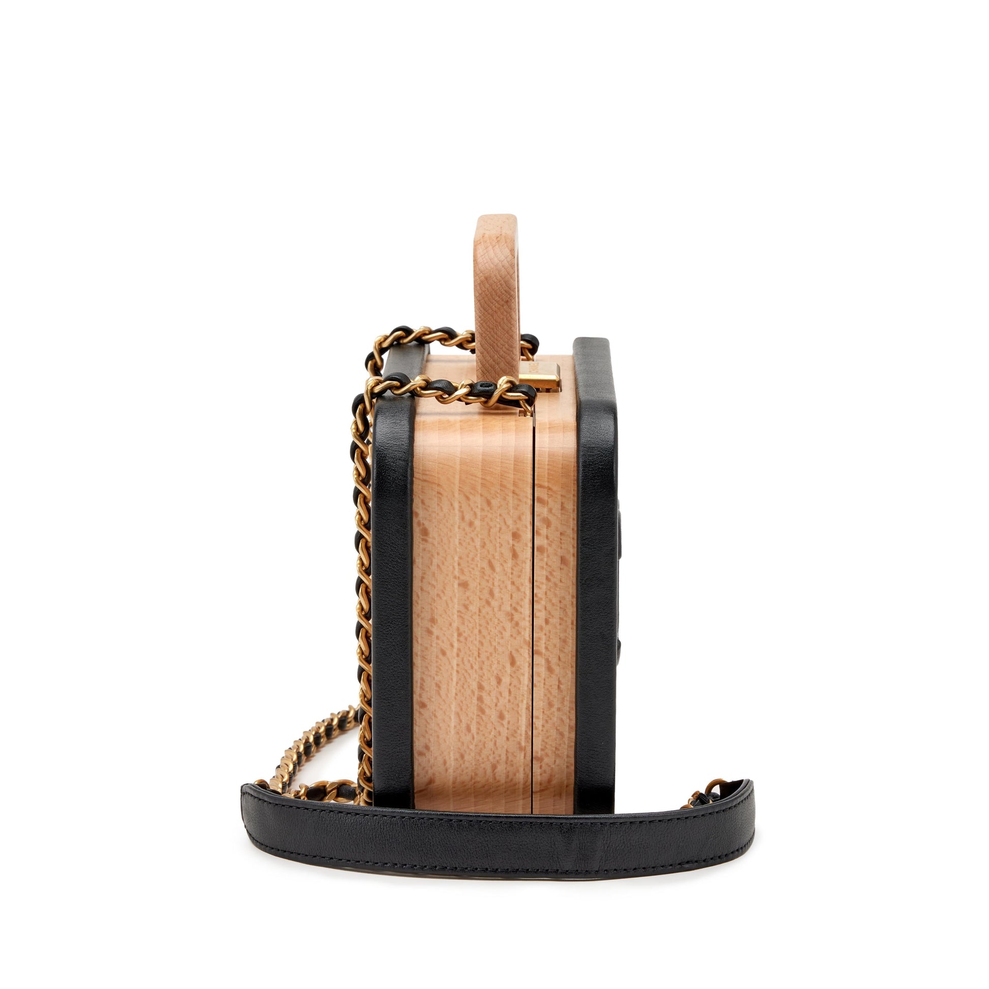 Chanel Beech Wood and Black Lambskin CC Vanity Case Brushed Gold Hardware, 2022