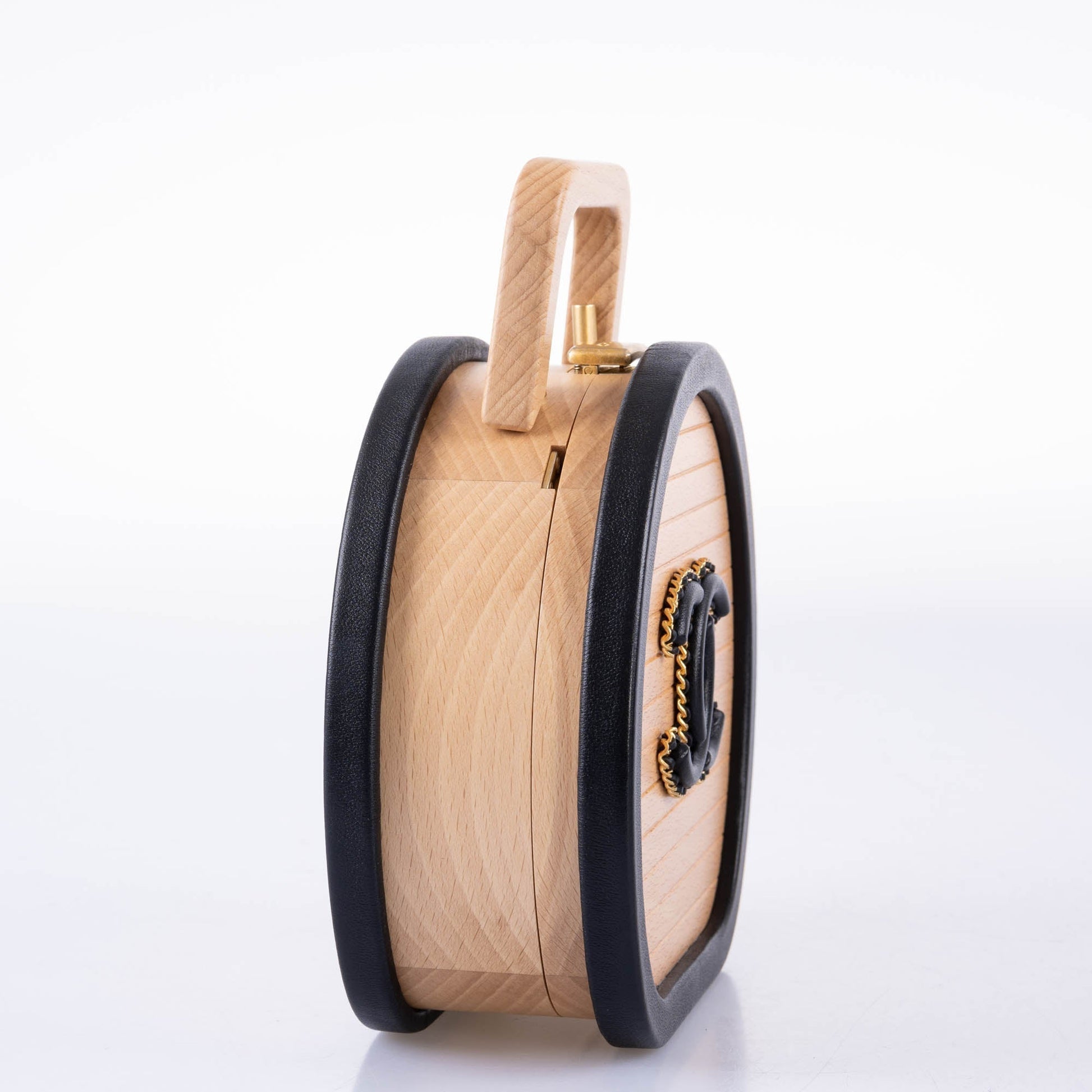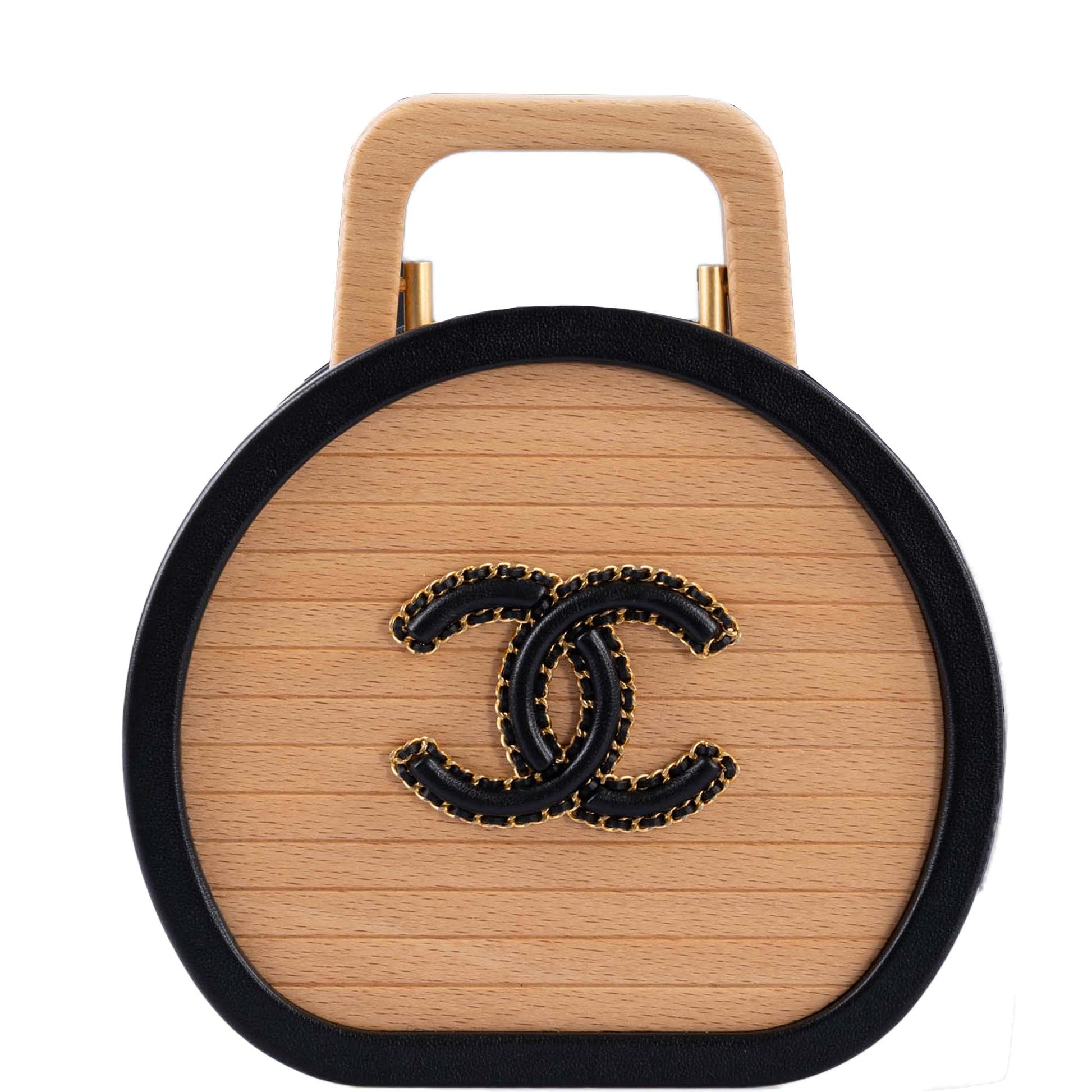 Chanel Round CC Vanity Case Beechwood and Black Lambskin Gold Hardware