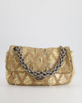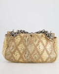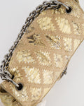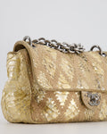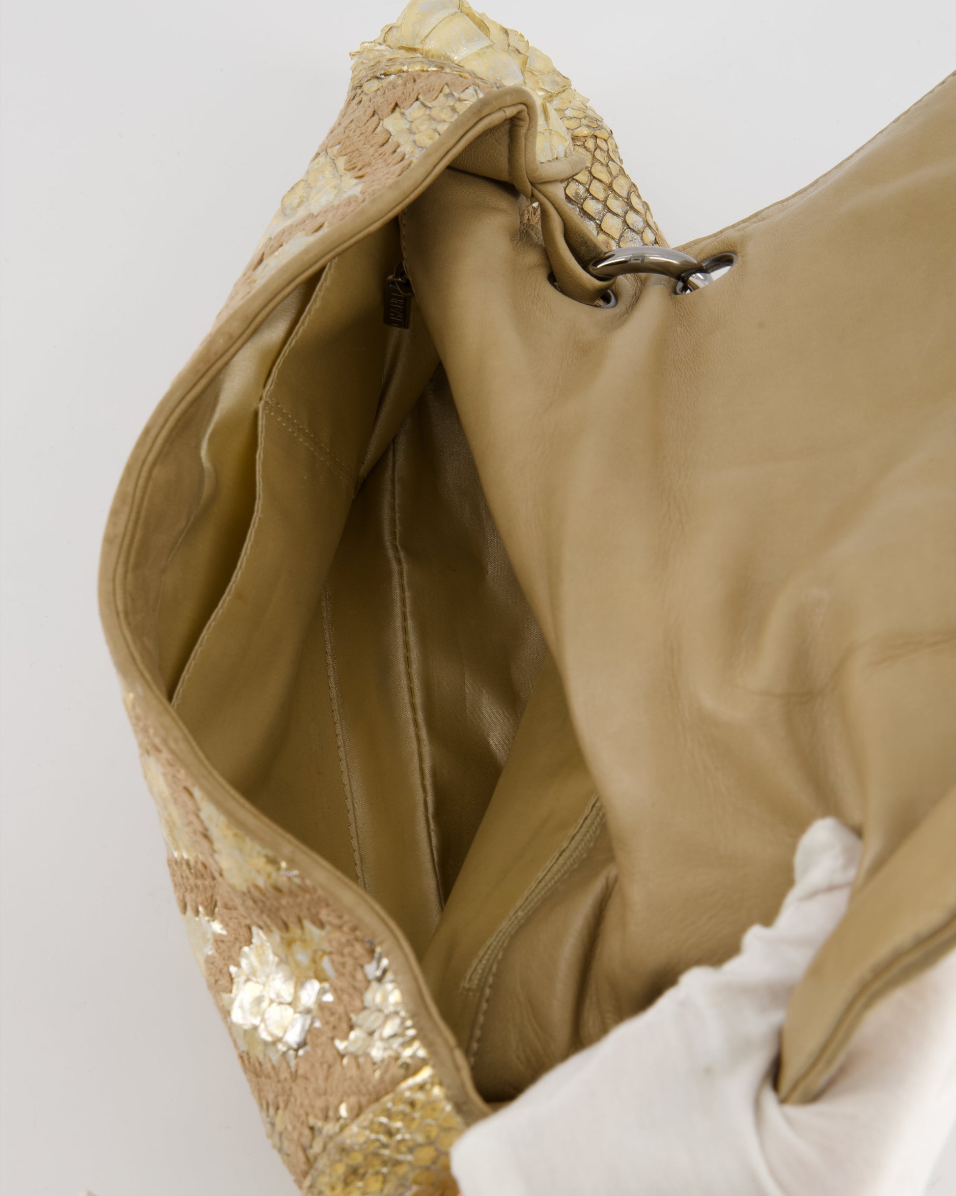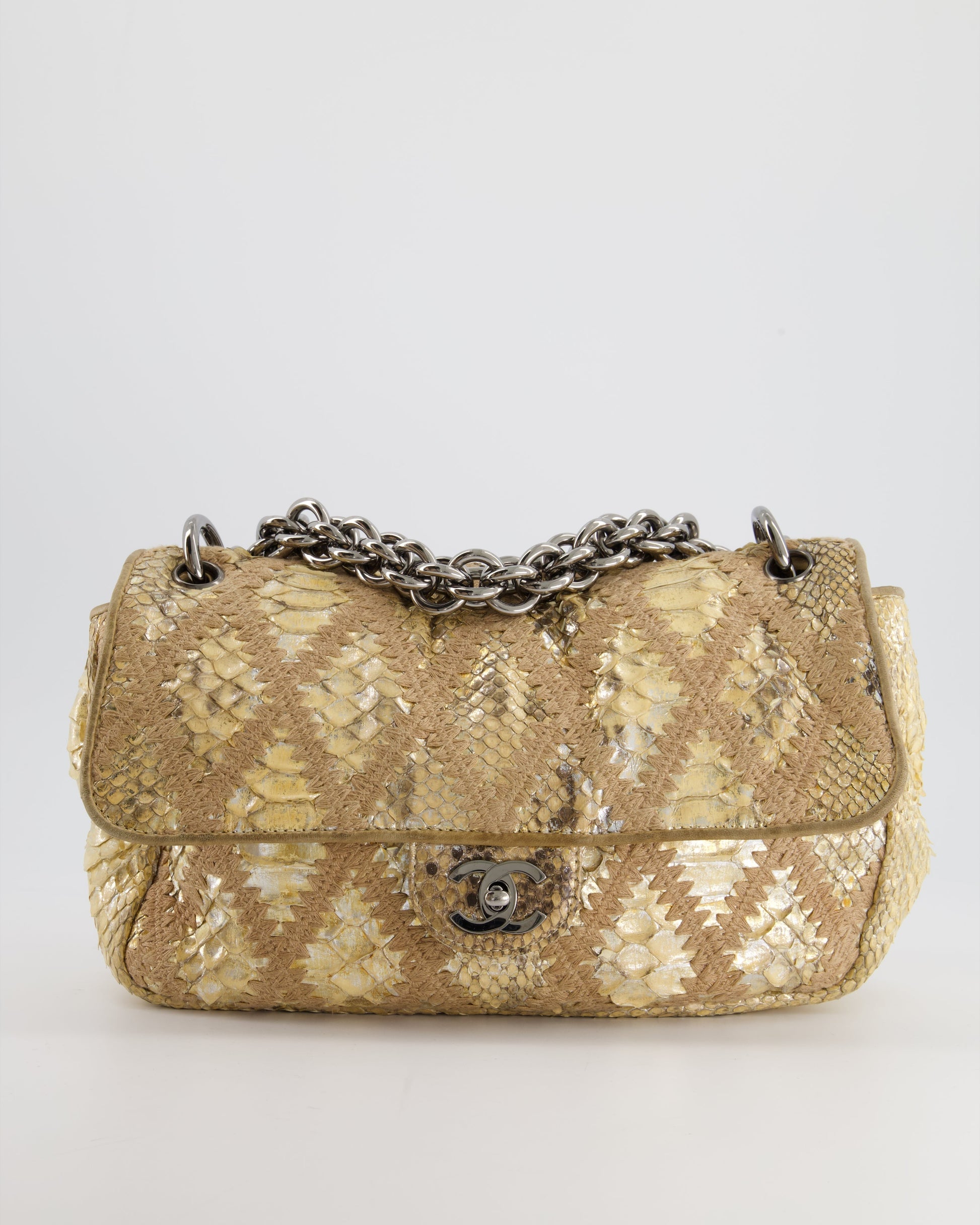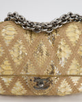 Chanel Beige and Gold Python and Crochet Flap Shoulder Bag with Ruthenium Hardware and Large Chain Strap