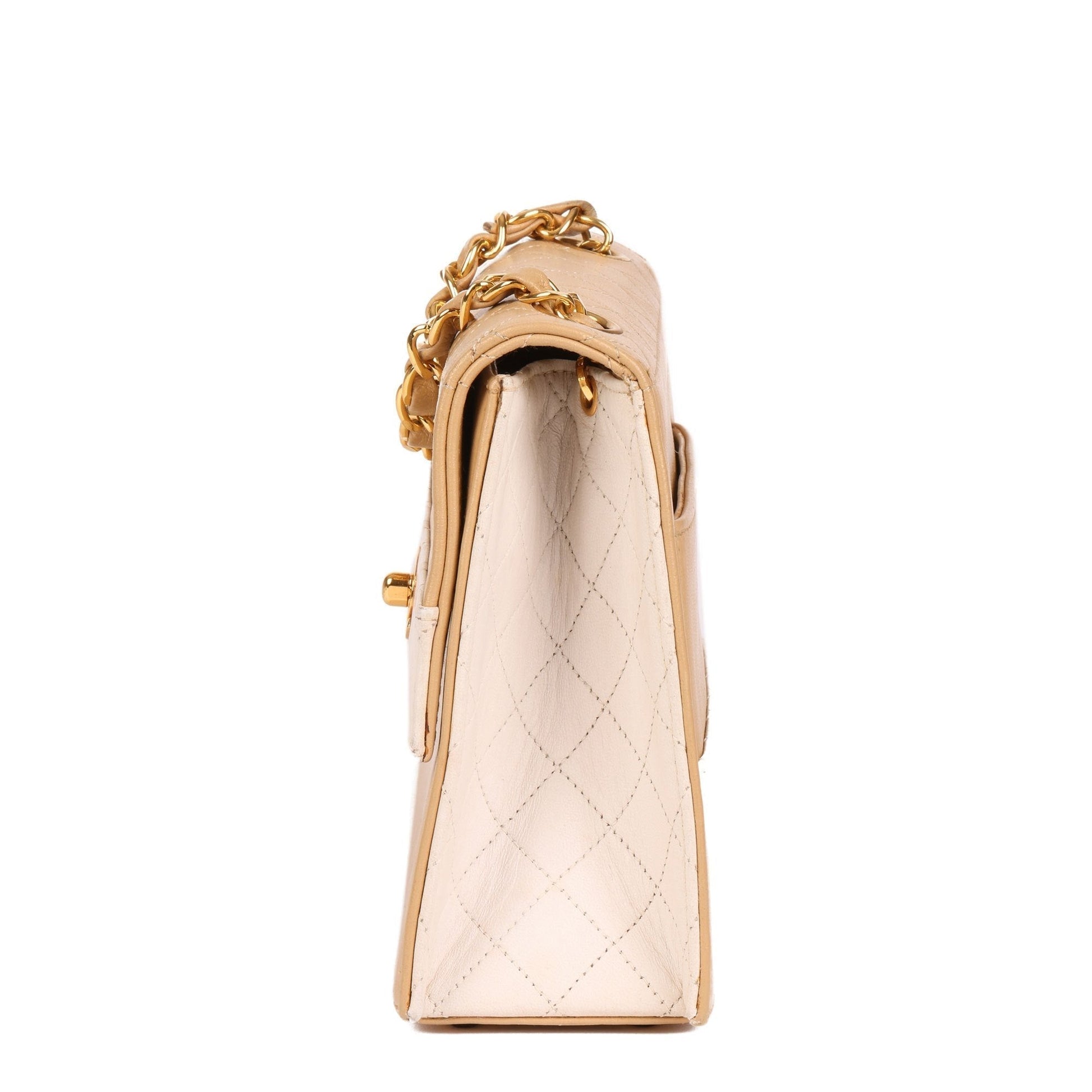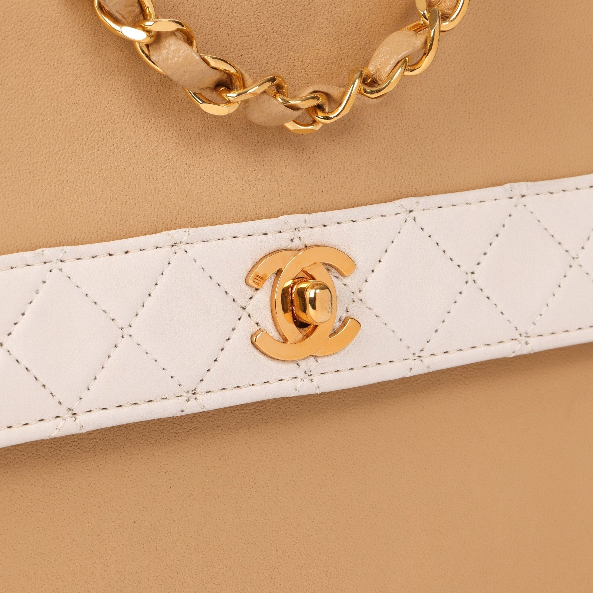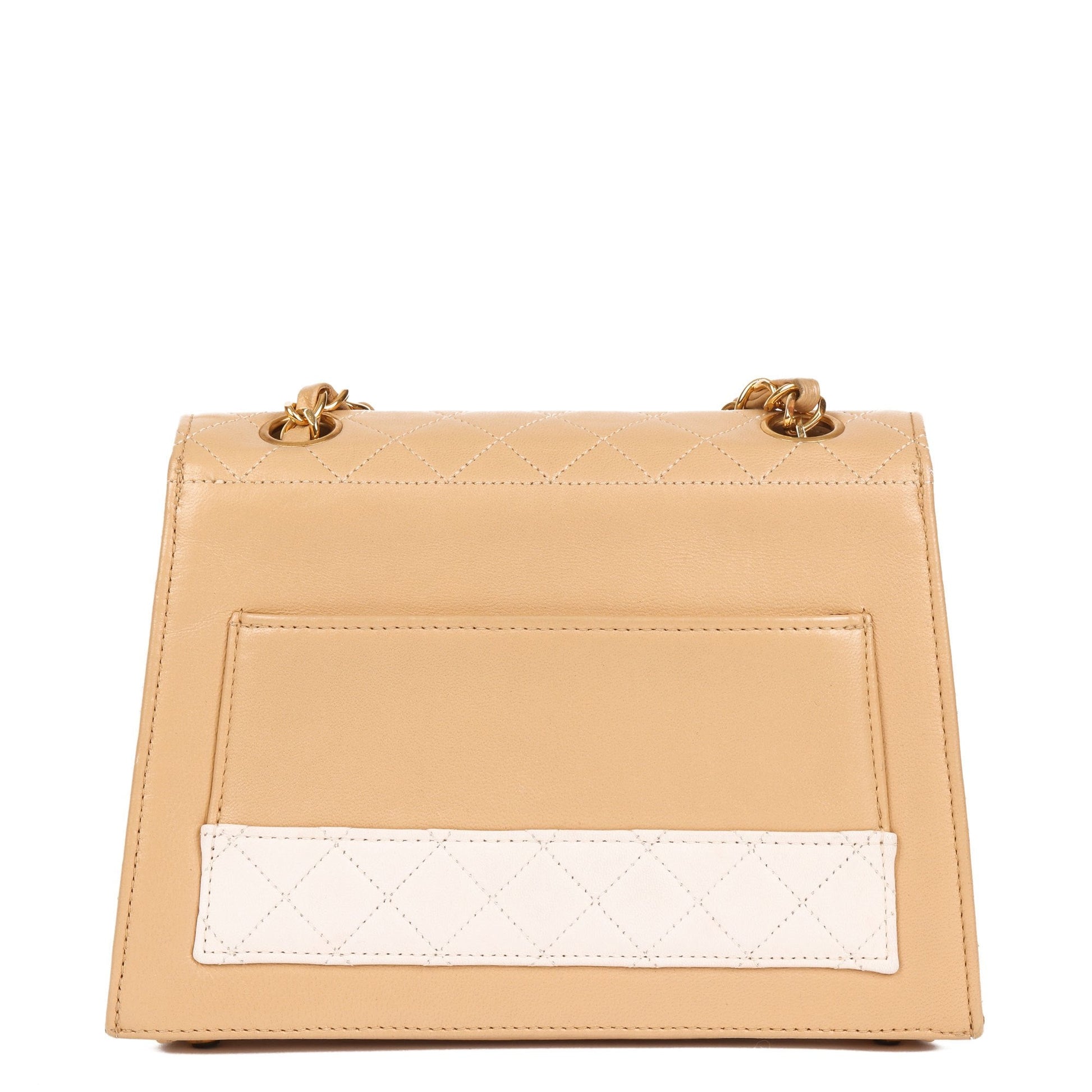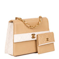Chanel Beige & White Quilted Lambskin Vintage Mini Trapeze Classic Single Flap Bag with Pouch Shoulder Bag