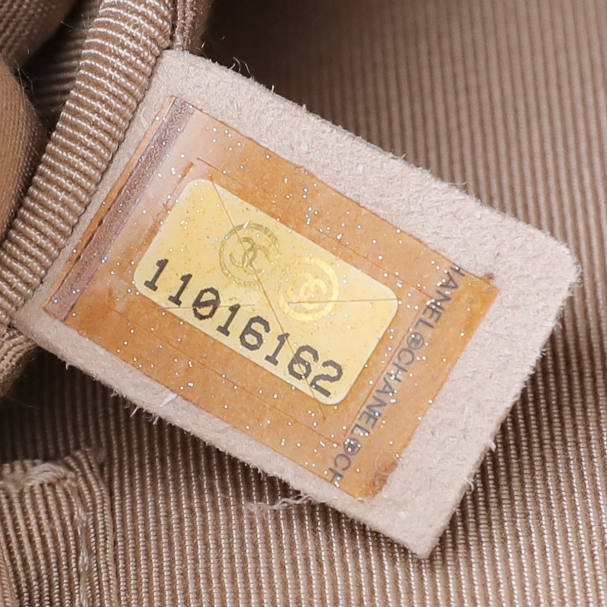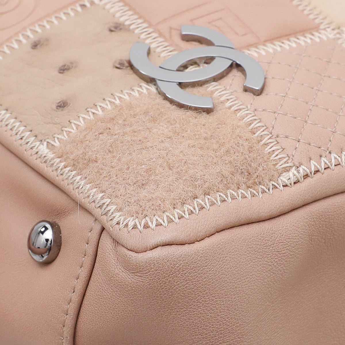 - Material: Beige Lambskin, Ostrich Leather, Wool and Tweed with Embossed Symbols