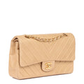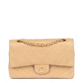 Chanel Beige Chevron Quilted Lambskin Vintage Medium Classic Double Flap Bag
