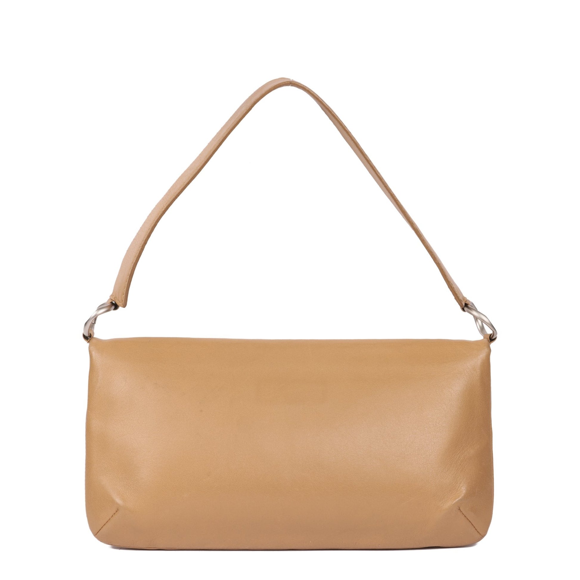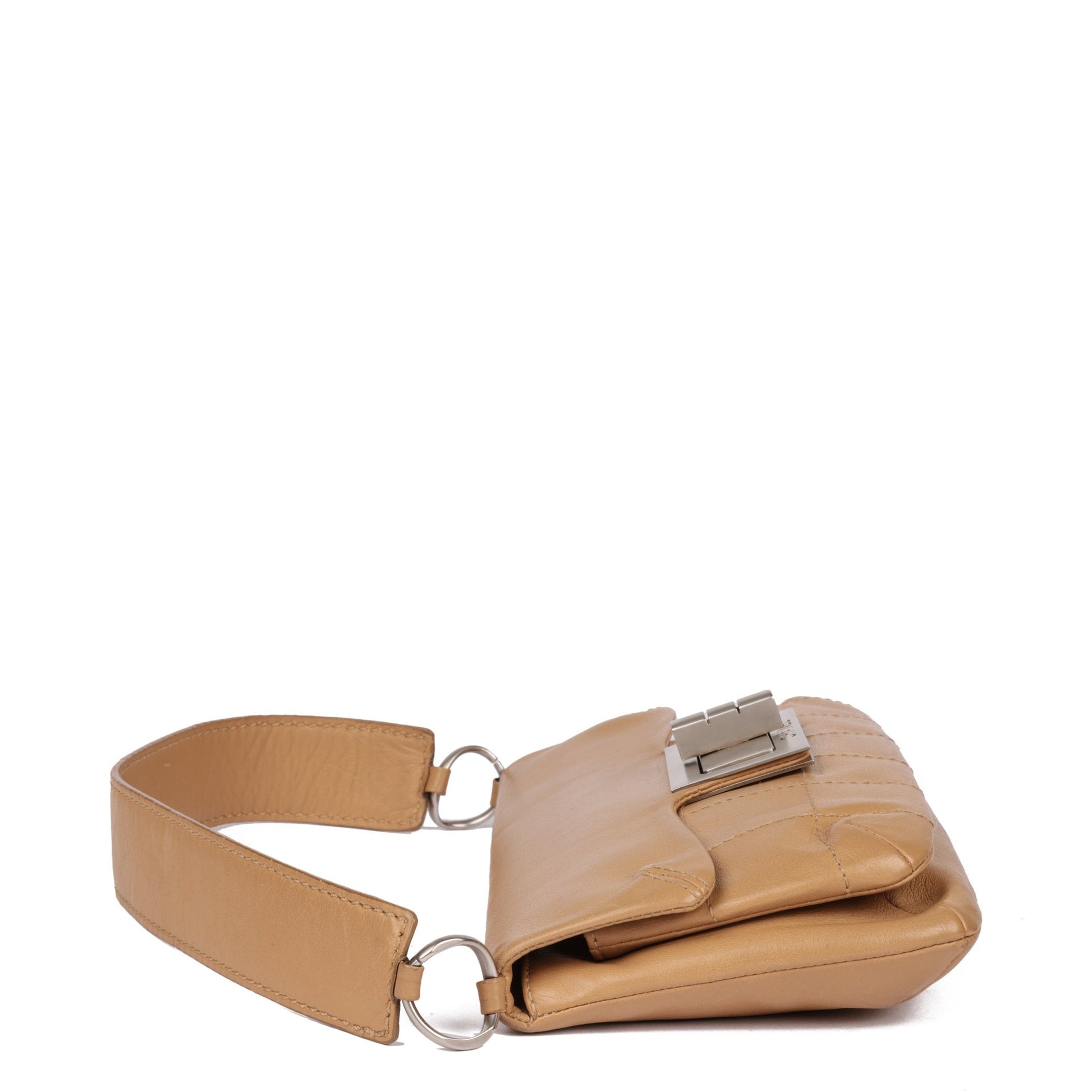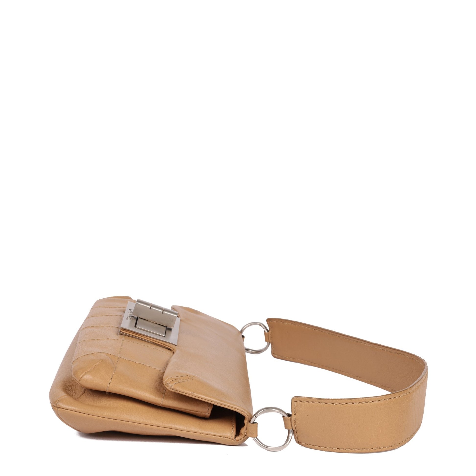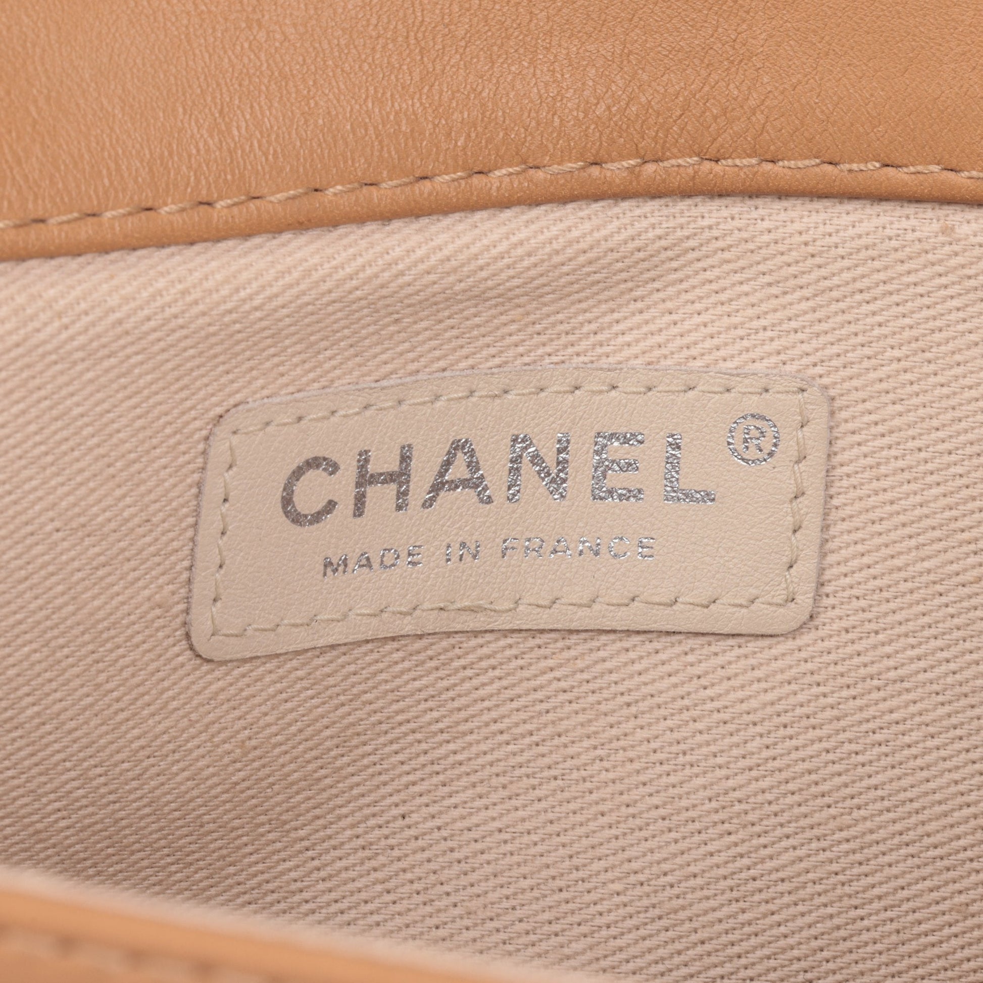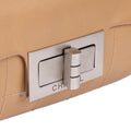 Chanel Beige Choclate Bar Quilted Calfskin Leather Vintage Mademoiselle Pochette Top Handle Bag